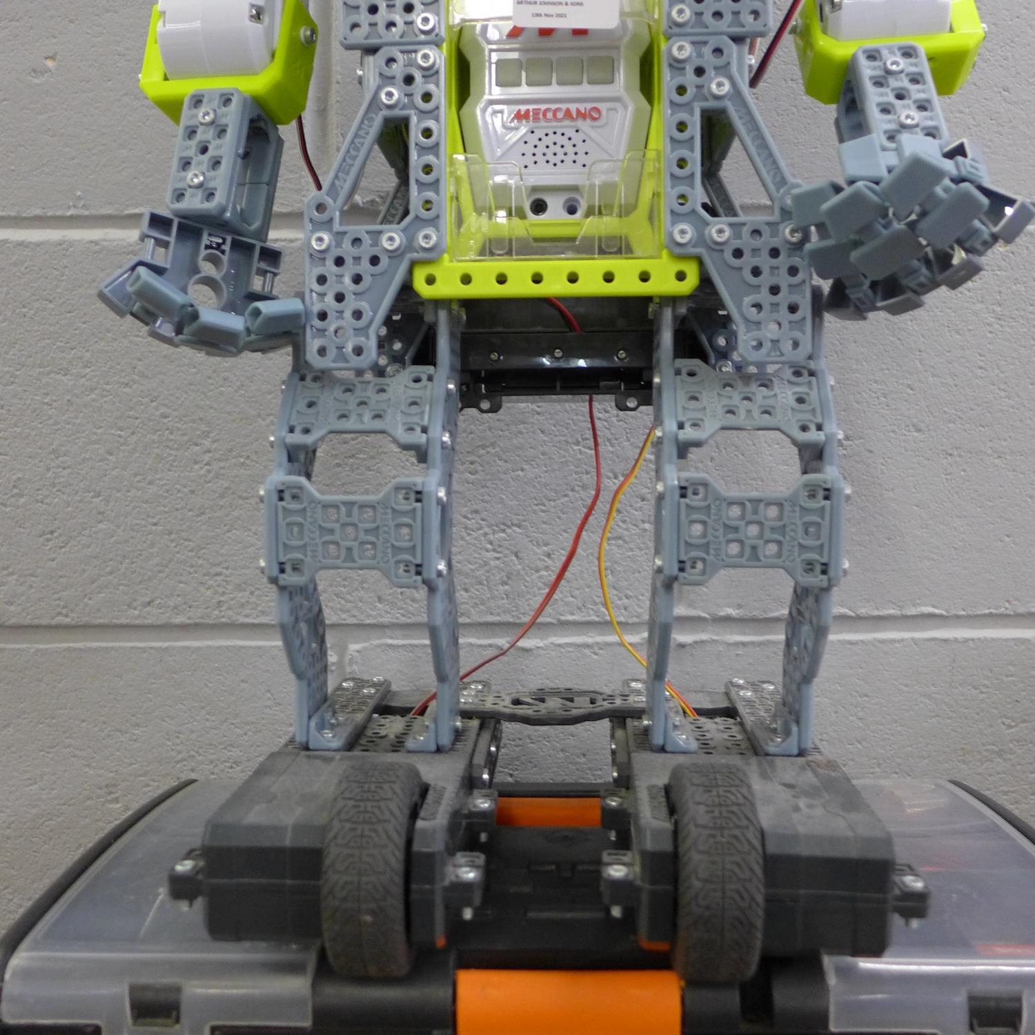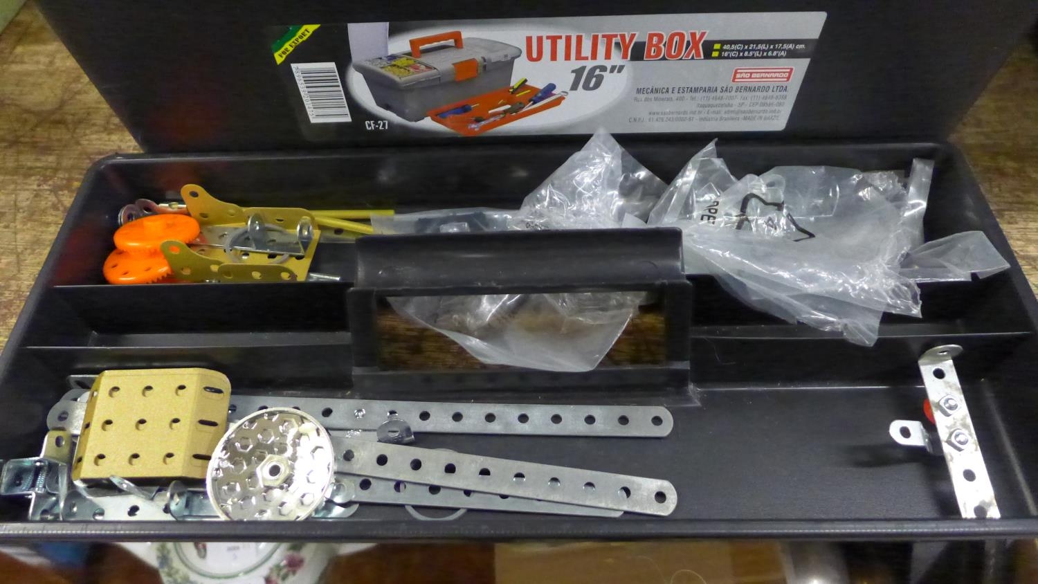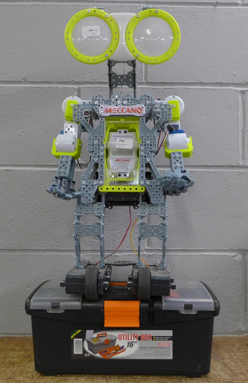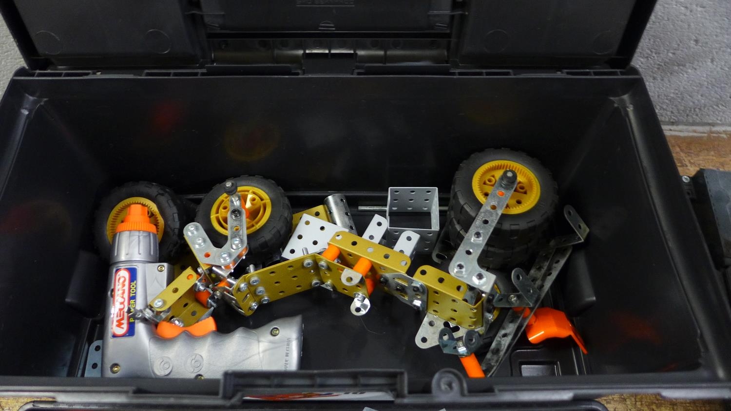 A Meccano Electronic Erector Meccanoid and tool box, etc.