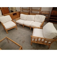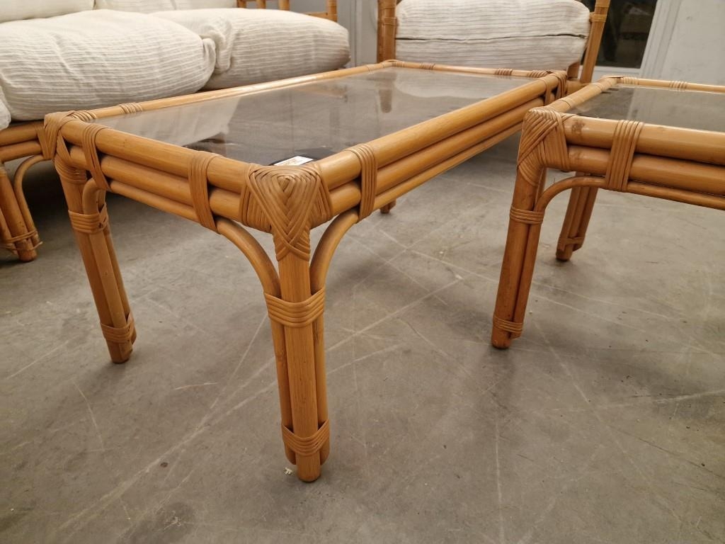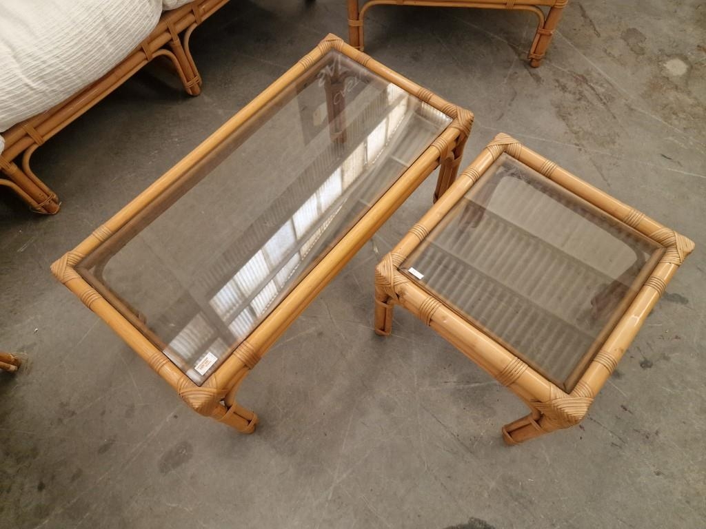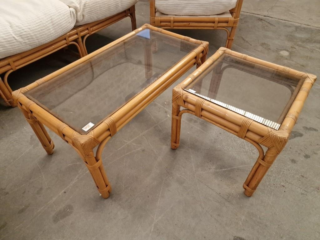 Rectangular Bamboo & Glass Coffee Table, (Approx. 86 x 44 x 40cm Max), Together with Matching Square Side Table, (2)