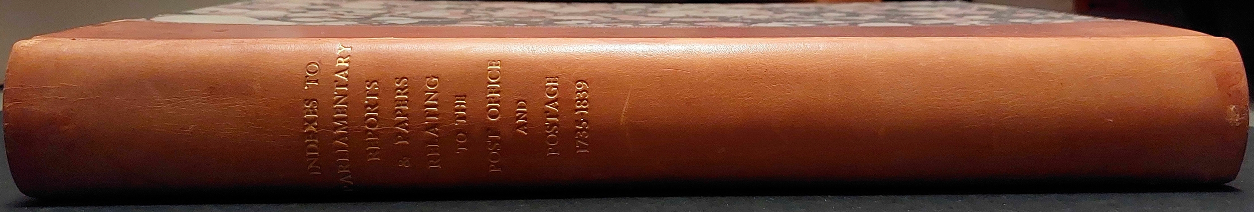INDEXES TO PARLIAMENTARY REPORTS & PAPERS RELATING TO THE POST OFFICE 1735-1839: Leather-bound in one volume. Published in 1840 as a direct result of the 1838 Select Committee on Postage, in order to fix the difficulties they had in referring to multiple lengthy reports and scattered papers. Cross Reference: GREAT BRITAIN