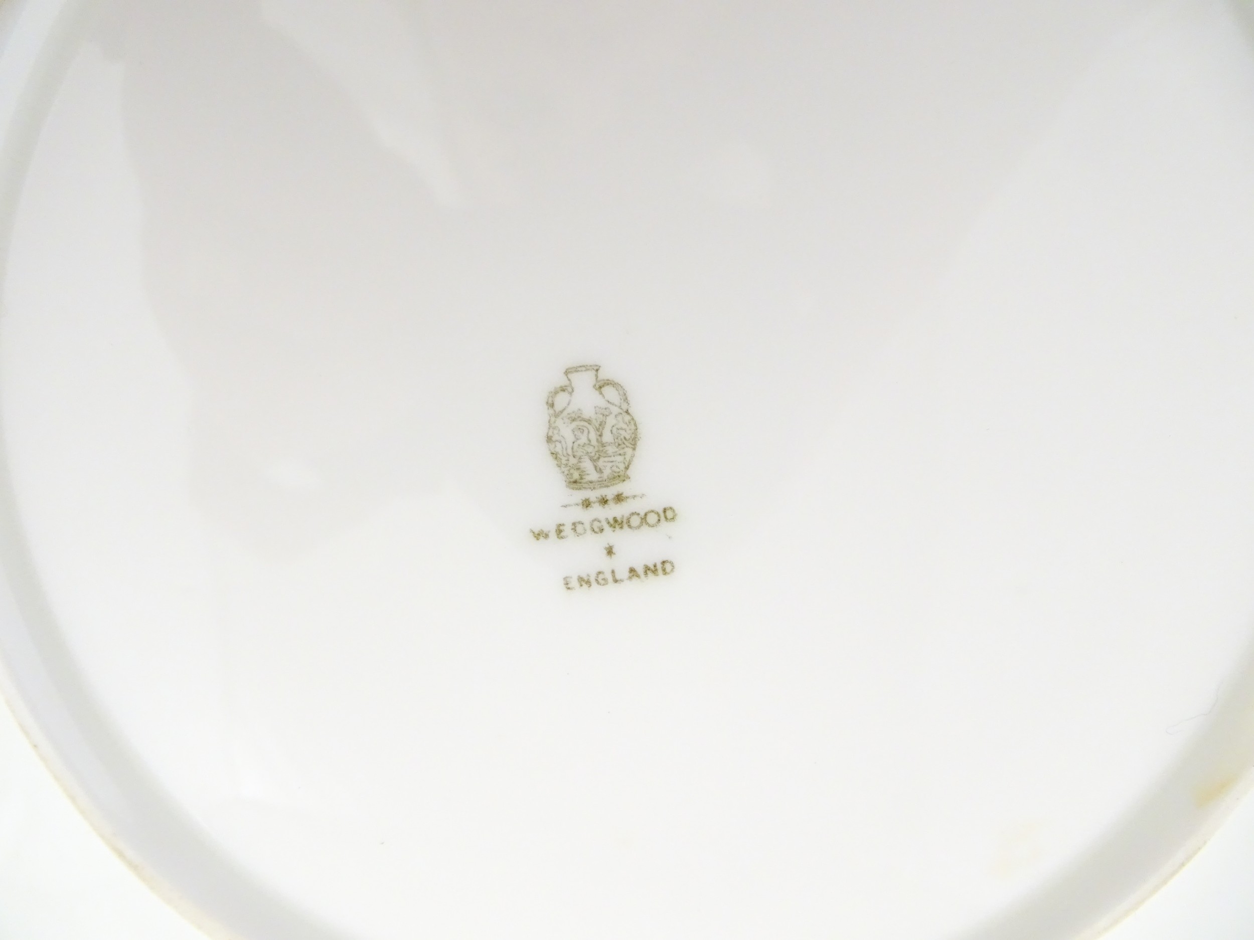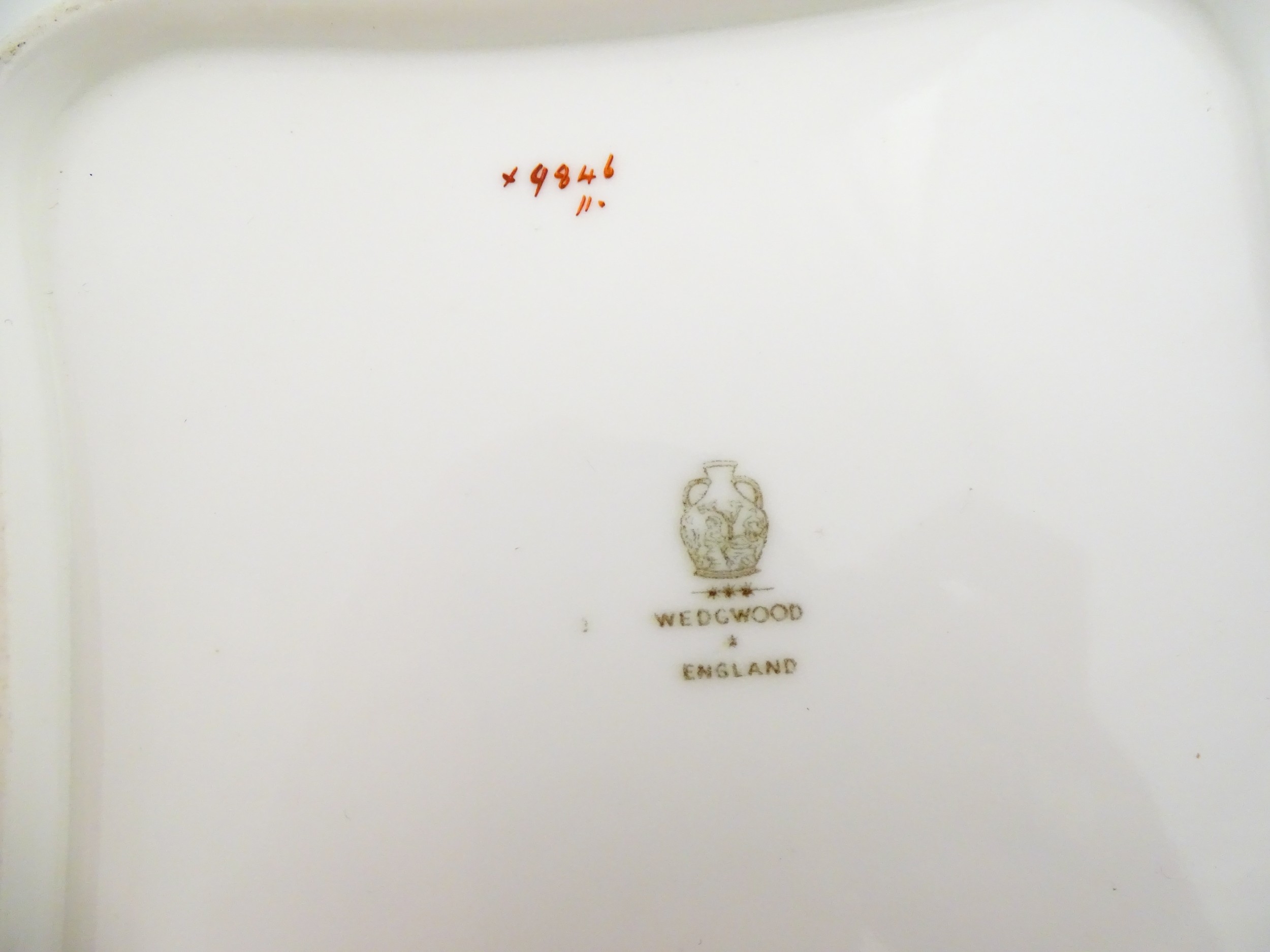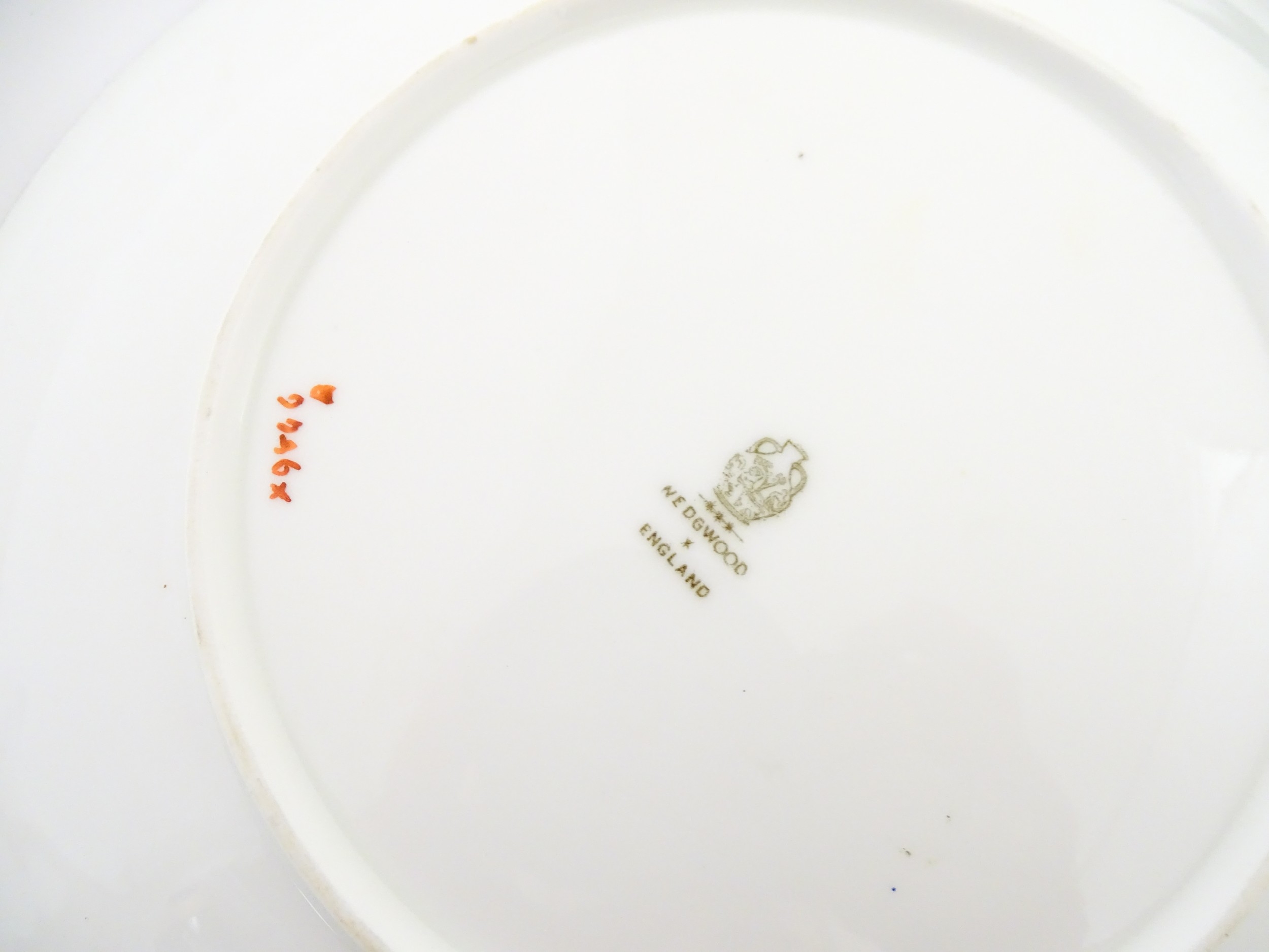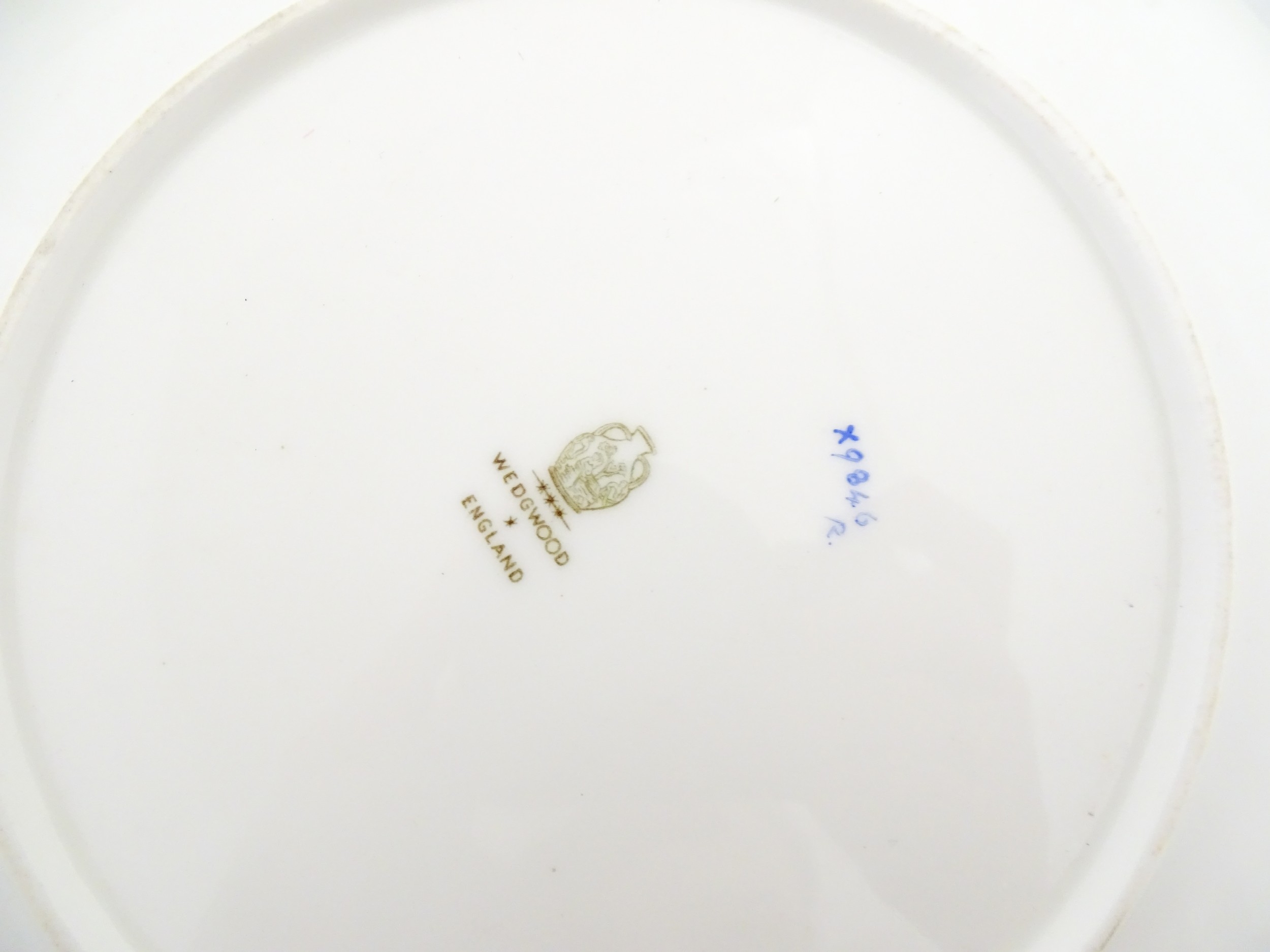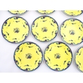 Fifteen Wedgwood yellow ground plates decorated with Chinoiserie temples and Asiatic pheasants. Marked under. Various shapes. Plates approx. 9" wide (15)