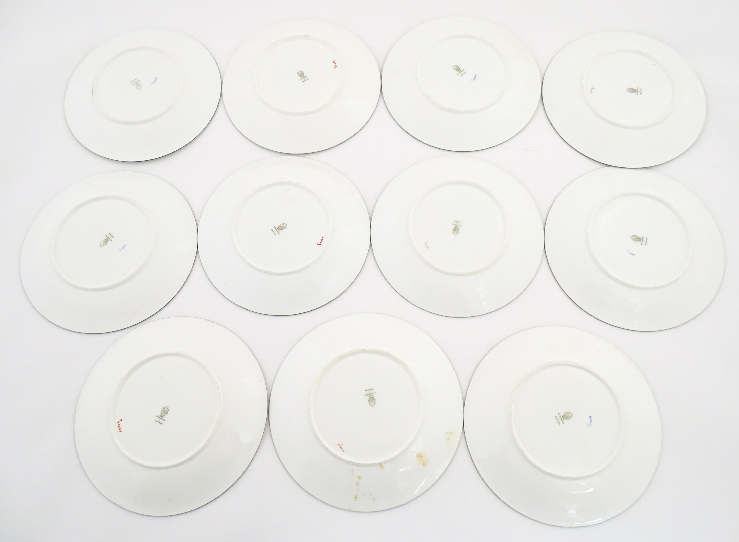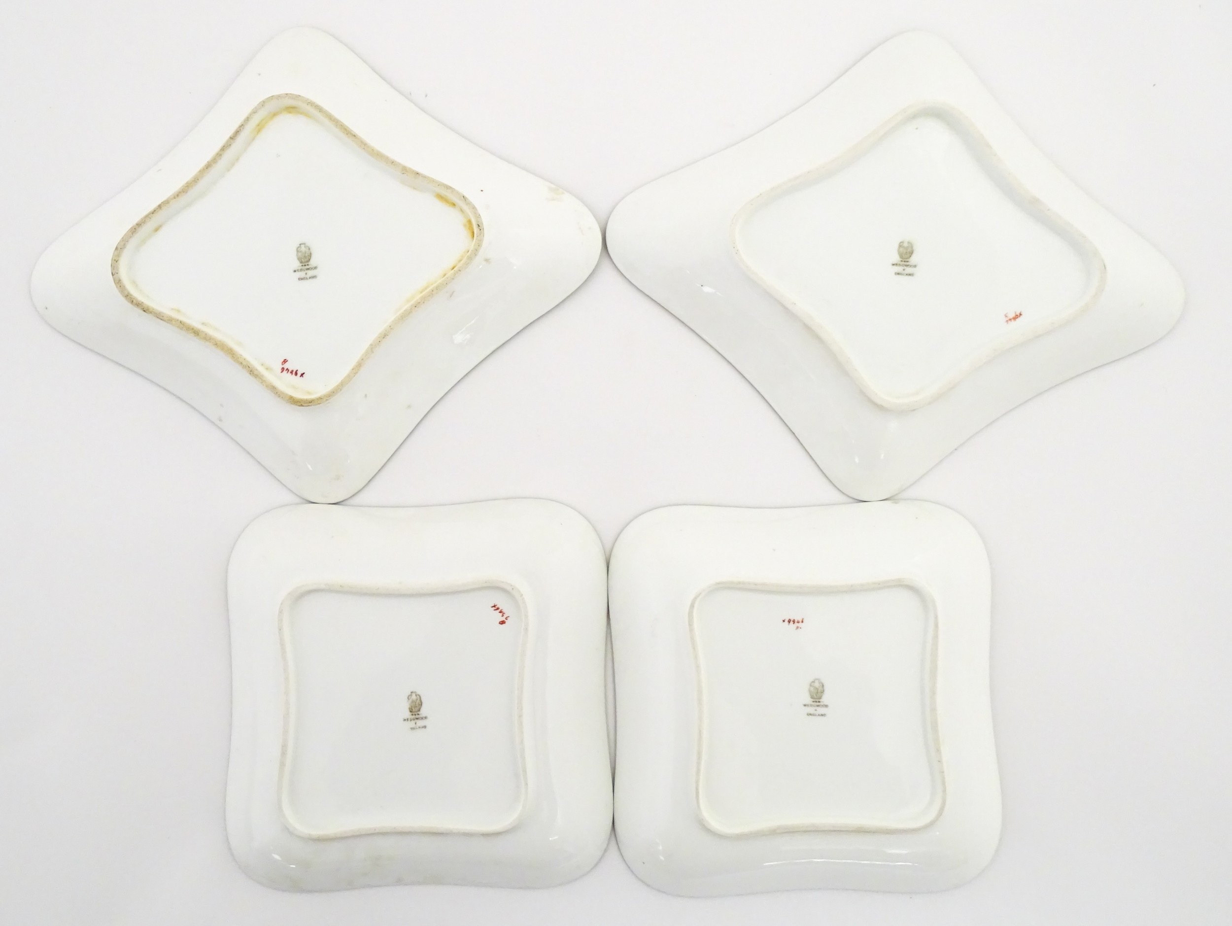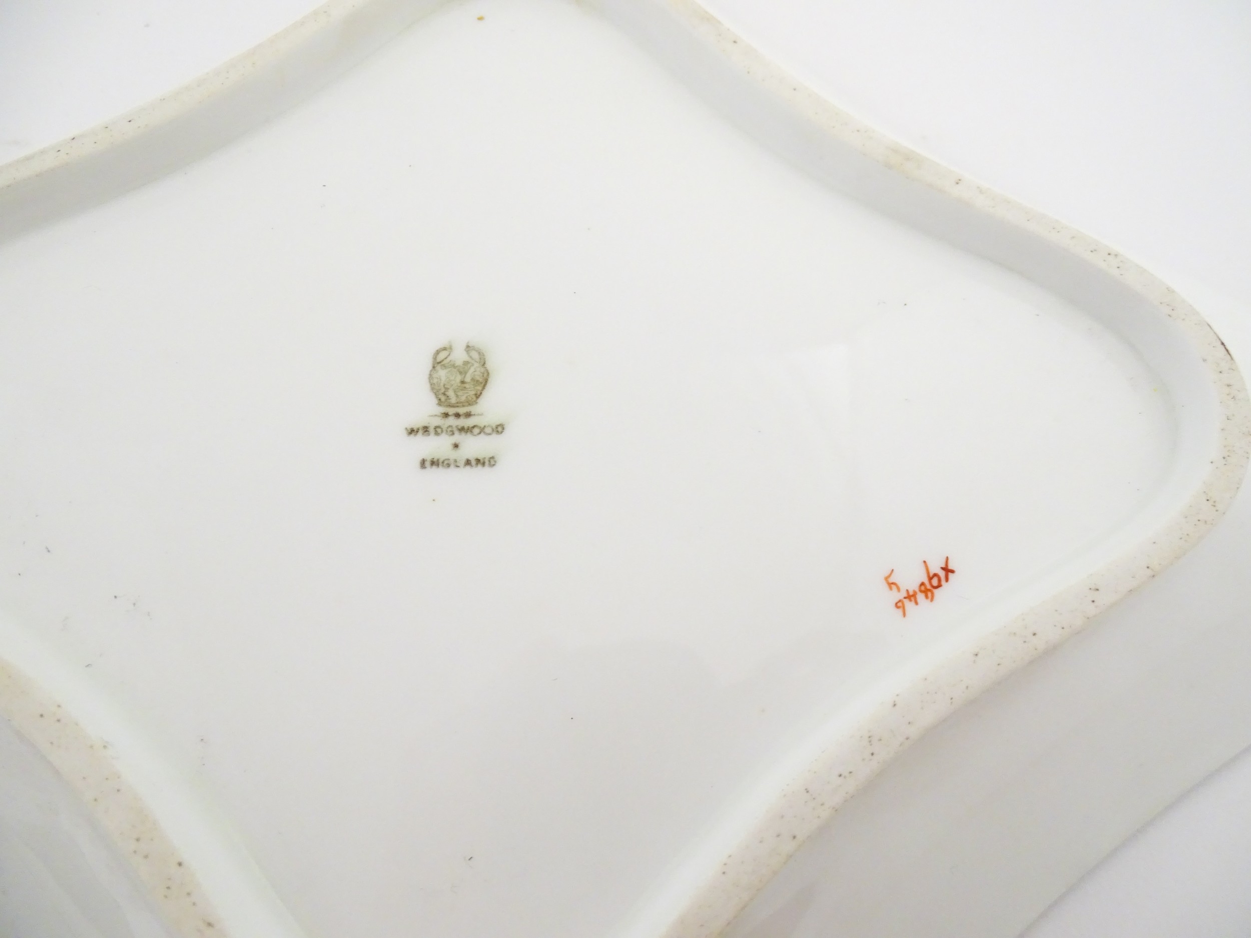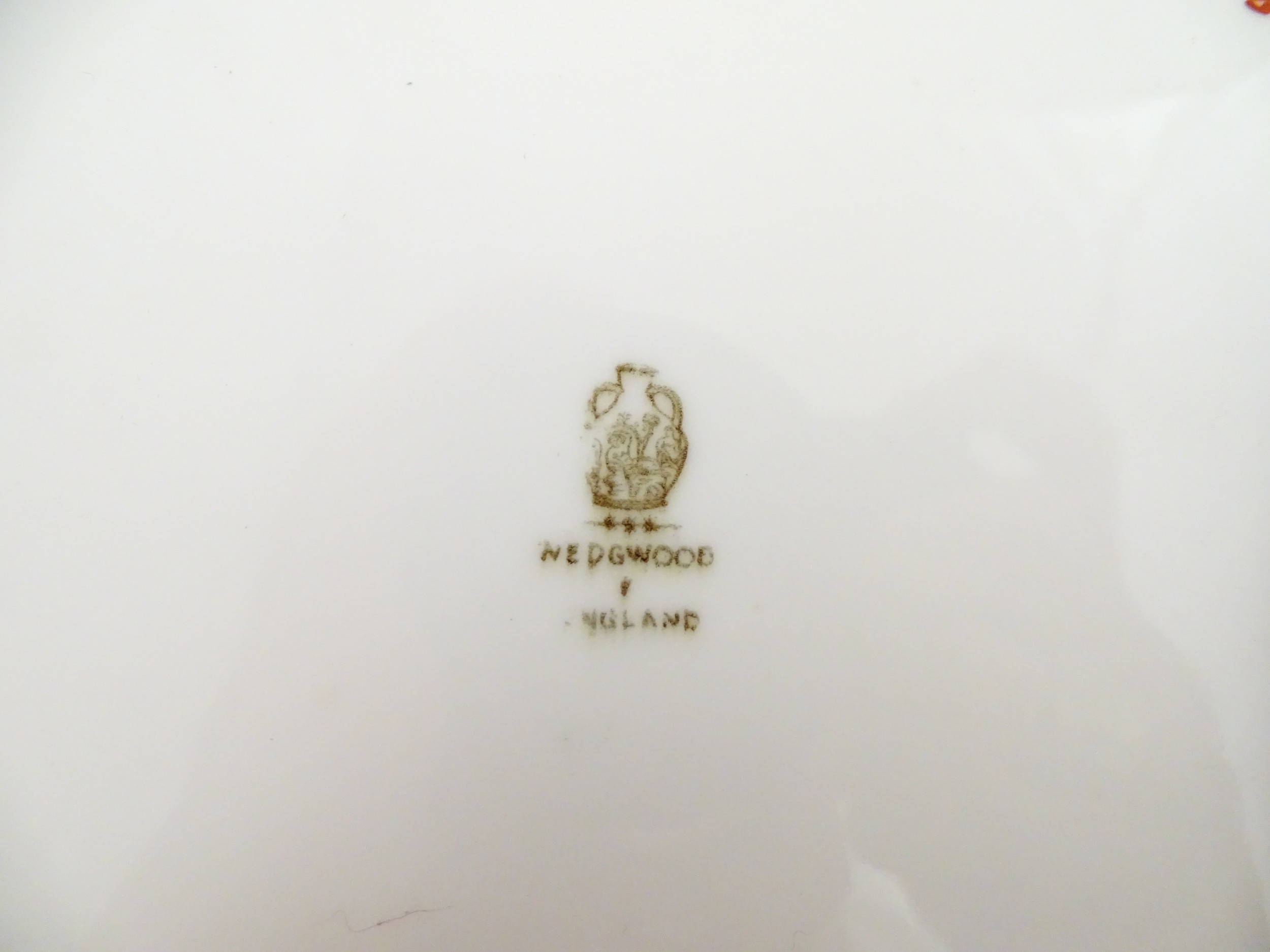 Fifteen Wedgwood yellow ground plates decorated with Chinoiserie temples and Asiatic pheasants. Marked under. Various shapes. Plates approx. 9" wide (15)