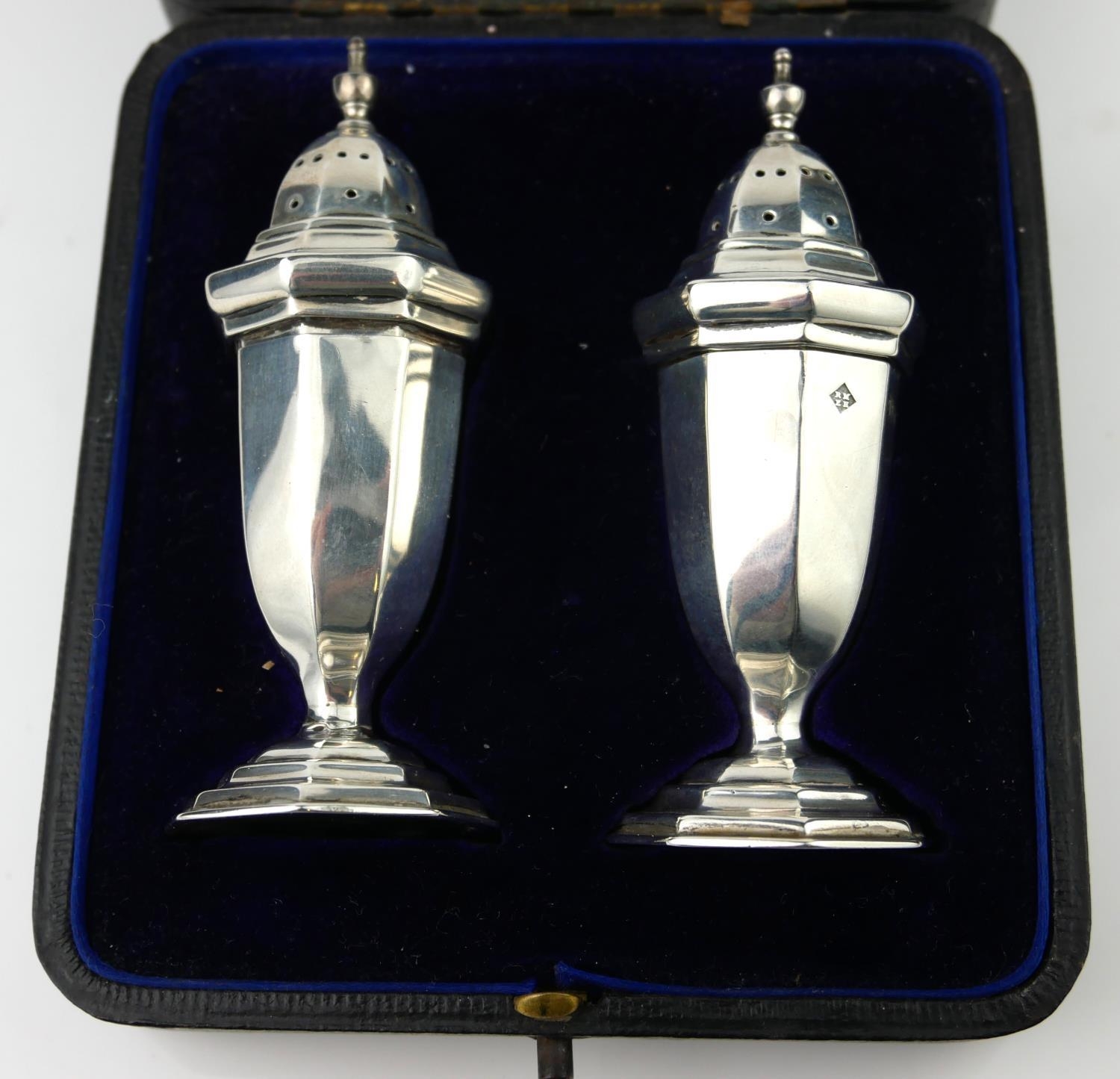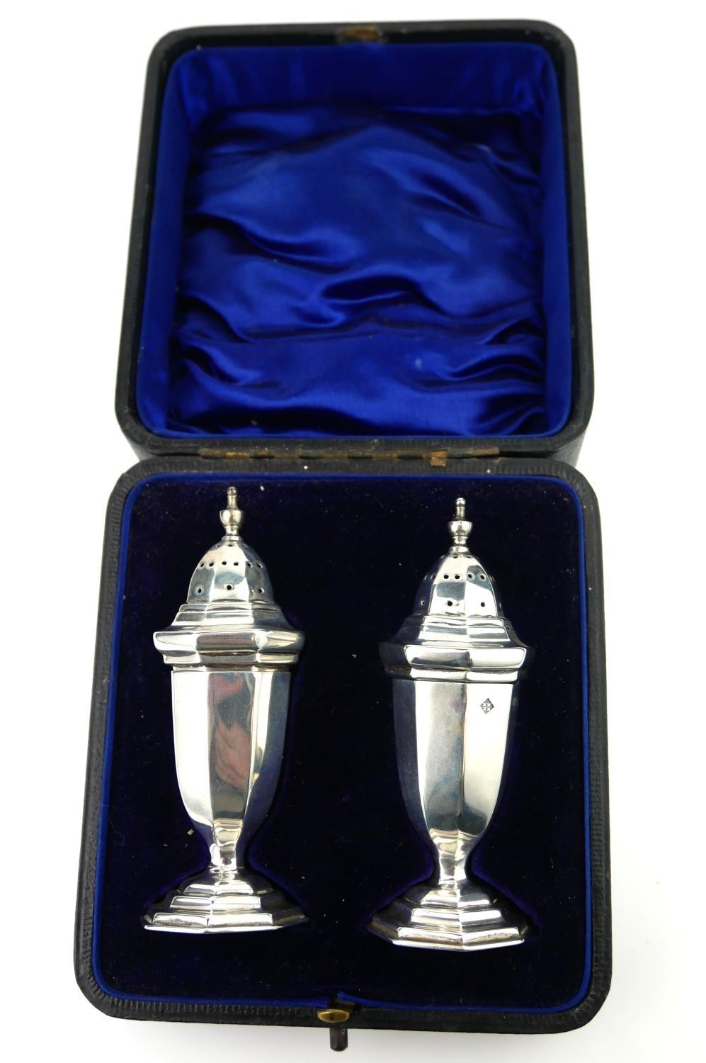 A PAIR OF EDWARDIAN SILVER PEPPERETTES