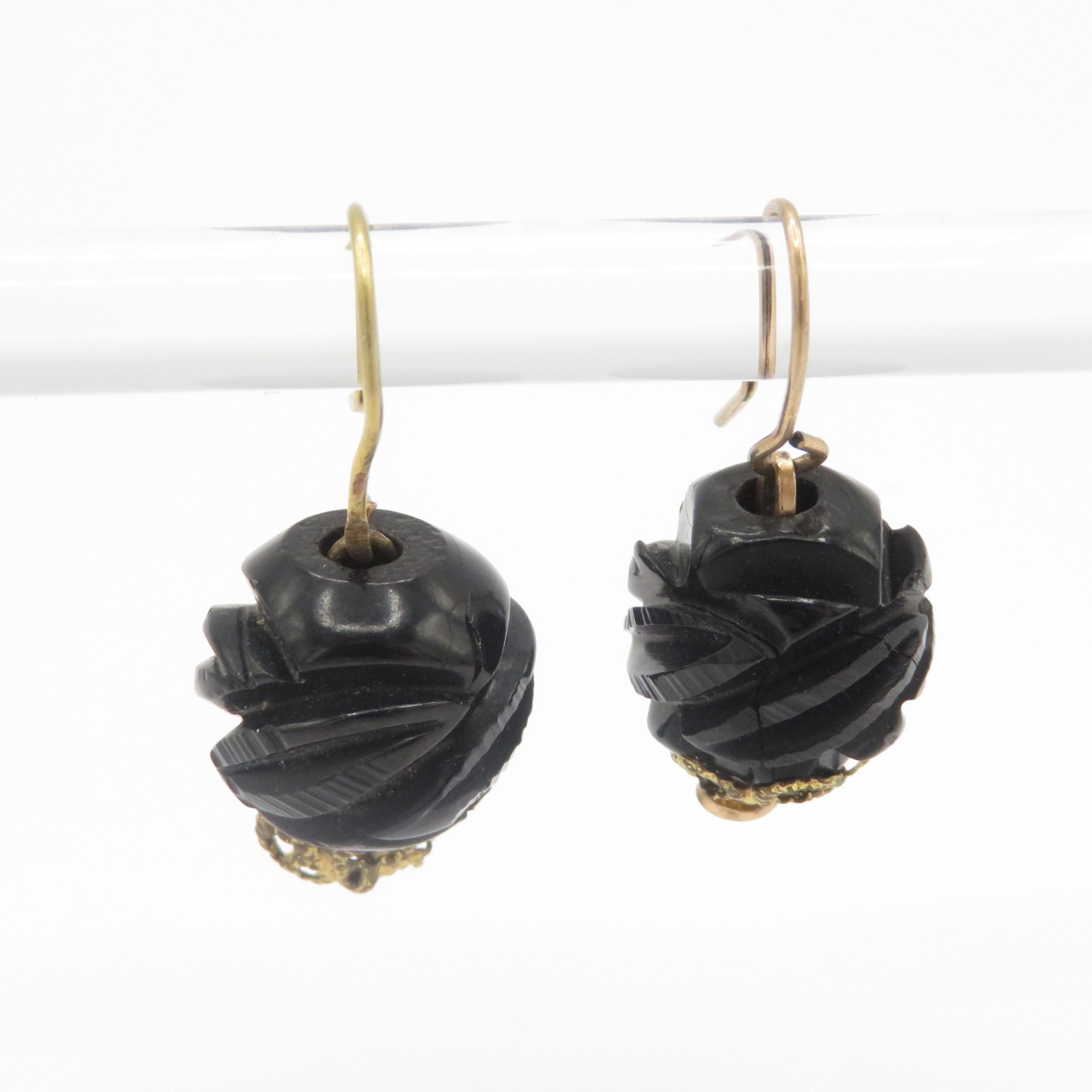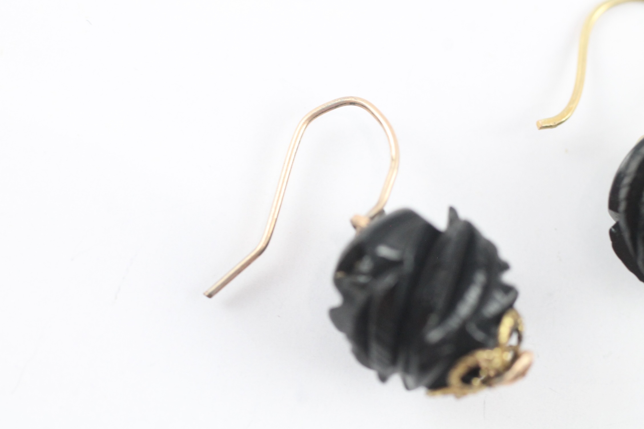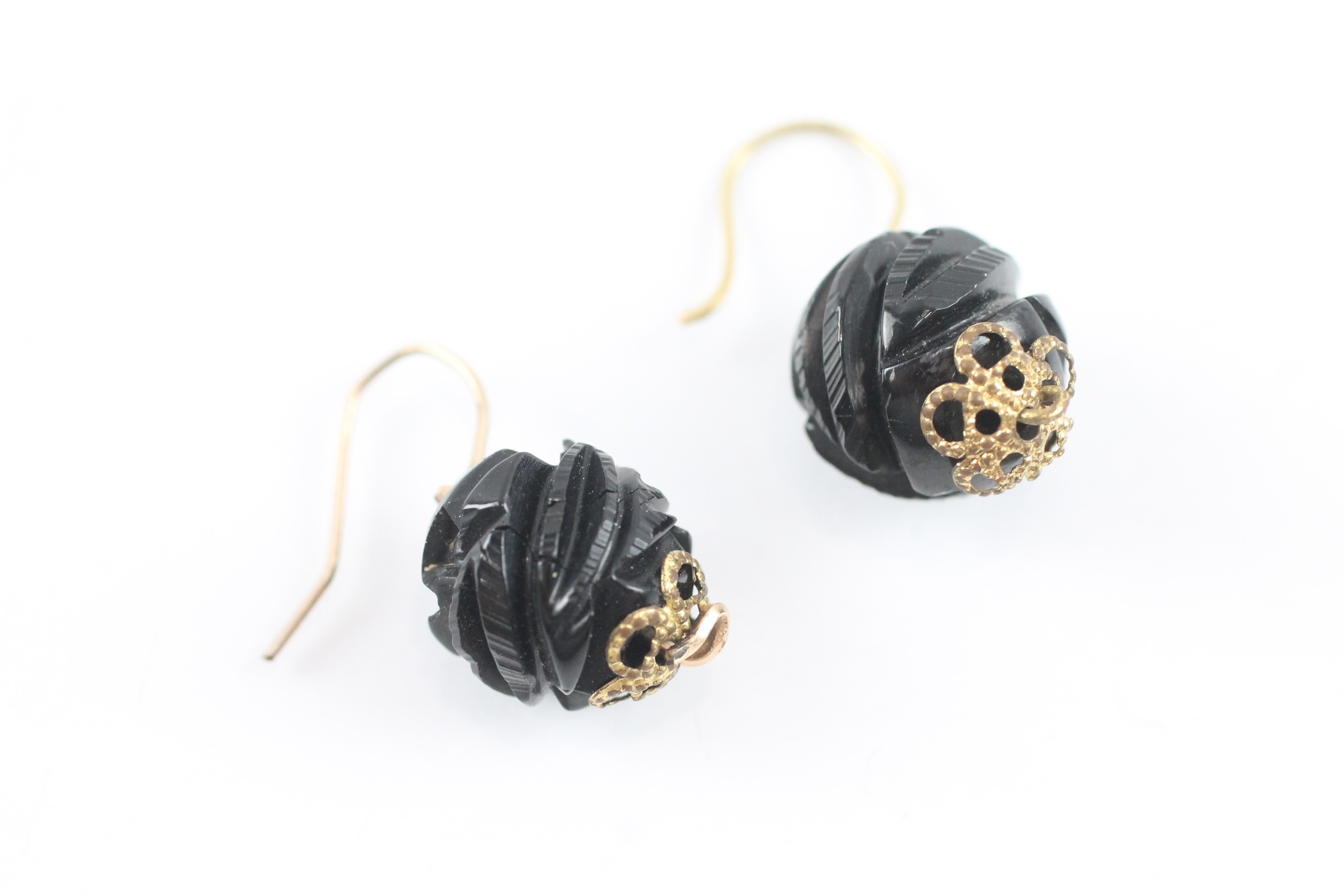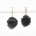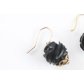 9ct gold carved jet hook earrings (2.5g)