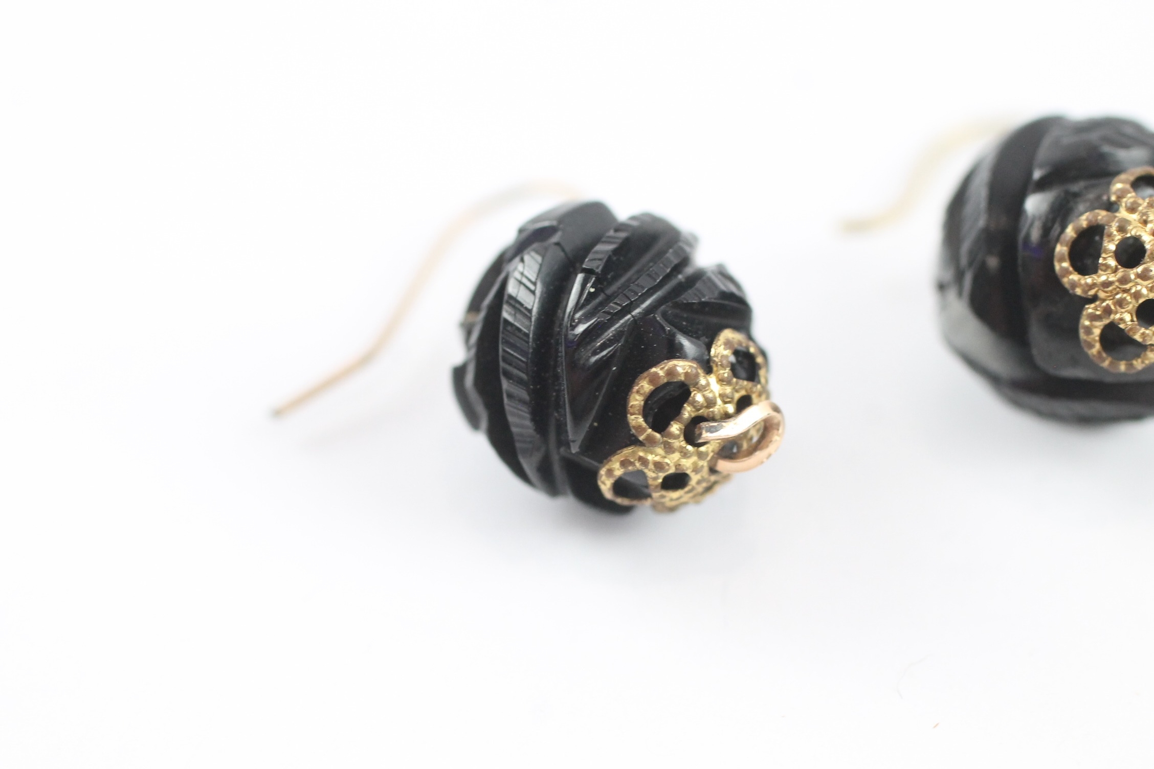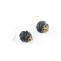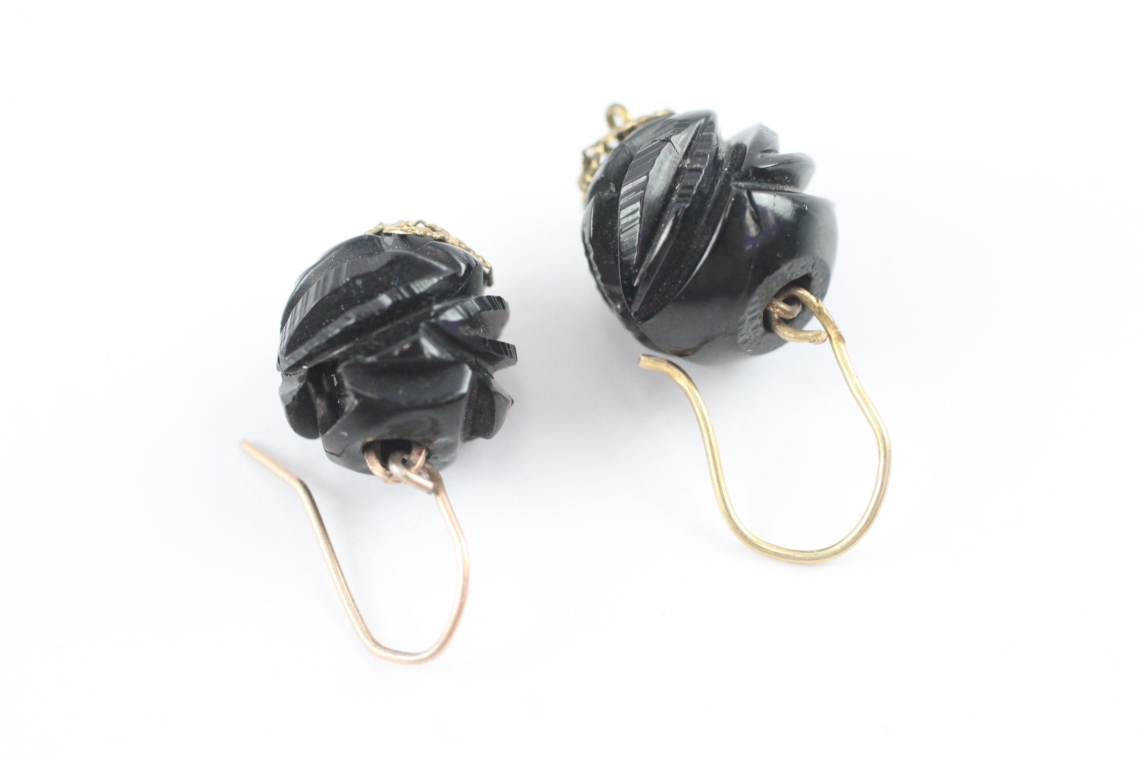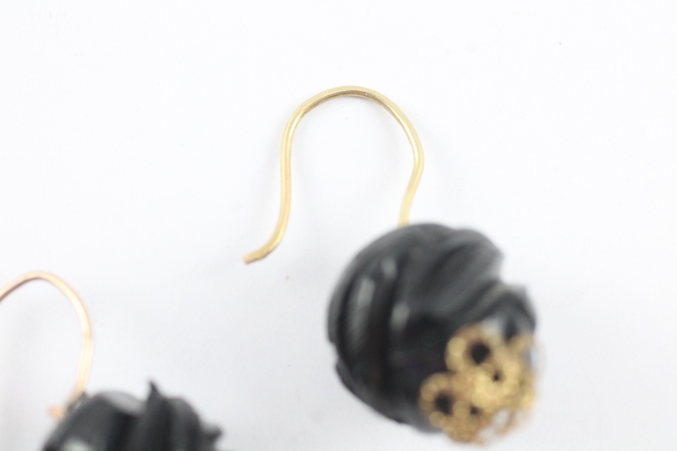 9ct gold carved jet hook earrings (2.5g)