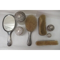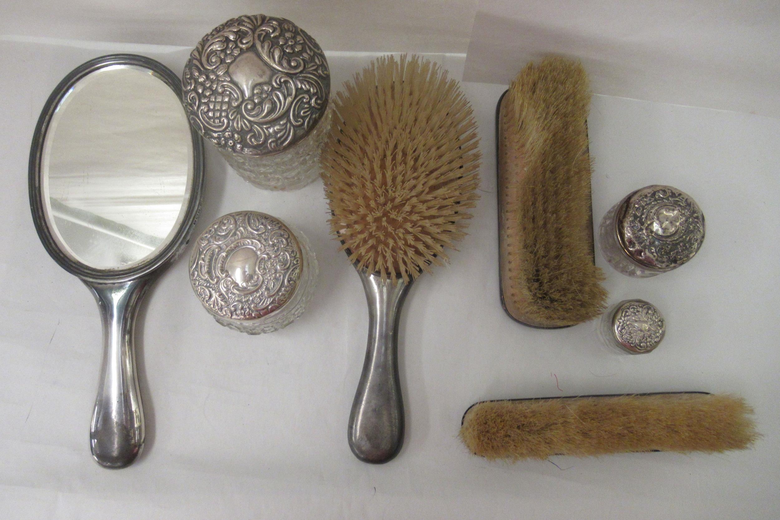 Silver topped and backed dressing table accessories: to include a hand mirror Birmingham 1922