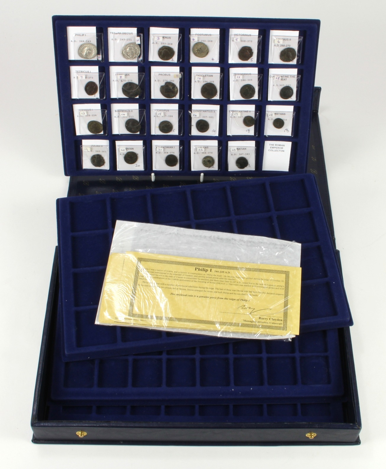 Roman Coins (23) a set by Coincraft: 'The Roman Emperor Collection' Philip I to Gratian, includes 3x silver/billon ants; the rest bronze. Cased with certs.