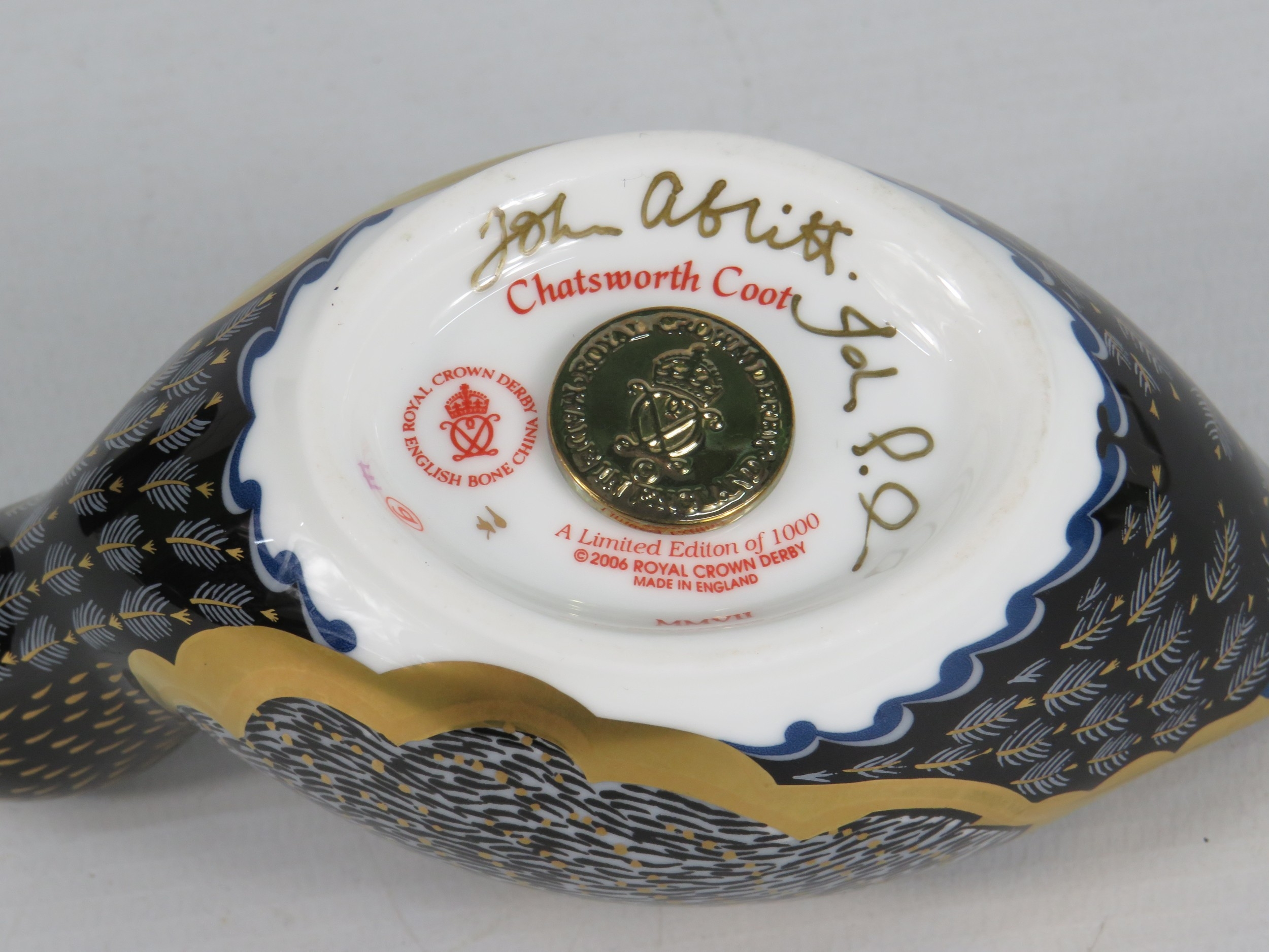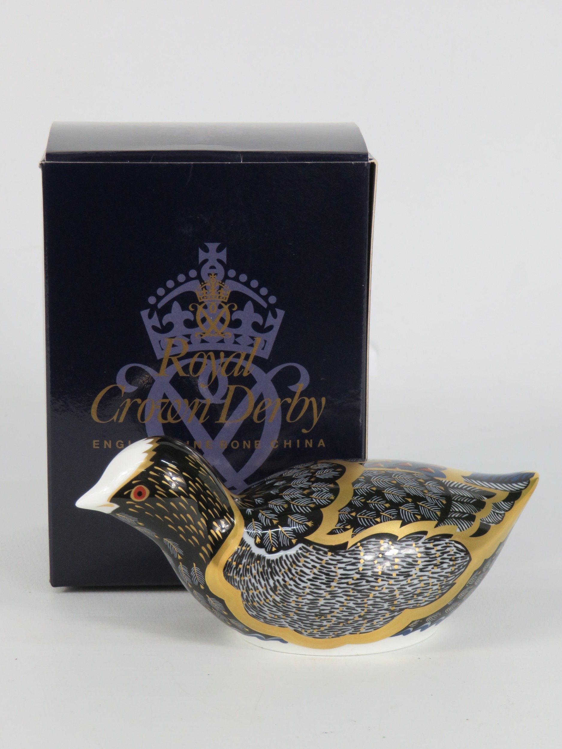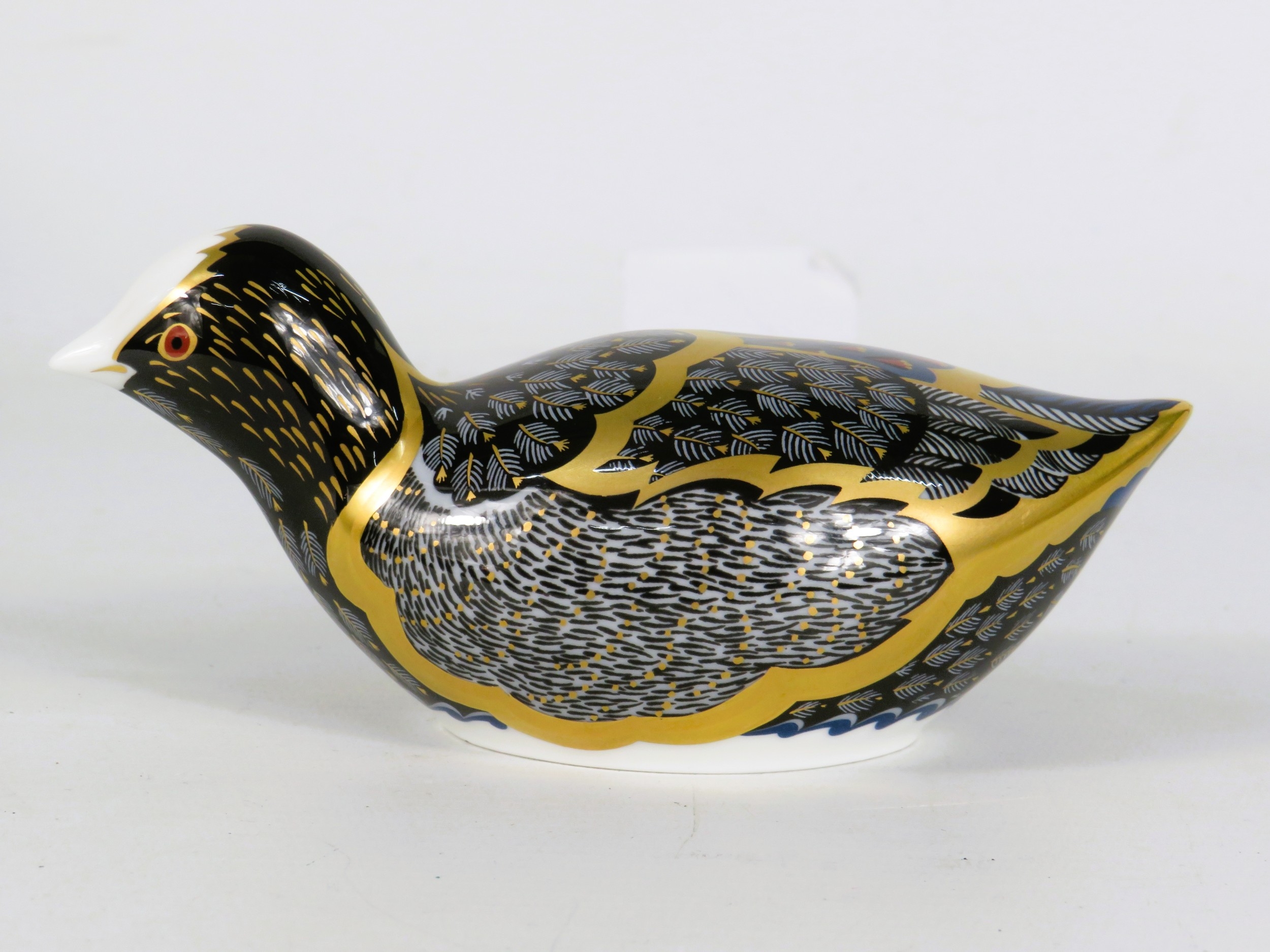 Royal Crown Derby Limited Edition Chatsworth Coot Paperweight - Gold Stopper - Signed to Base - Boxed