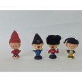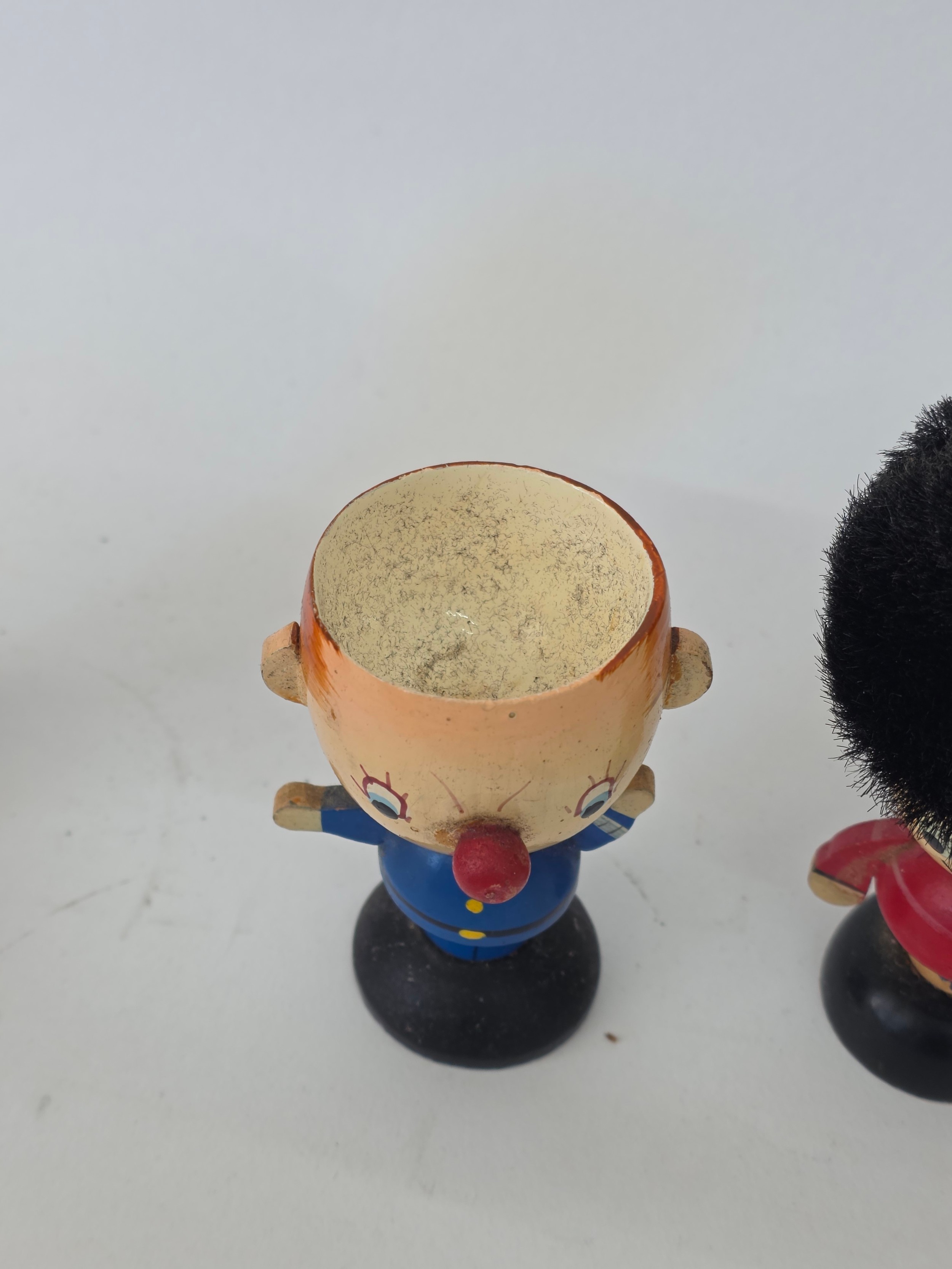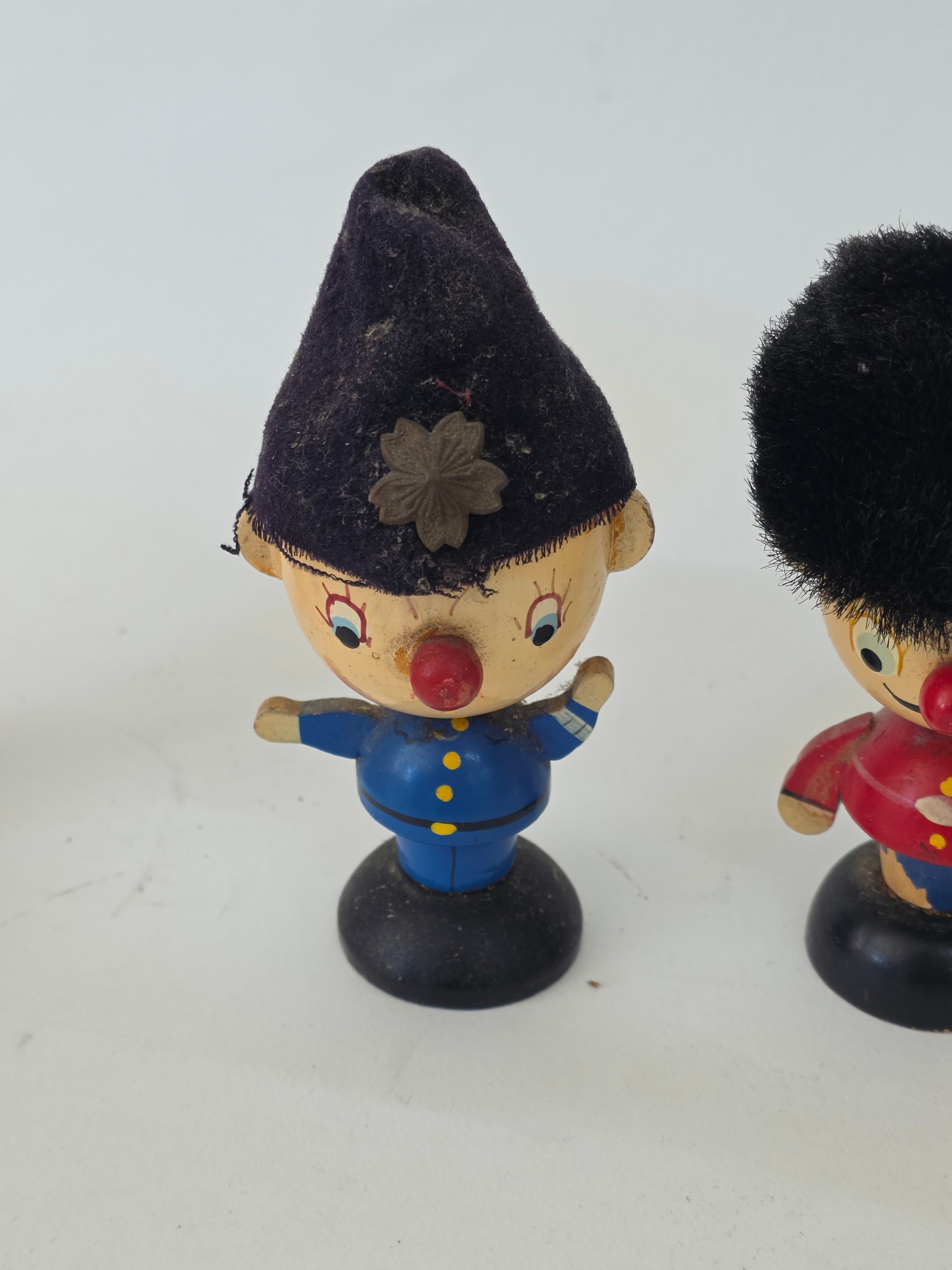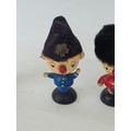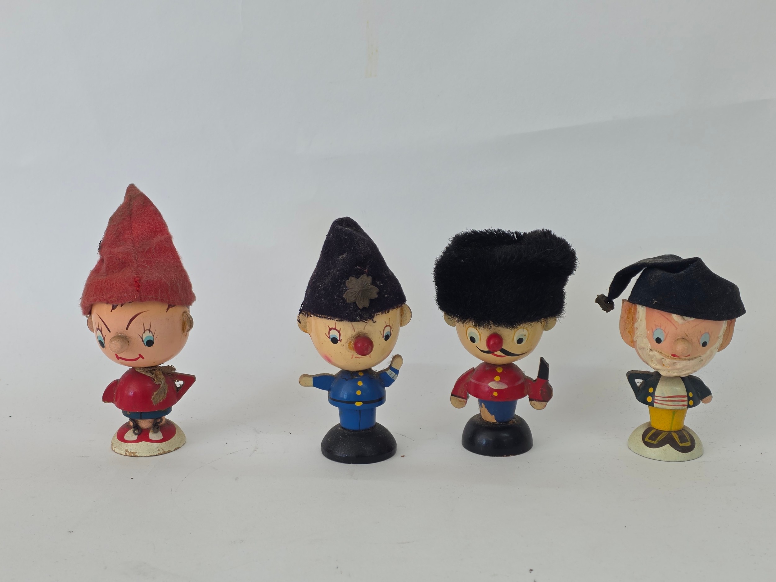 Vintage Noddy and friends set of four wooden Egs Cups with Egg cosy Hats