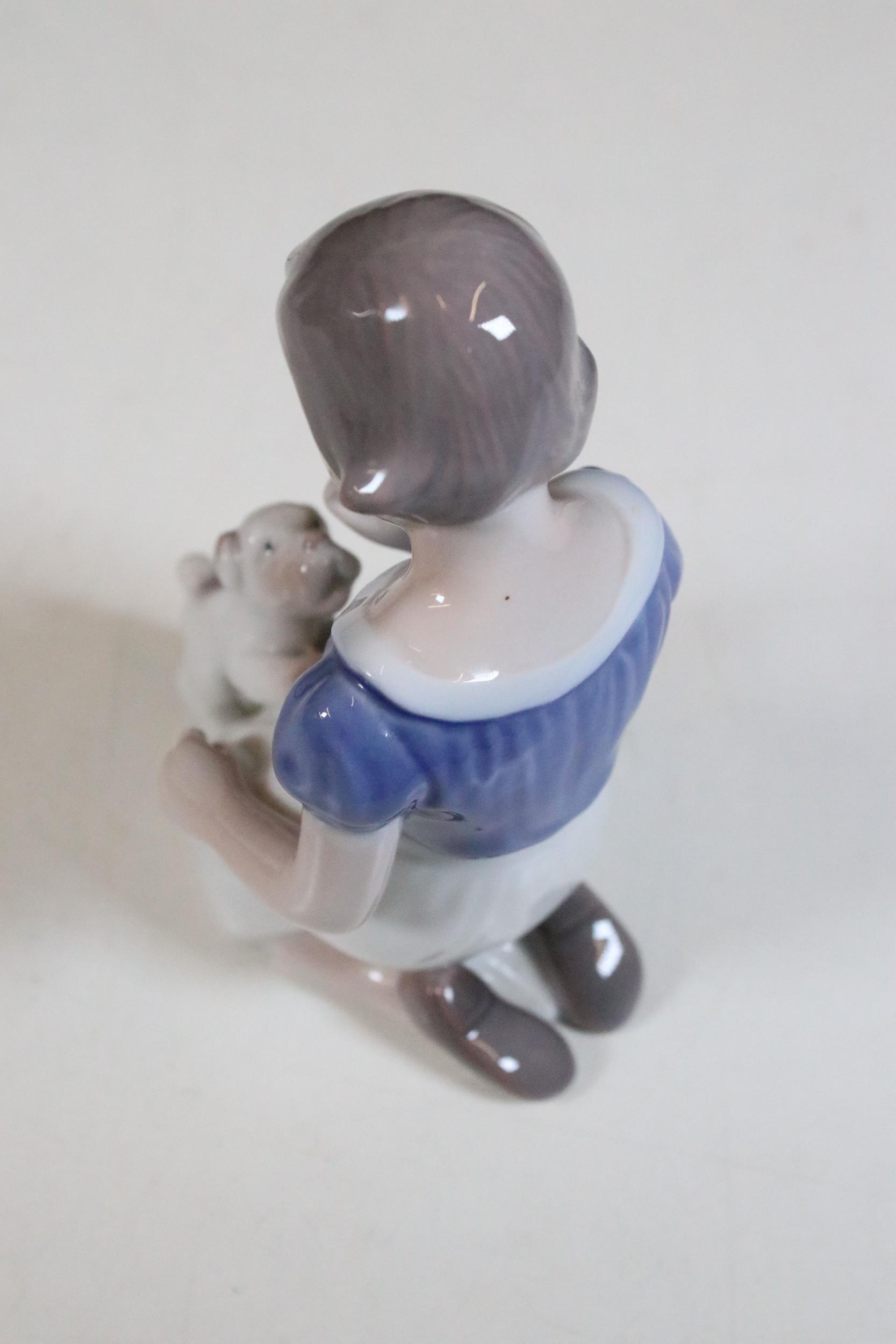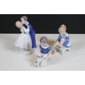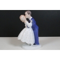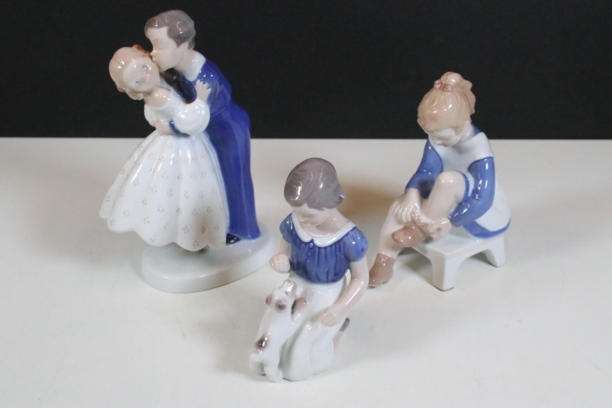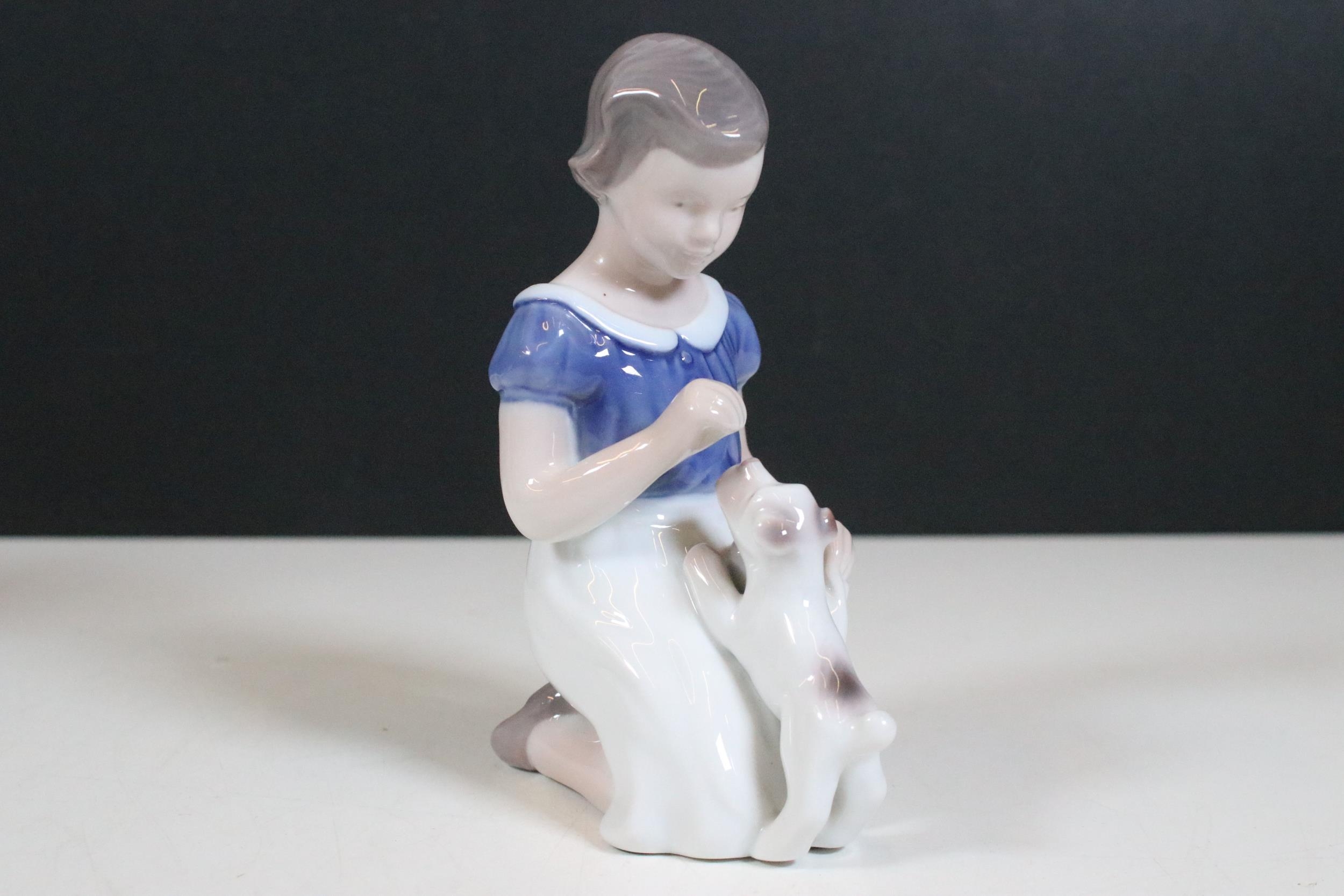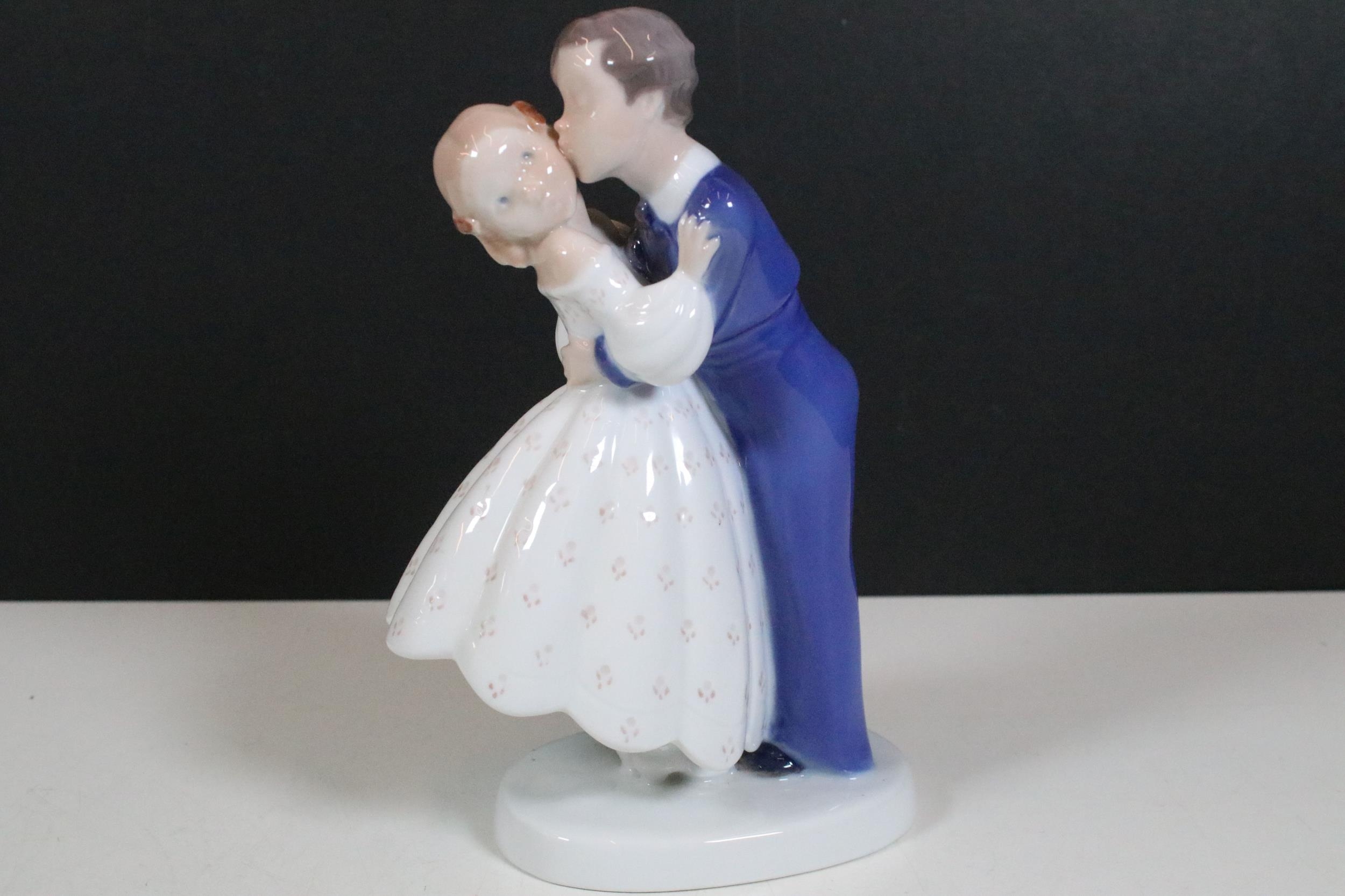 Bing and Grondahl, Denmark figurines to include 'Girl tying shoe' 2373, 'Kissing couple' 2162 and 'Girl with puppy' 2316, all marked to base (3)