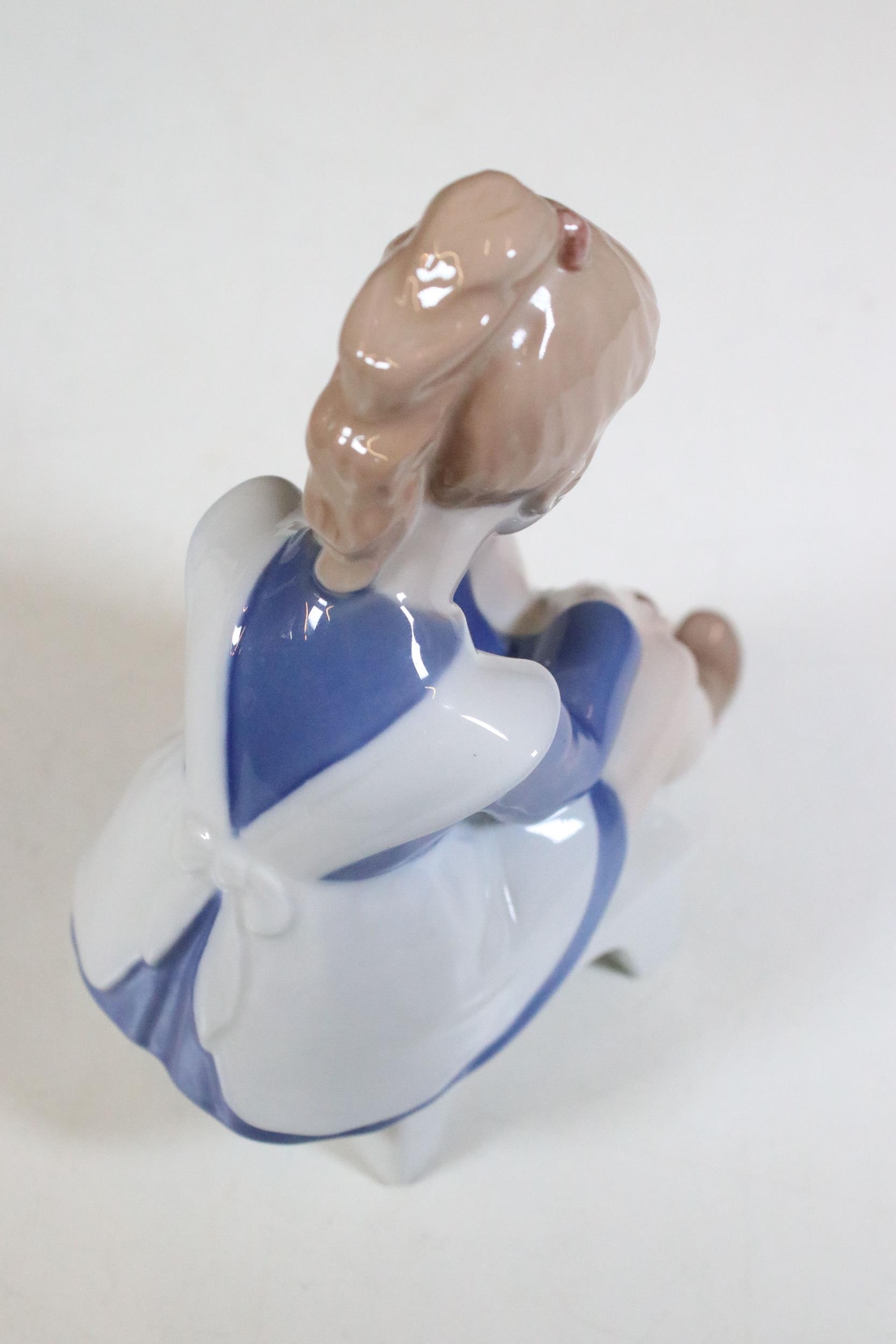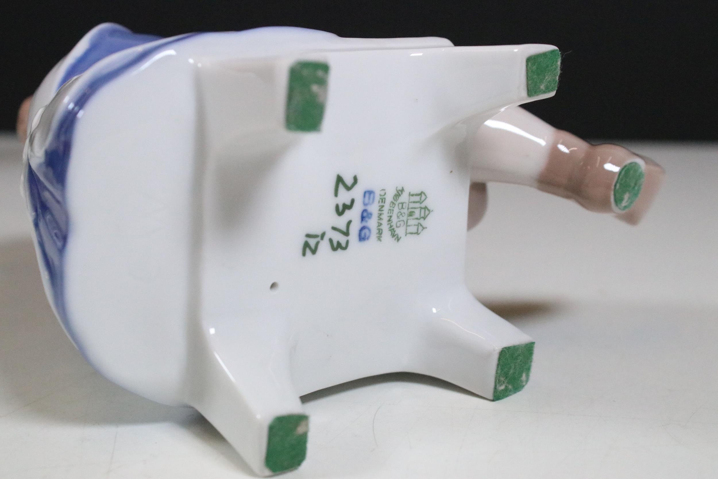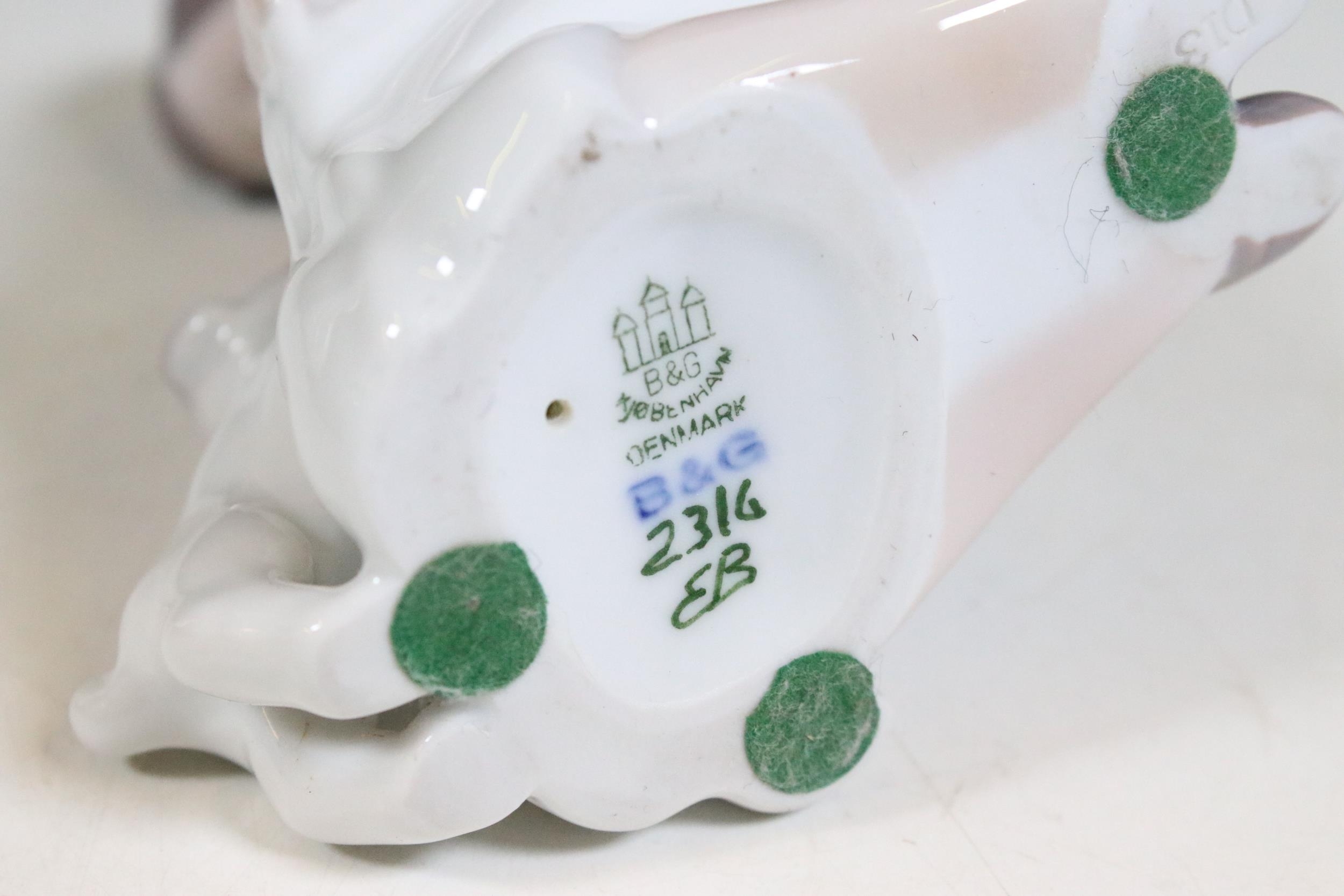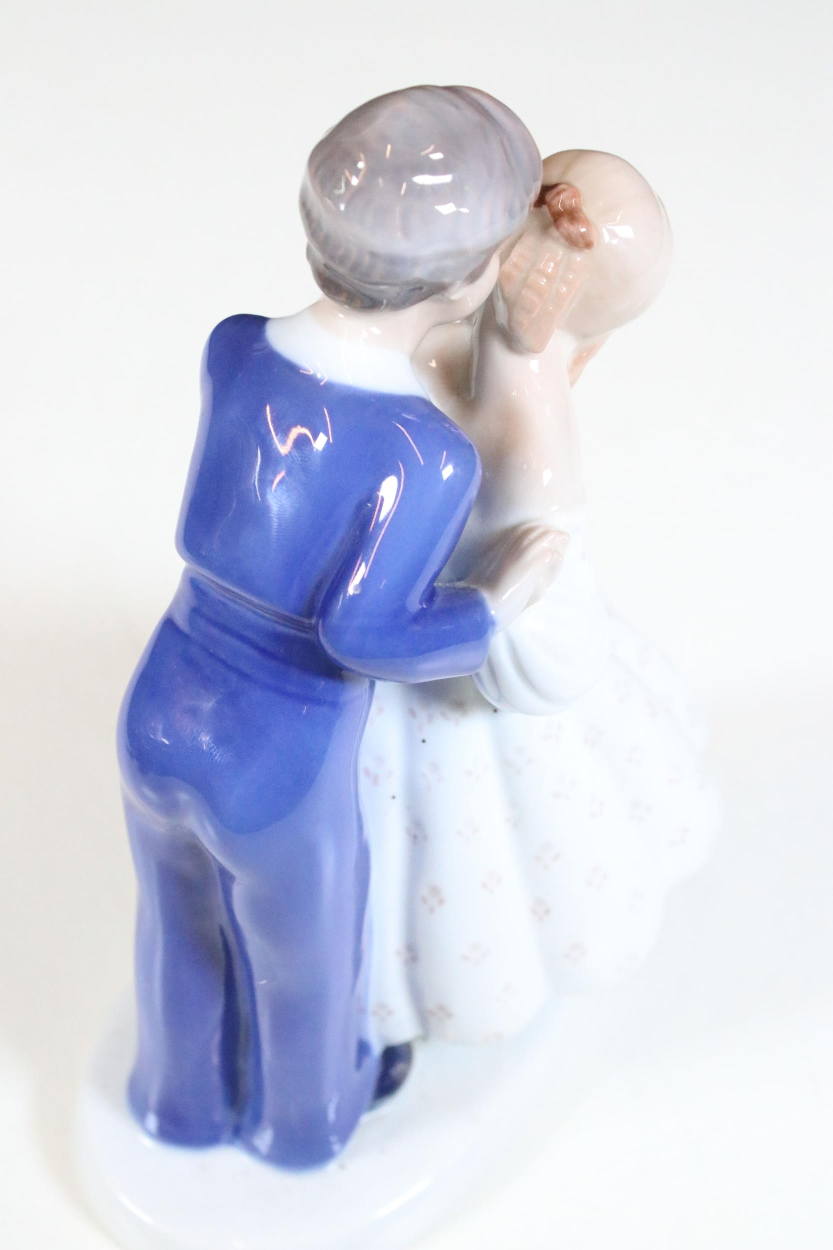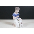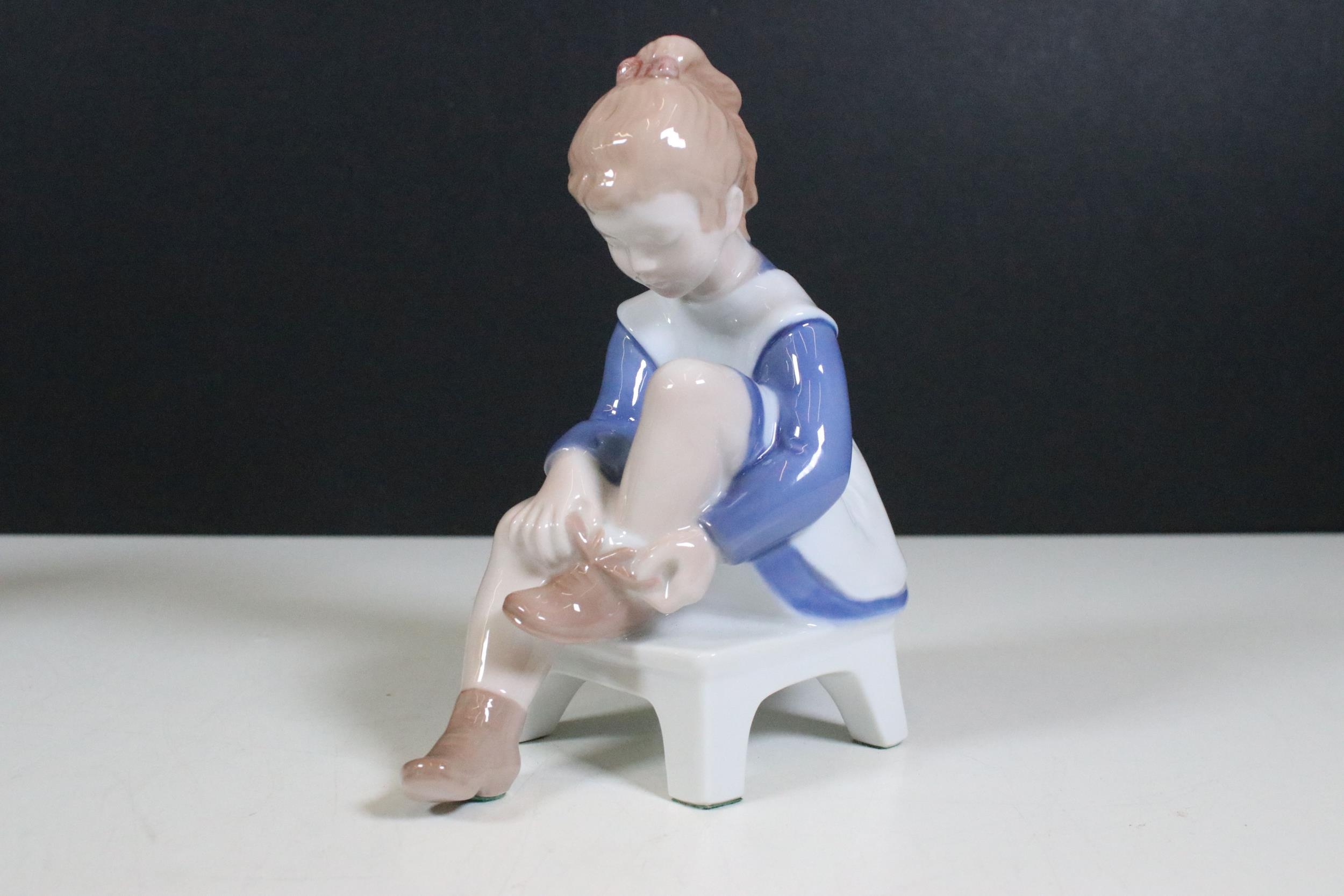 Bing and Grondahl, Denmark figurines to include 'Girl tying shoe' 2373, 'Kissing couple' 2162 and 'Girl with puppy' 2316, all marked to base (3)
