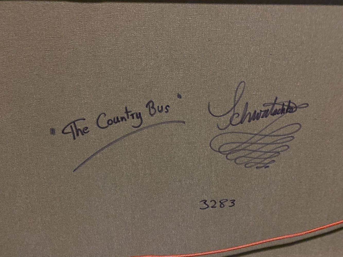 JOHN SCHWATSCHKE (b.1943), ‘THE COUNTRY BUS’, oil on canvas, signed upper right with artists monogram, inscribed verso with title, archive no. and signed. Dimensions: 90cm wide x 99cm high approx. frame