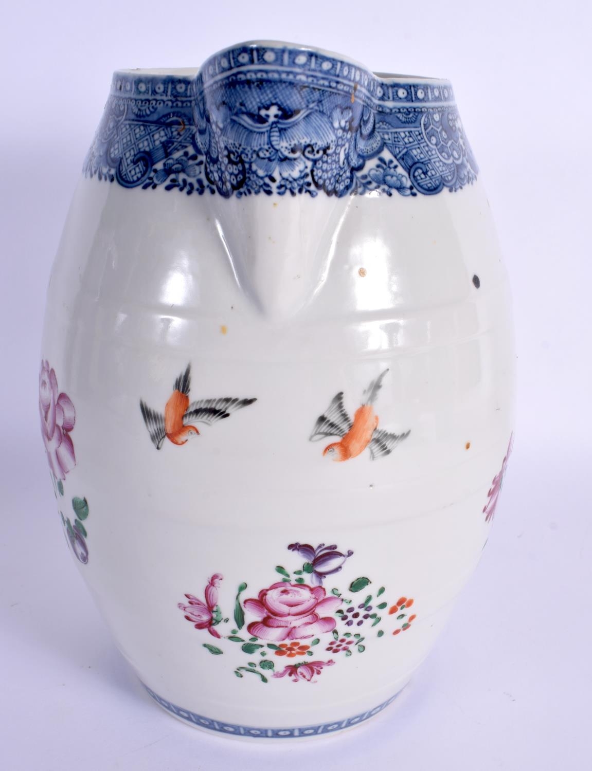 A LARGE 18TH CENTURY CHINESE EXPORT FAMILLE ROSE CIDER JUG Qianlong painted with flowers and birds. 23 cm x 20 cm.