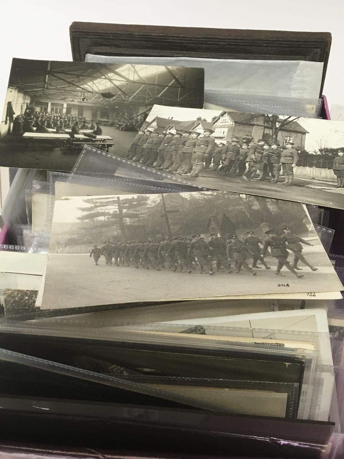 An extensive and interesting collection of World War I postcards including shipping field guns women in uniforms regimental photos hospitals ammunition factories (a lot)
