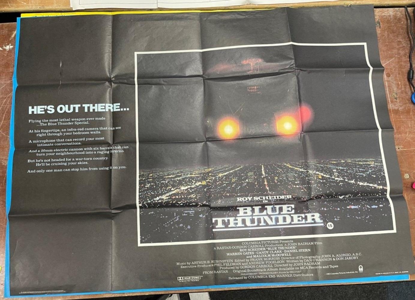 A selection of movie posters to include quad posters of Mel Brooks in HIGH ANXIETY, George Burns in OH GOD, BLUE THUNDER (A/F), and a number of smaller posters
