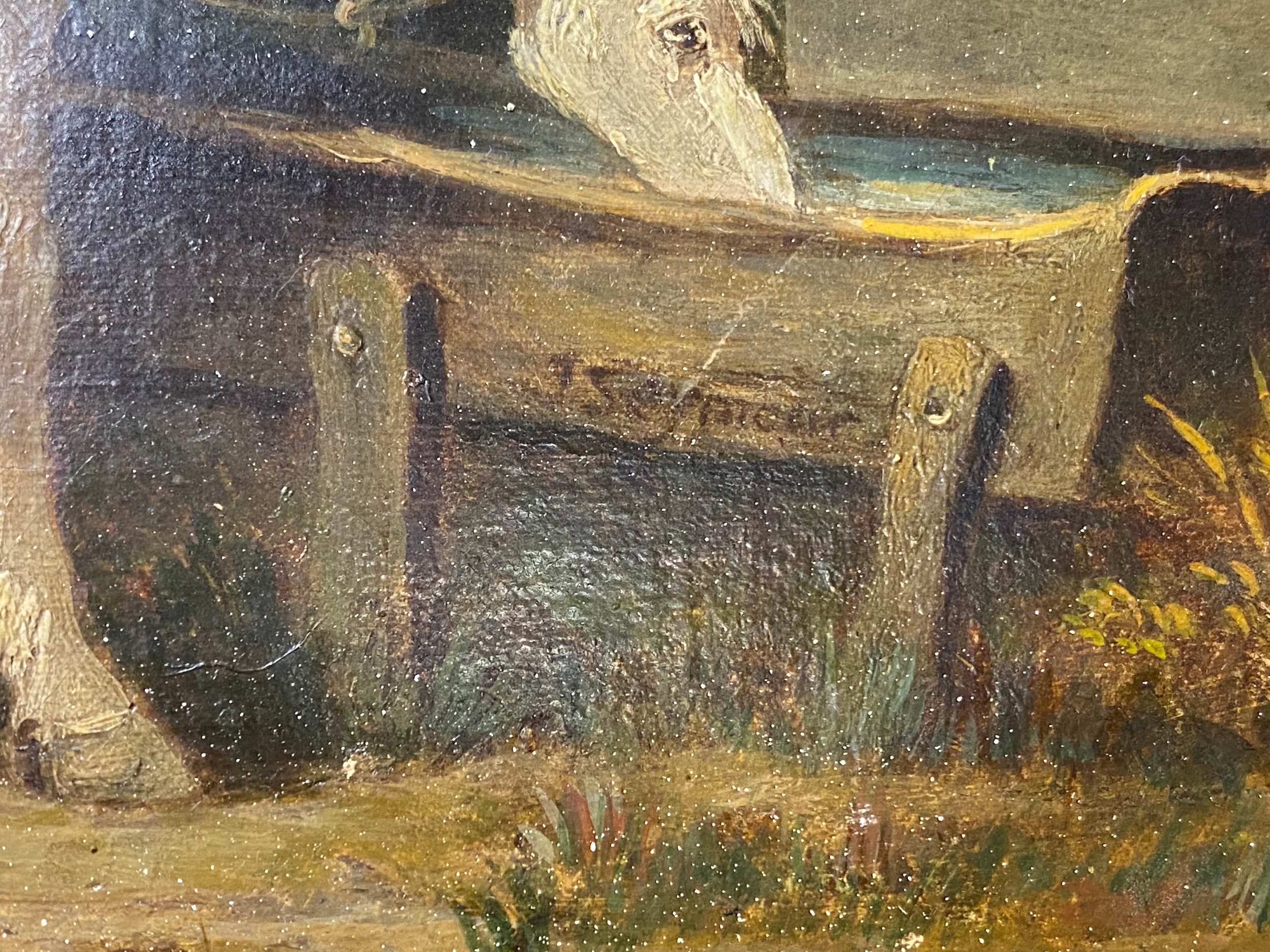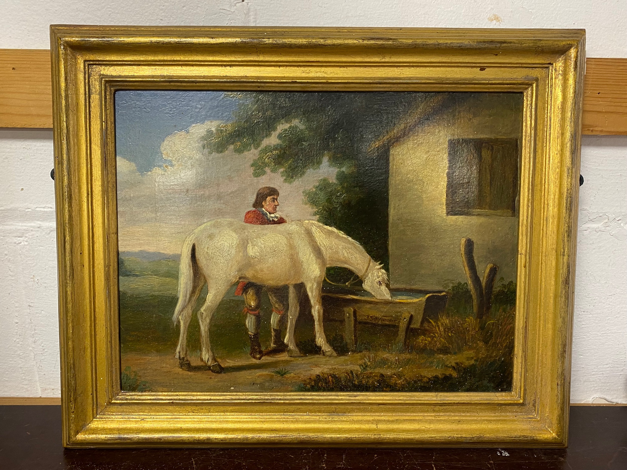 J Seymour, 19th CenturyHorse drinking at a troughoil on canvas, signed -