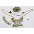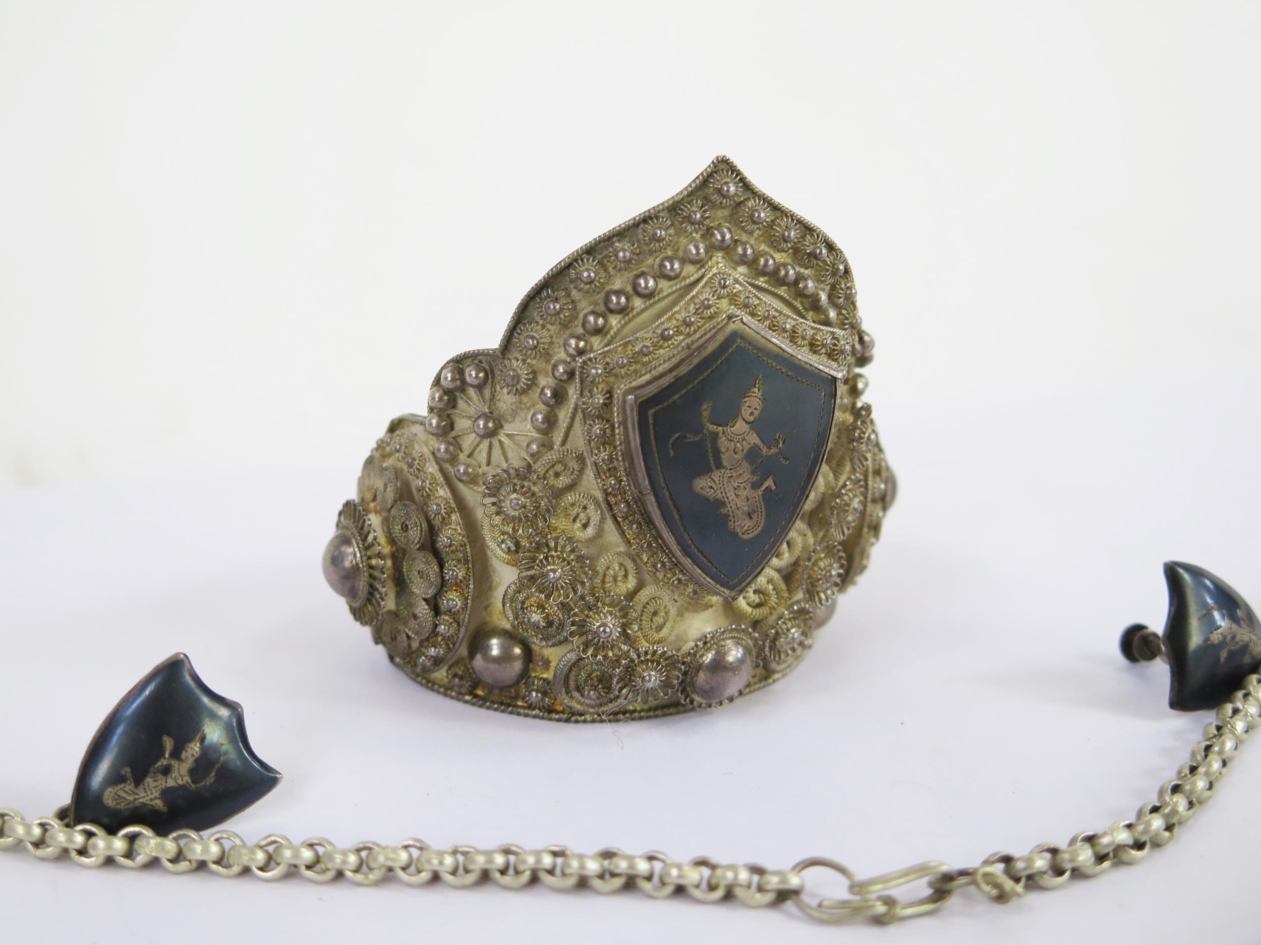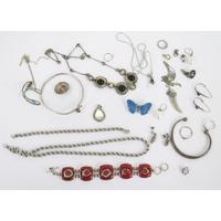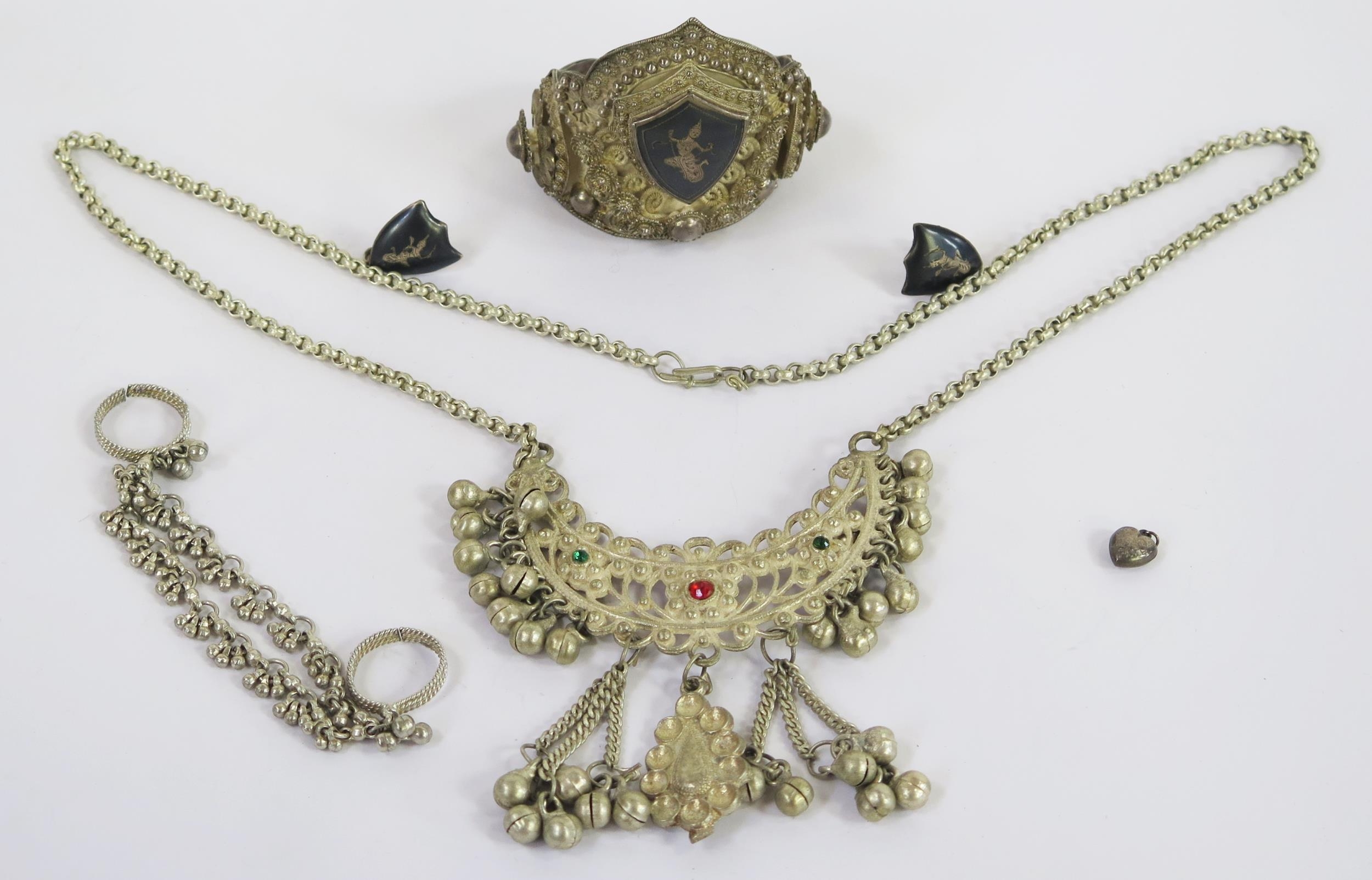 A SIAM Sterling Silver and Niello Bangle, a pair of earrings, a heart pendant and Indian white metal jewellery