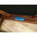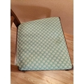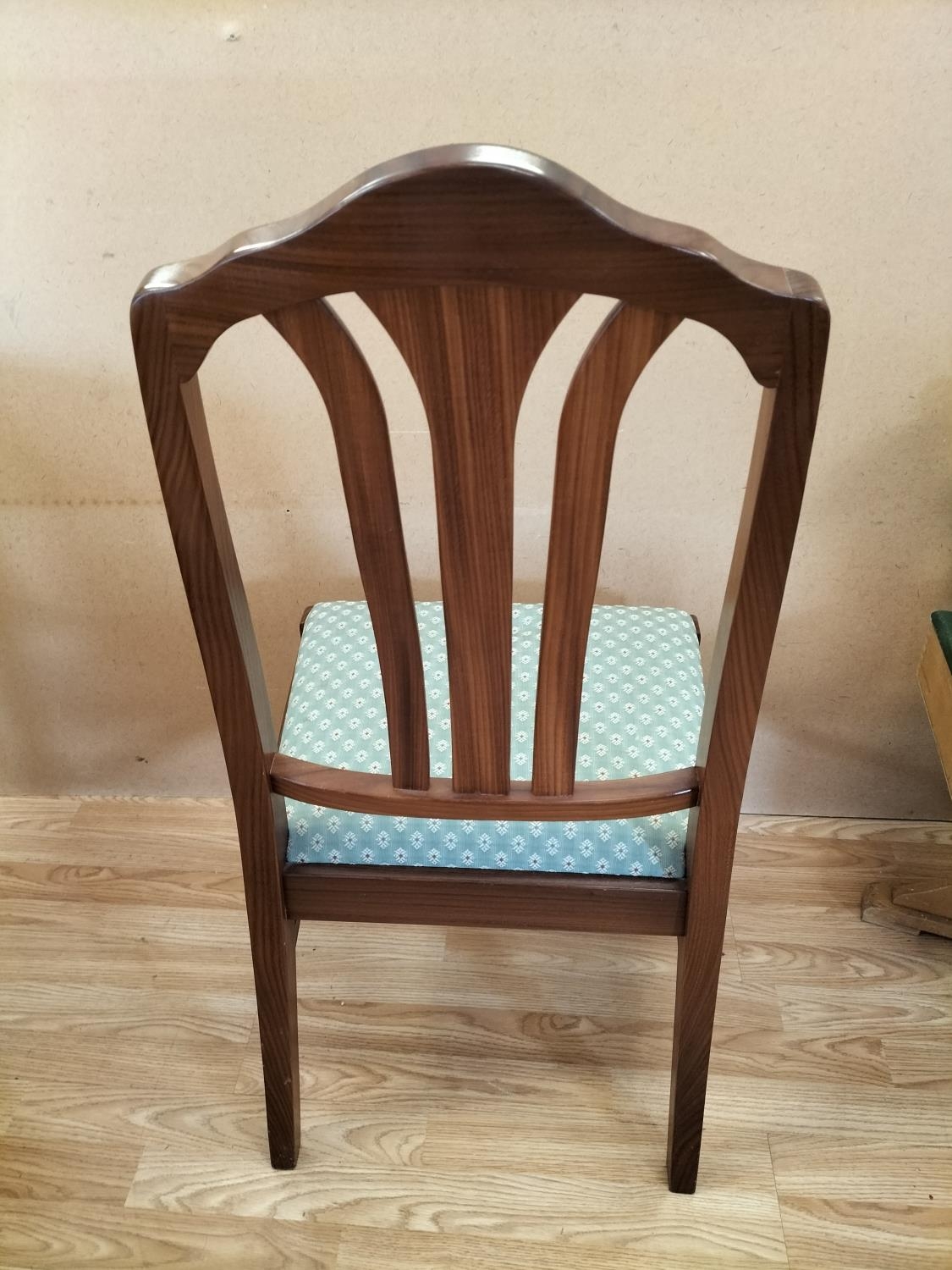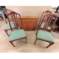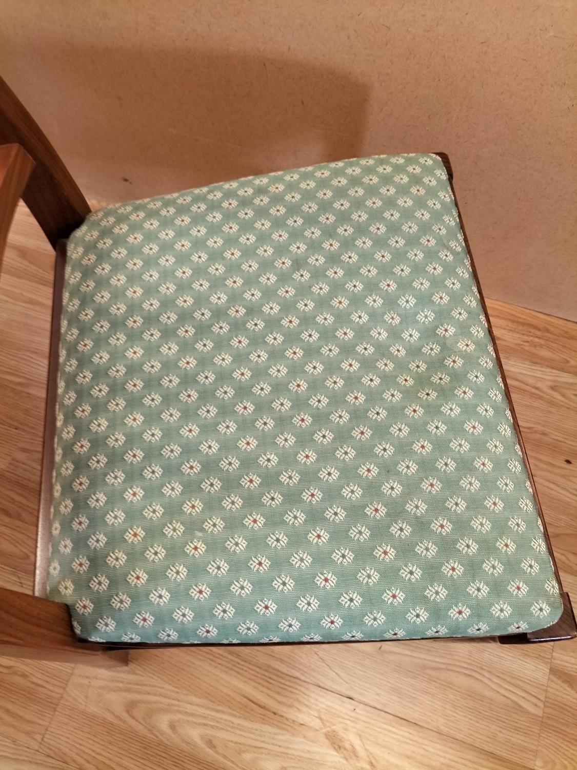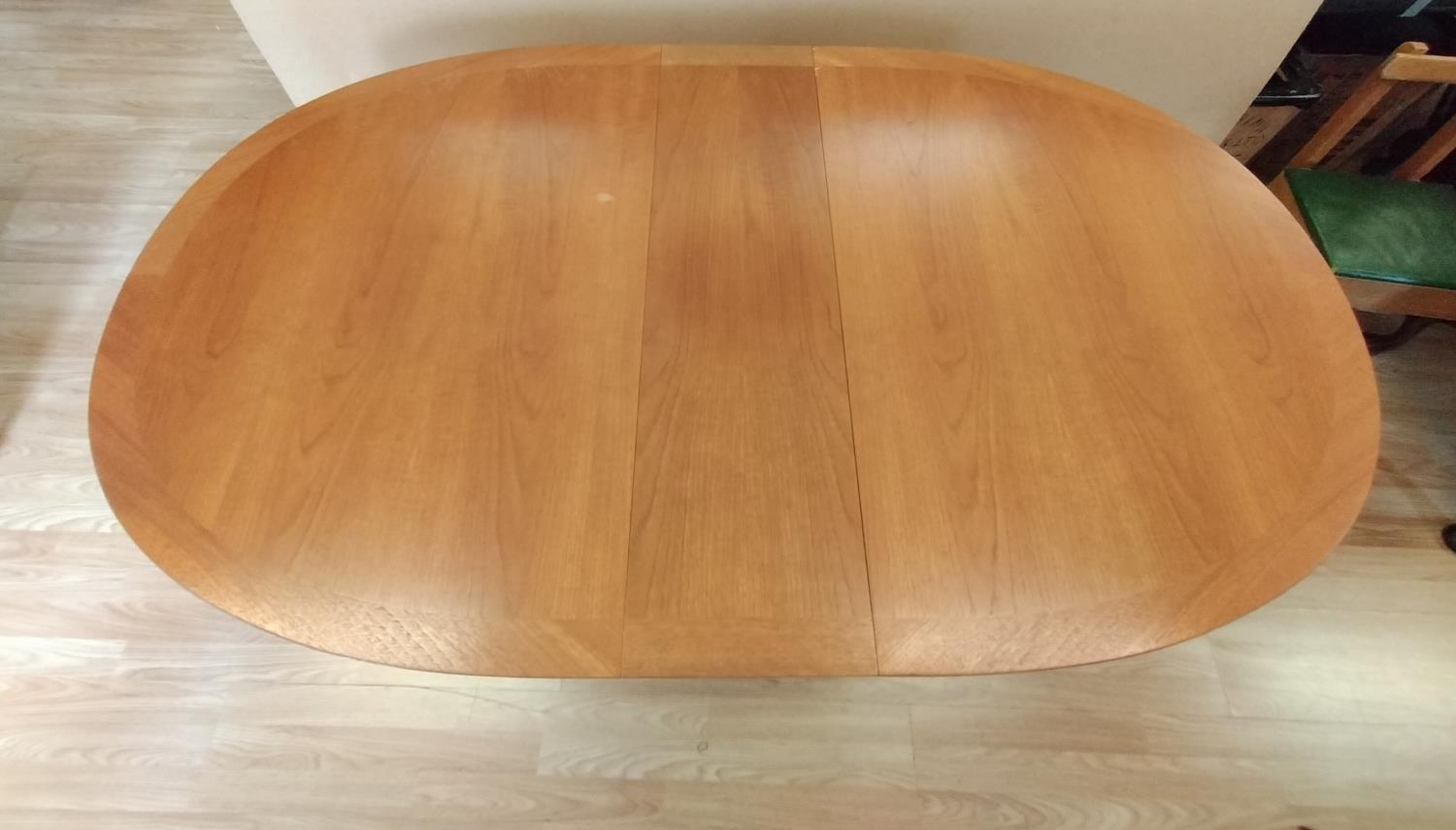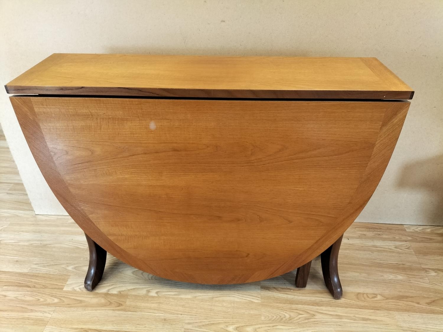 Mid Century Parker Knoll Teak Drop Leaf Dining Table and 4 Fabric Seat Parker Knoll Chairs. Table Closed 75cm High, 91cm x 25cm. Open 160cm. Chairs 96cm High, 48cm x 43cm, Seat Height 43cm. Collection Only.