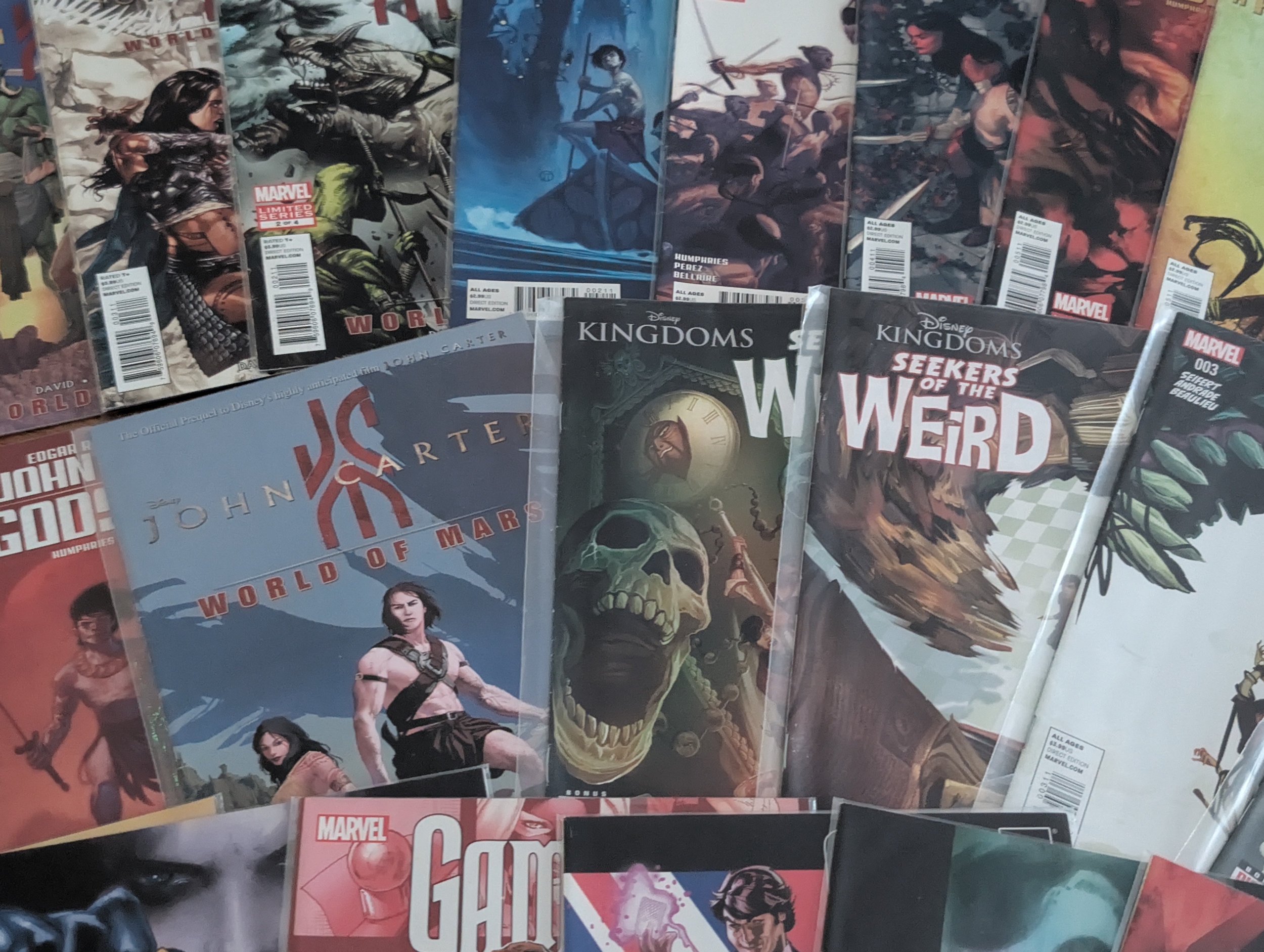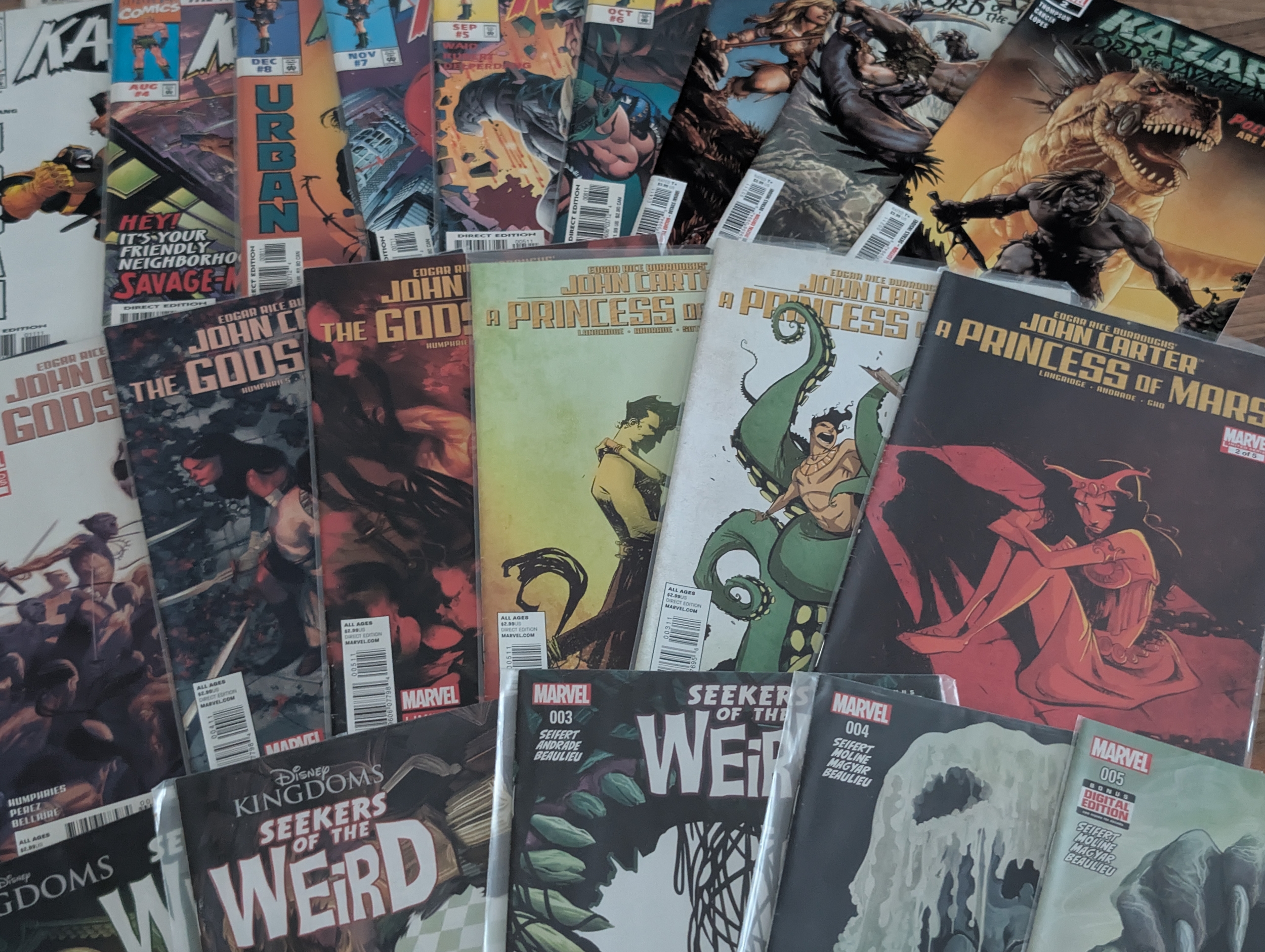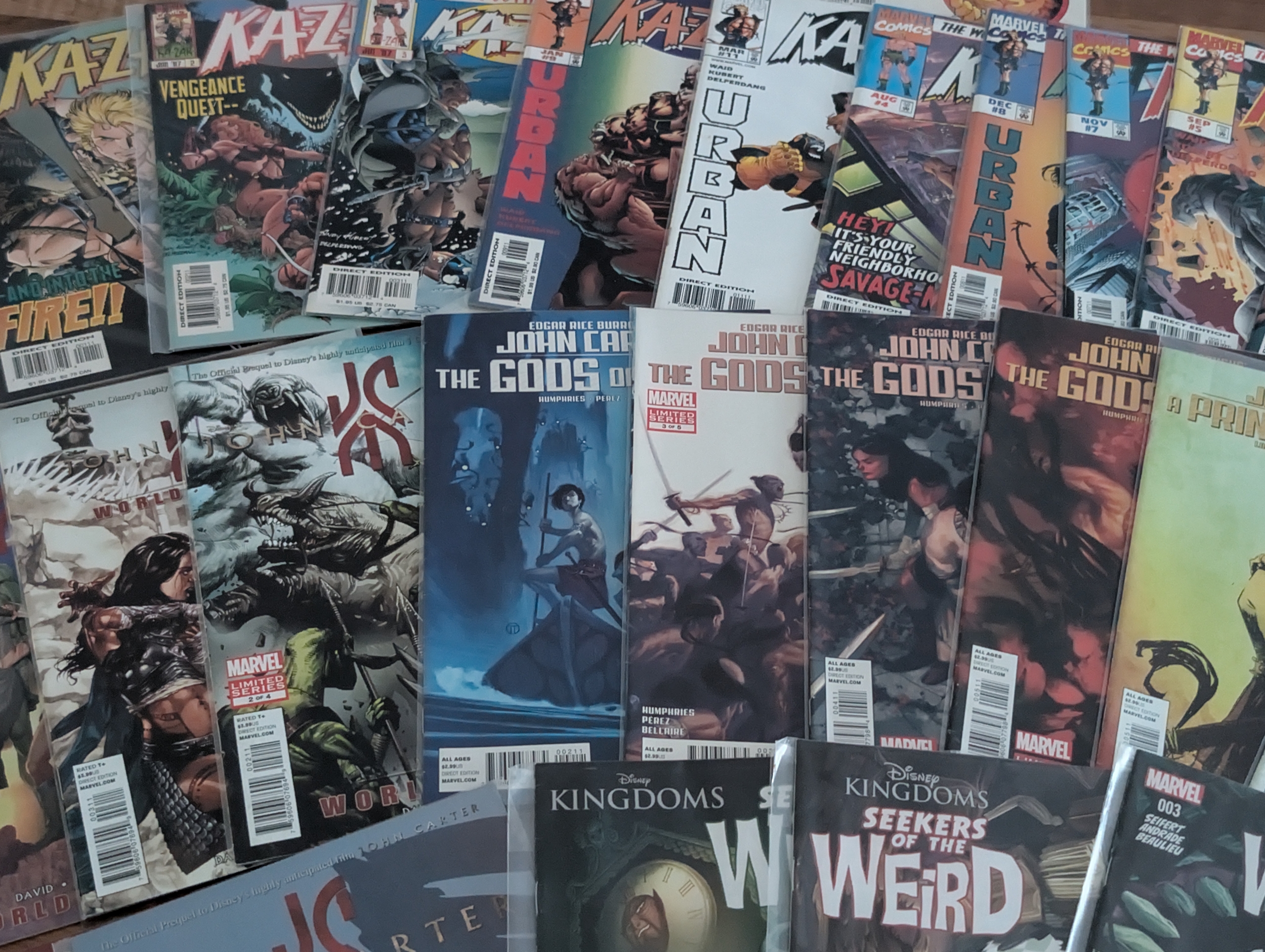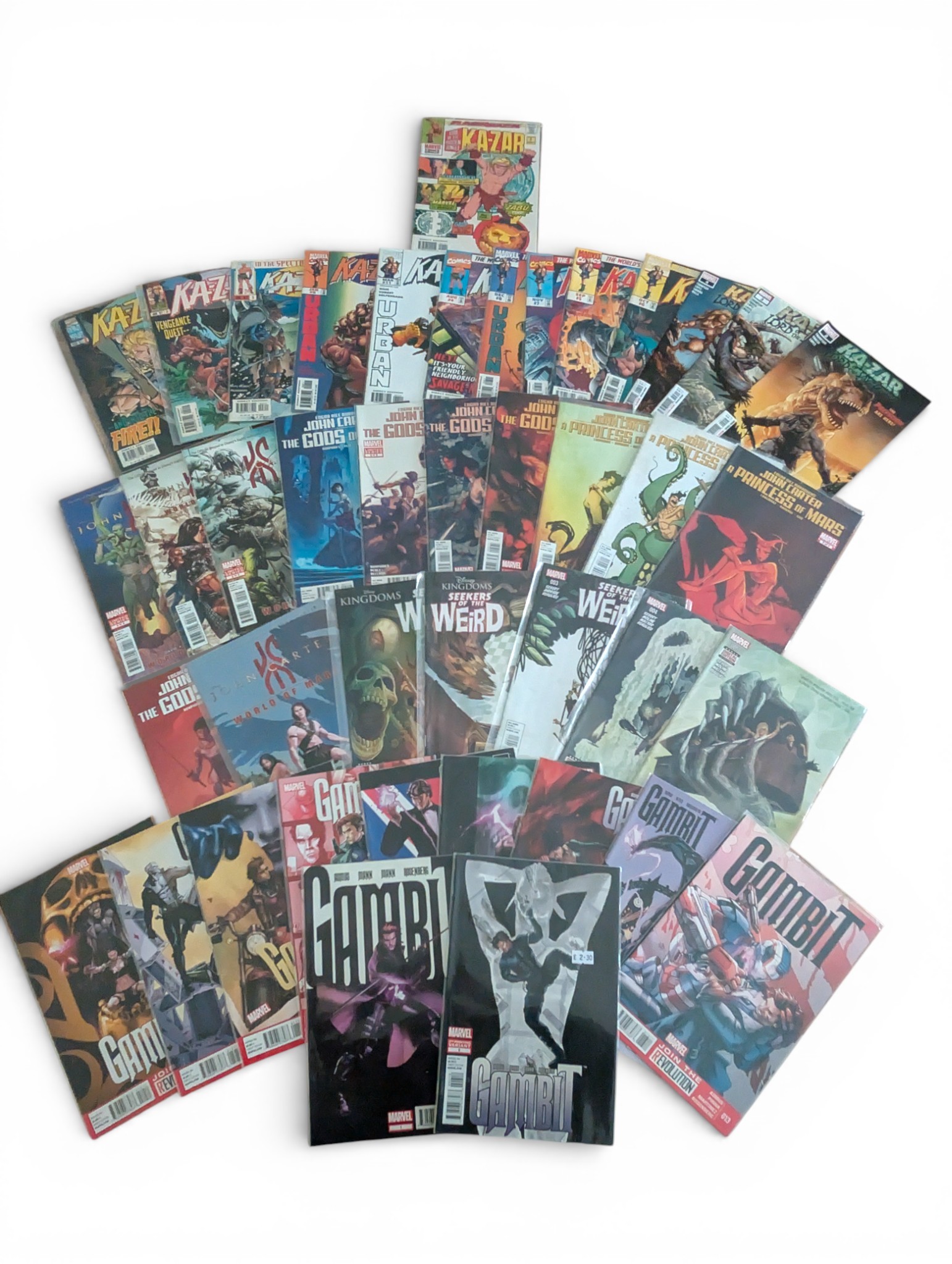 A mixed group of modern Marvel comics including multiple issues of Ka-Zar, John Carter: The Gods of Mars, A Princess of Mars, Weirdworld and Gambit. Mostly standard editions. Generally clean condition