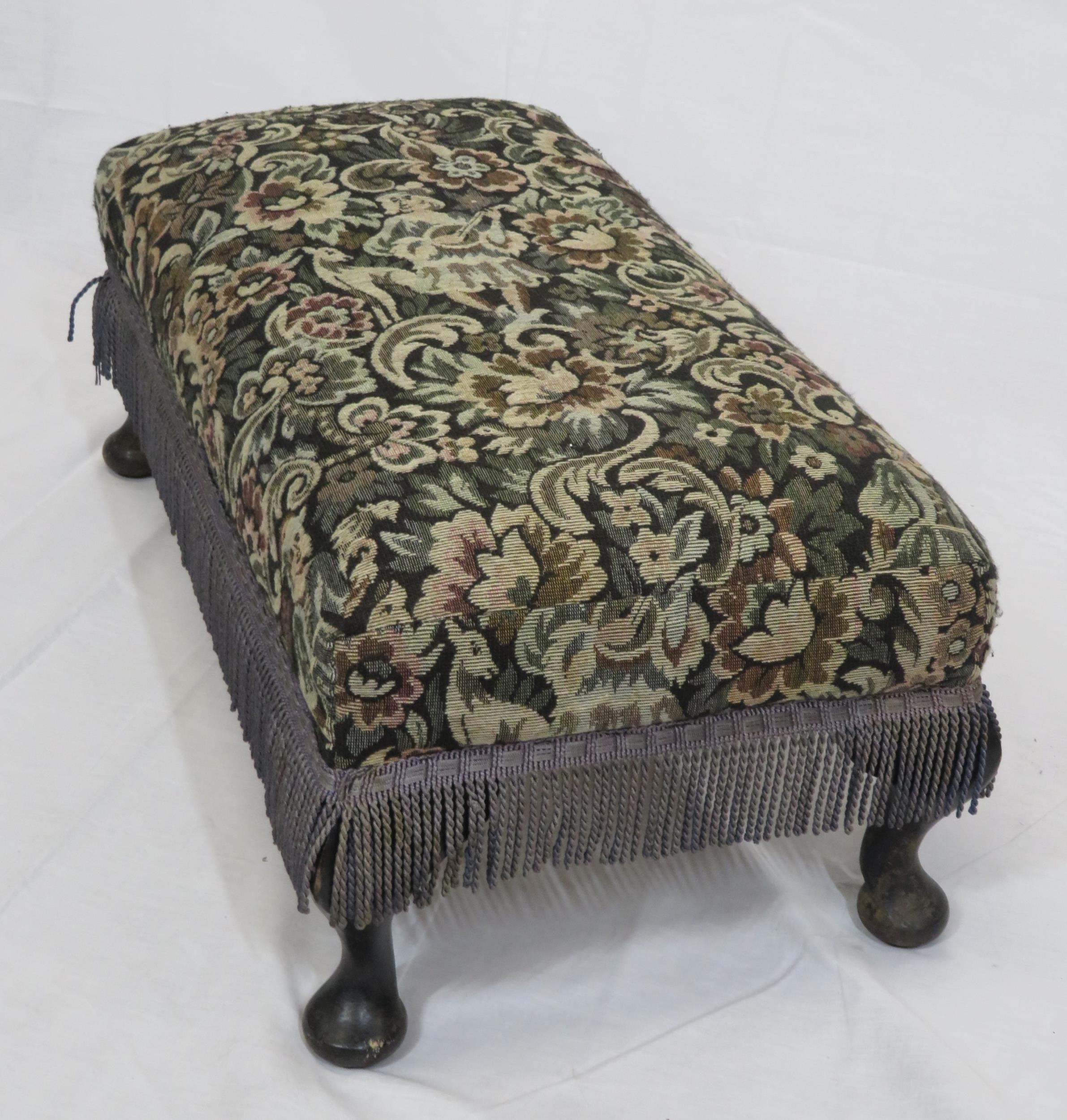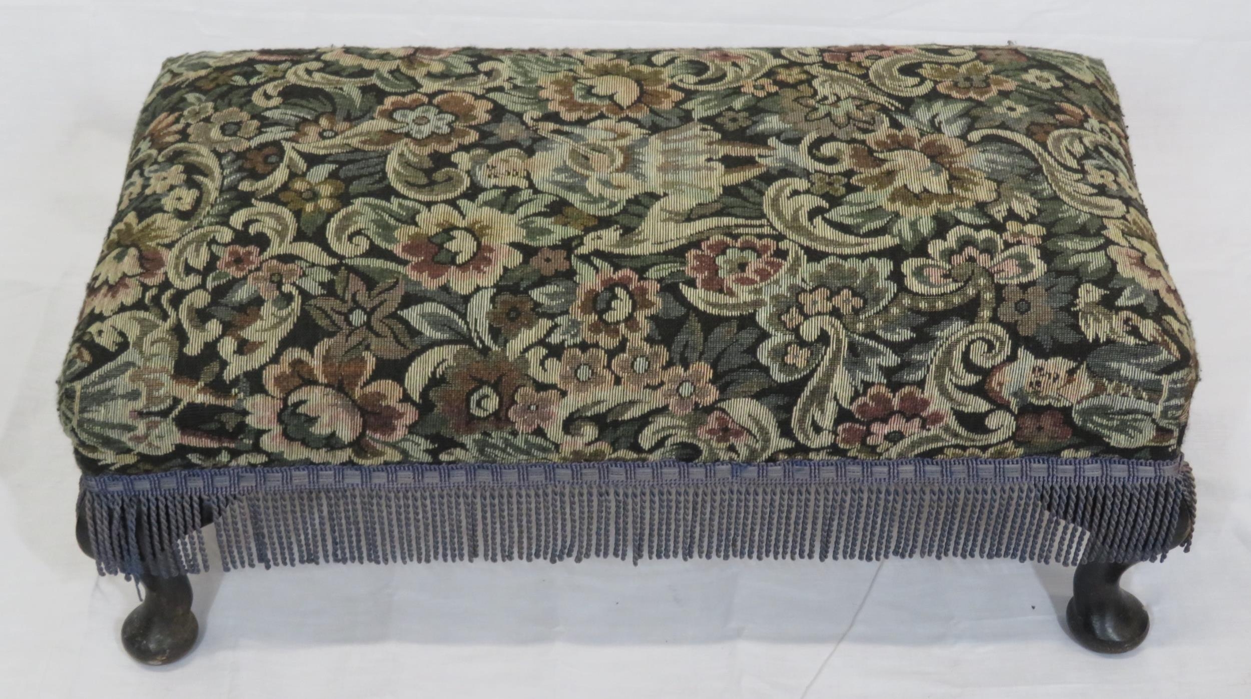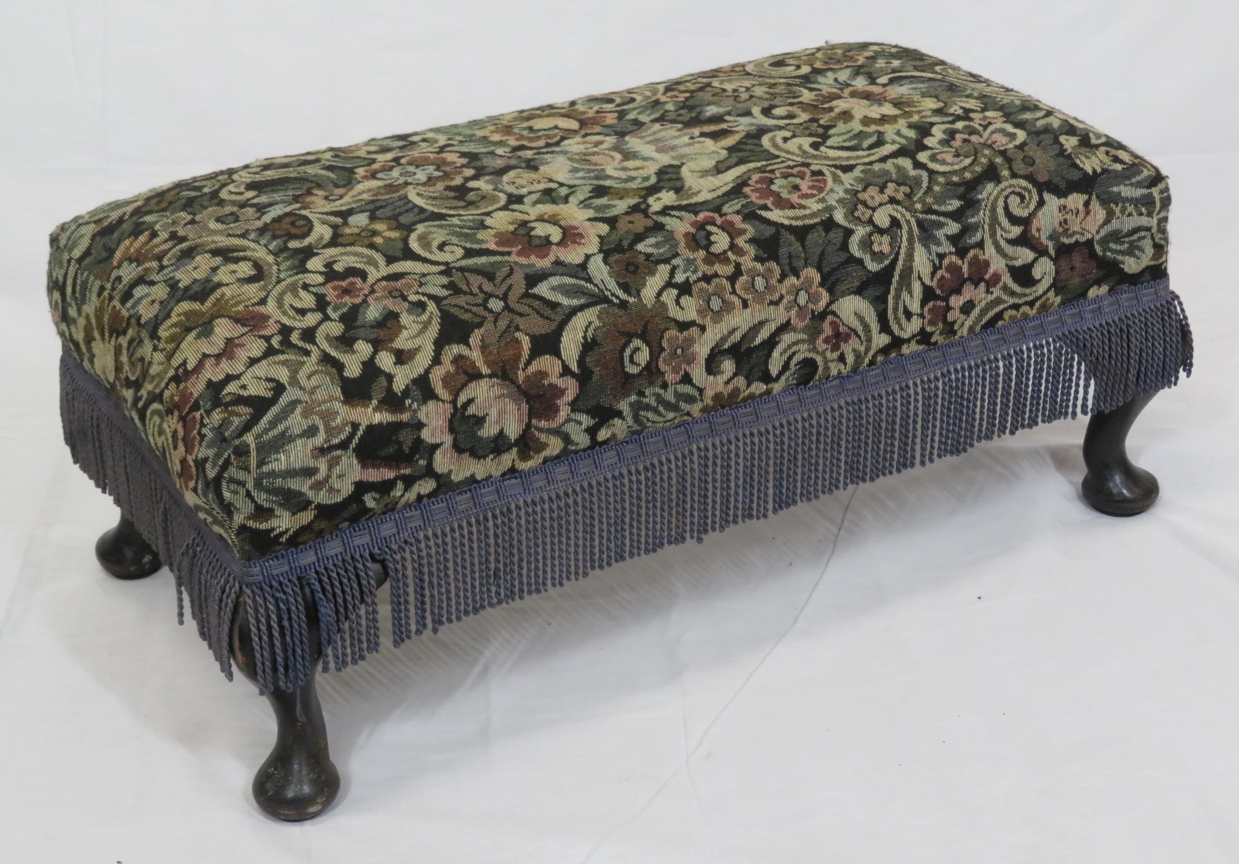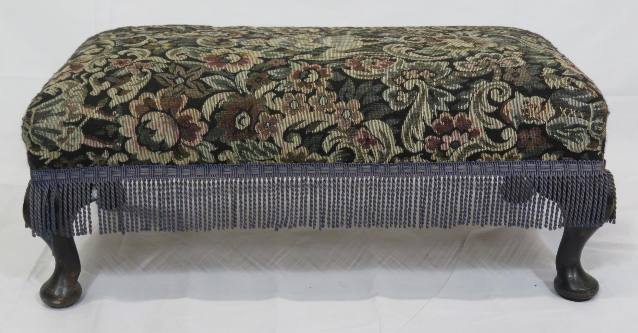Victorian style oblong footstool with foliate upholstery & cabriole legs