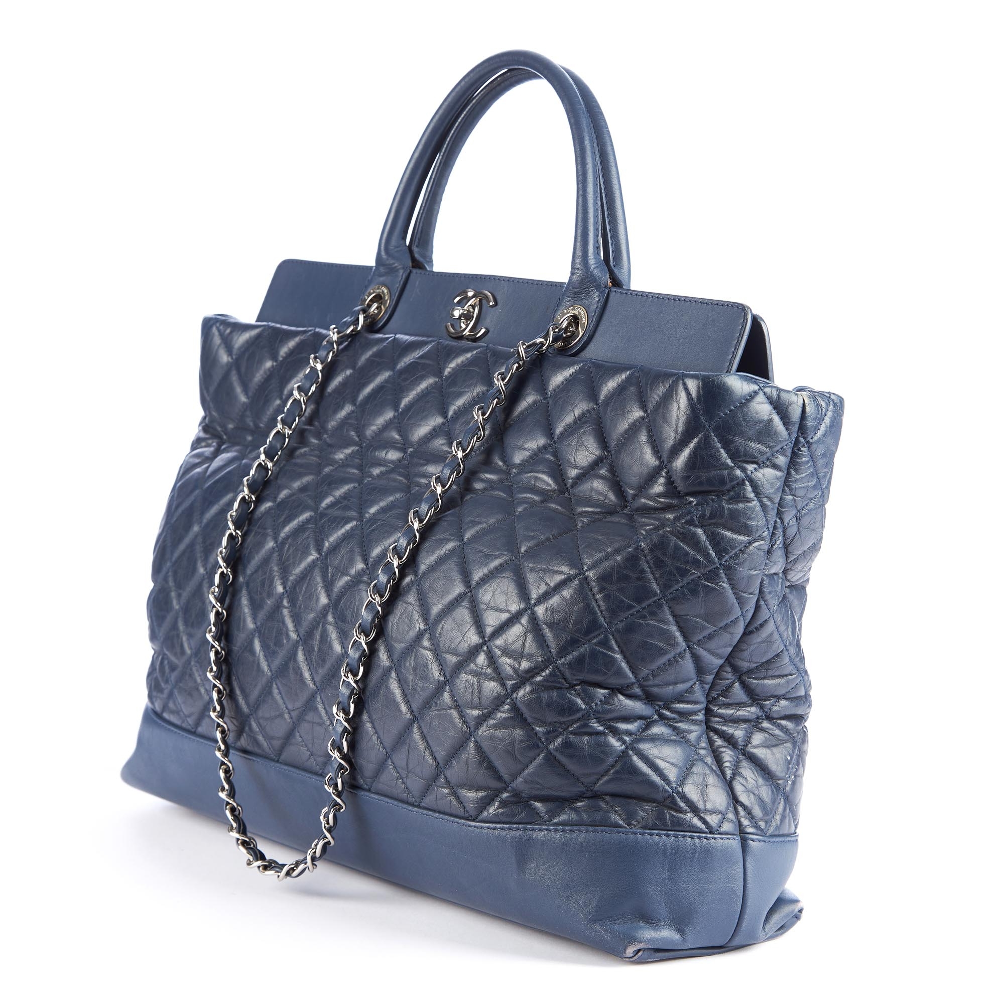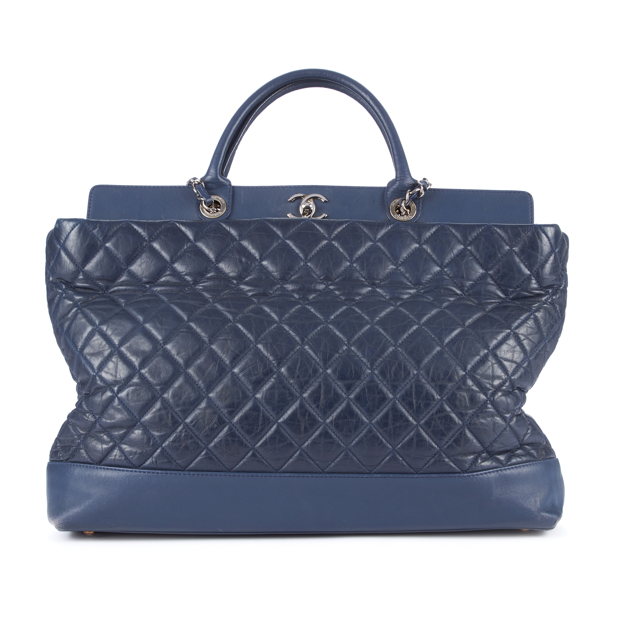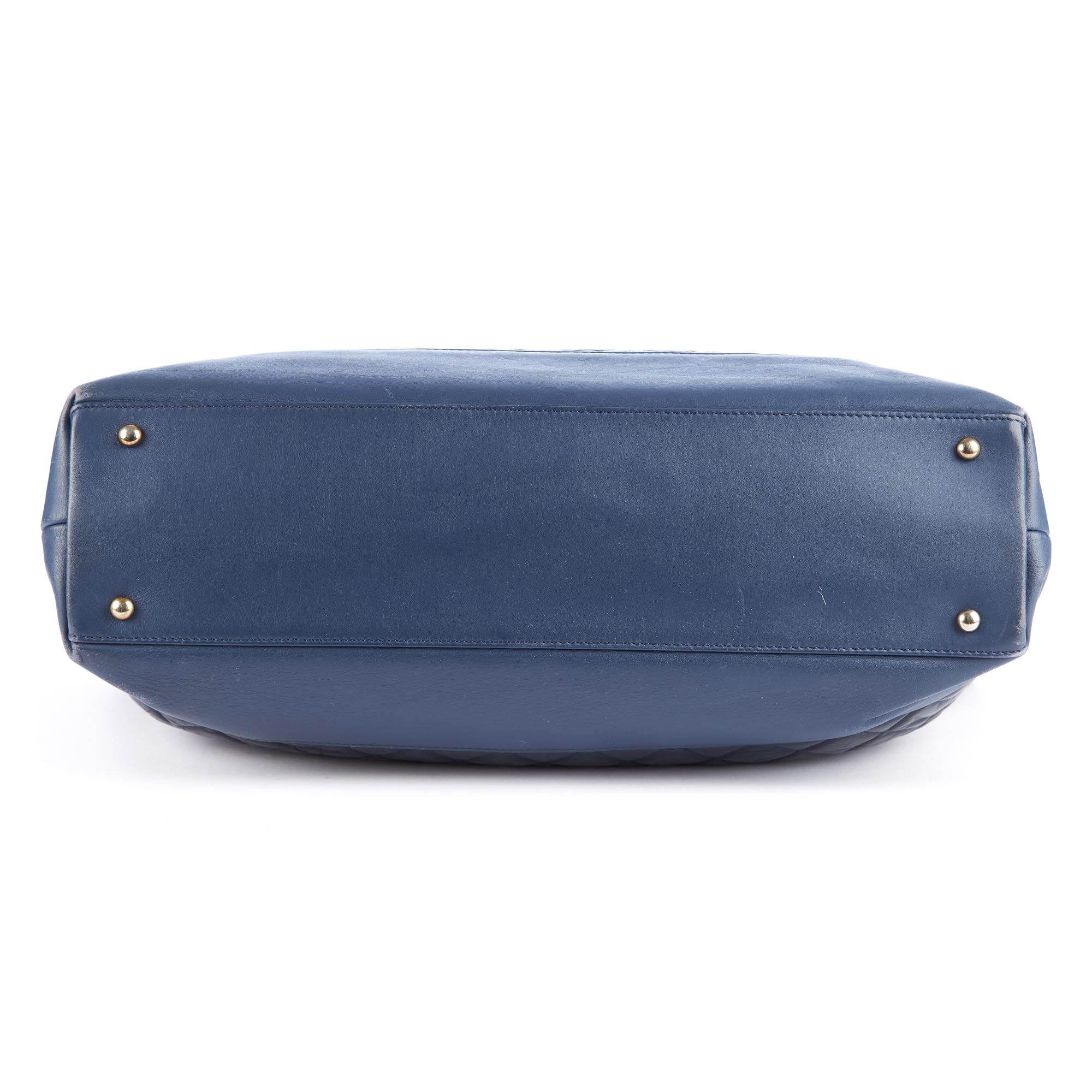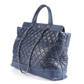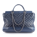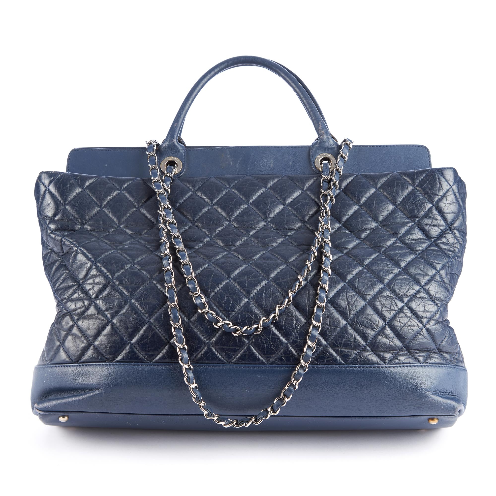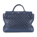 Chanel, a Portobello handbag, designed with a quilted blue leather exterior with smooth leather trim, featuring polished silver-time hardware, two exterior slip pockets, rolled leather top handles, dual interwoven chain and leather shoulder straps and maker's signature CC turn-lock fastening, measuring 11 by 31 by 41cm