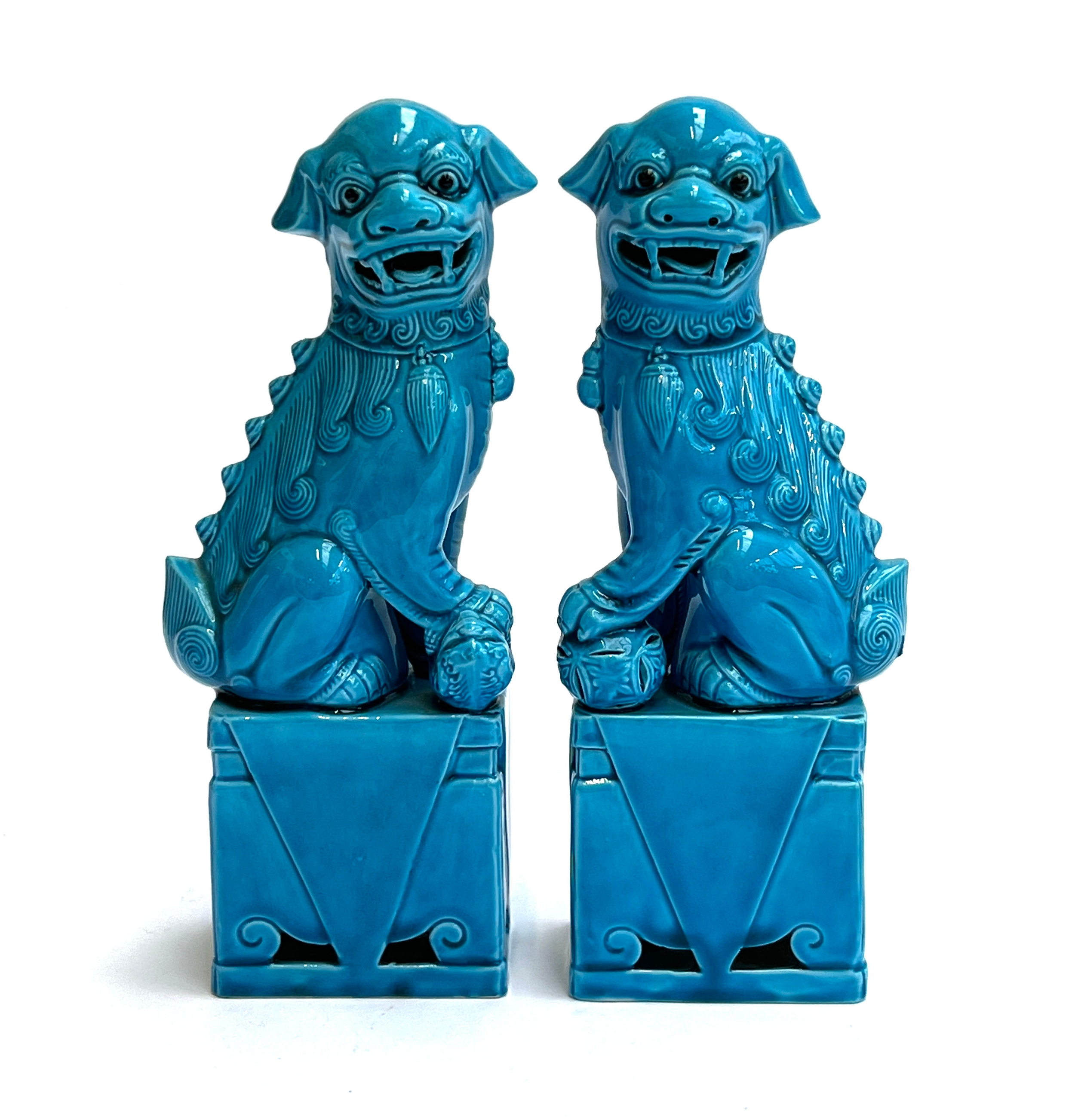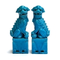 A pair of 20th century Chinese turquoise glazed foo dogs, 24cmH