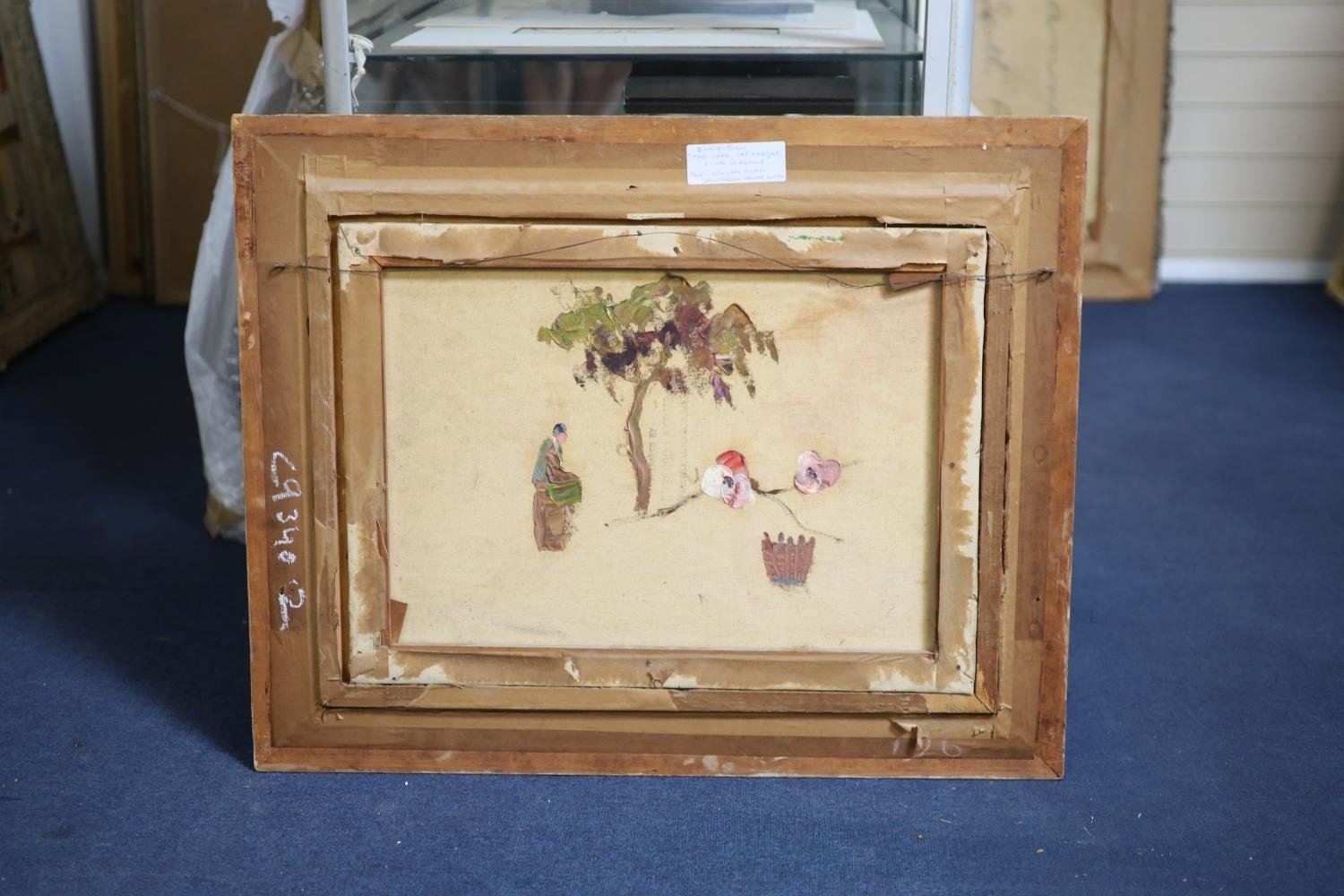 Oil on original canvas in honest untouched condition, would benefit from a clean, a number of fine craquelure lines running through the paint notably the centre of the sky, not signed, housed in the original overpainted frame with a small sketch of a flower seller verso, handwritten label given Provenance as William Rivett, Gainsborough Gallery, London.