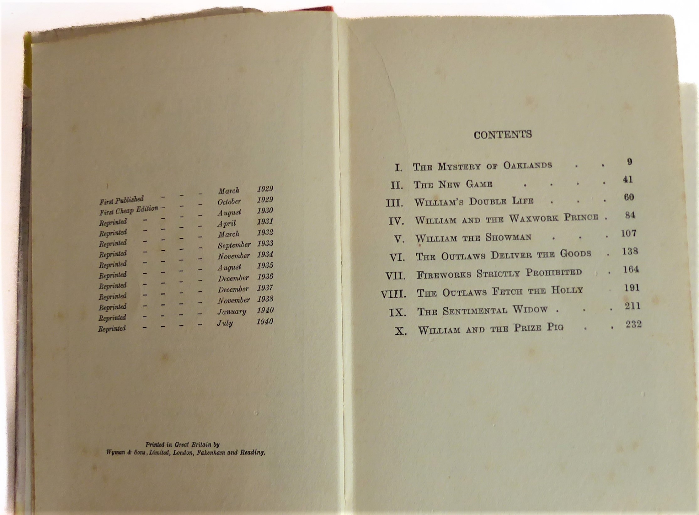 five by Richmal Crompton - 'Willliam', 1940; 'More Willliam' (1940); 'William - The Showman', 1940; 'Sweet William', 1941 and 'Just William (1950) (all published by George Newnes, London);