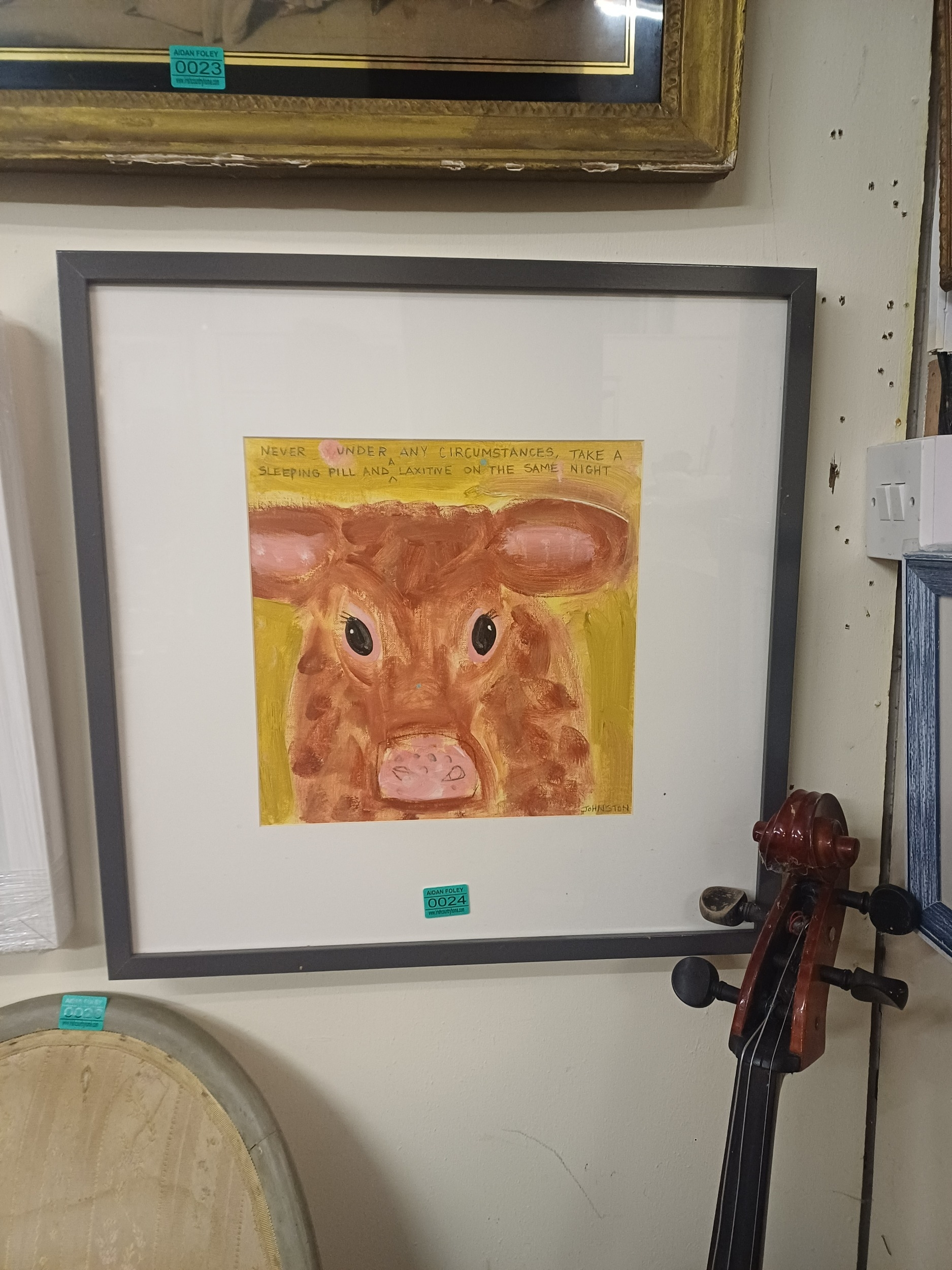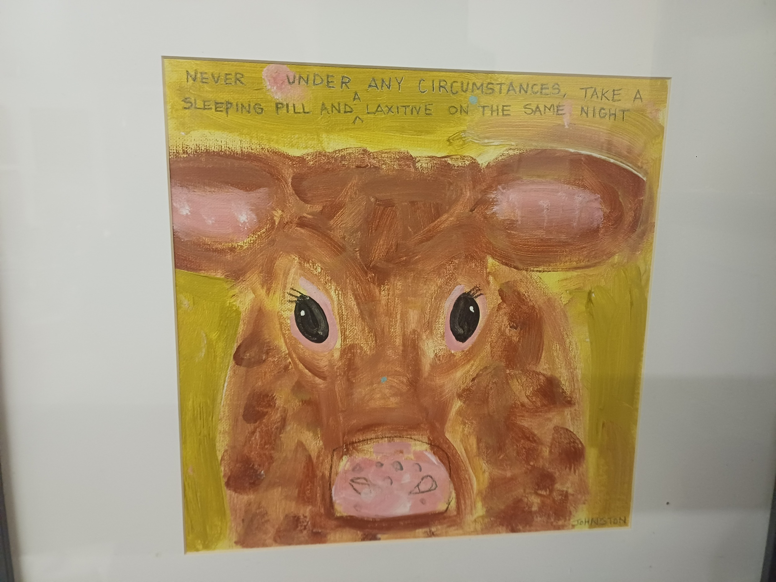 David Johnson "Never Under Any Circumstances Take A Sleeping Pill and Laxative On The Same Night" Signed Oil (53cm x 53cm)