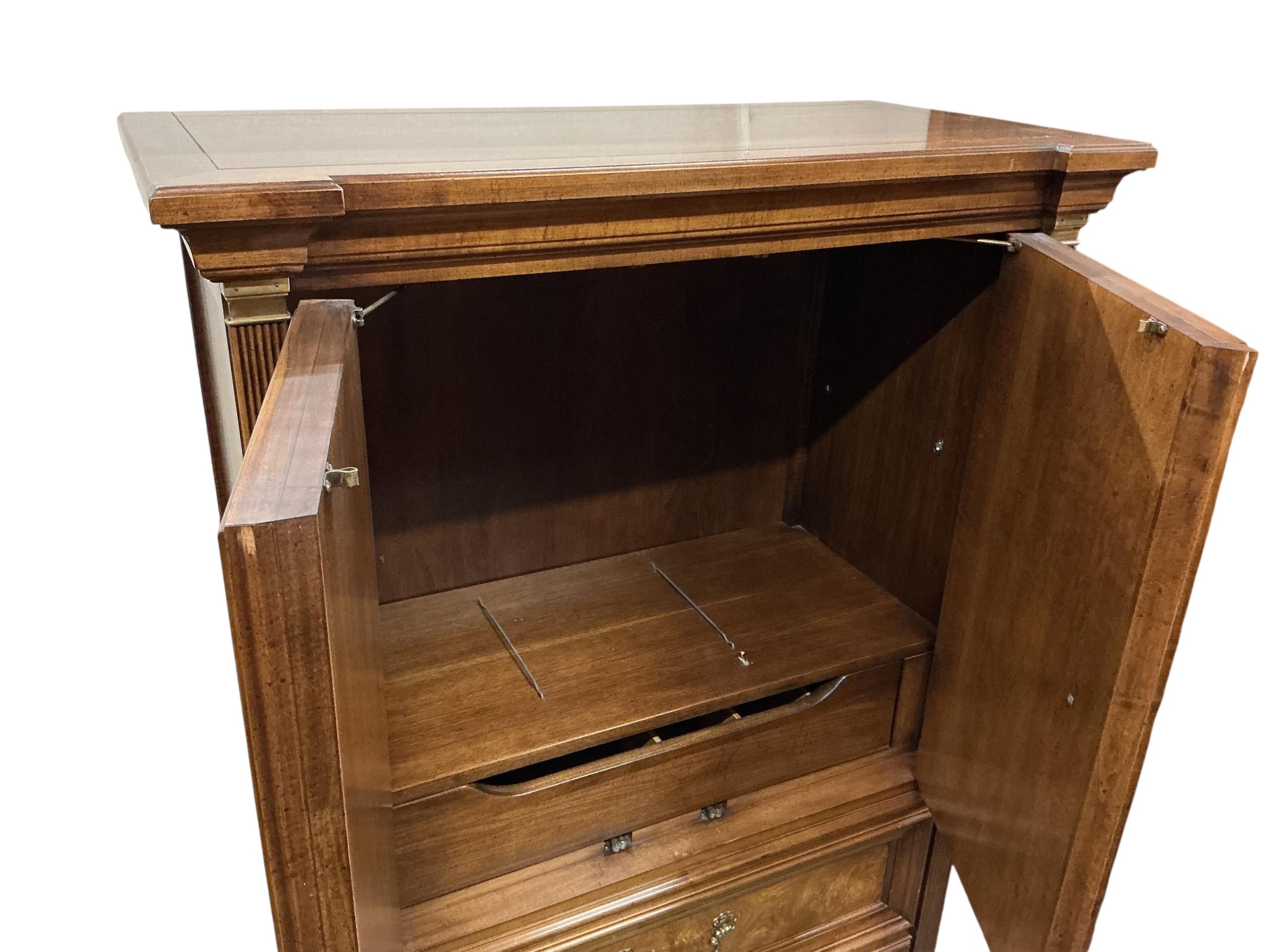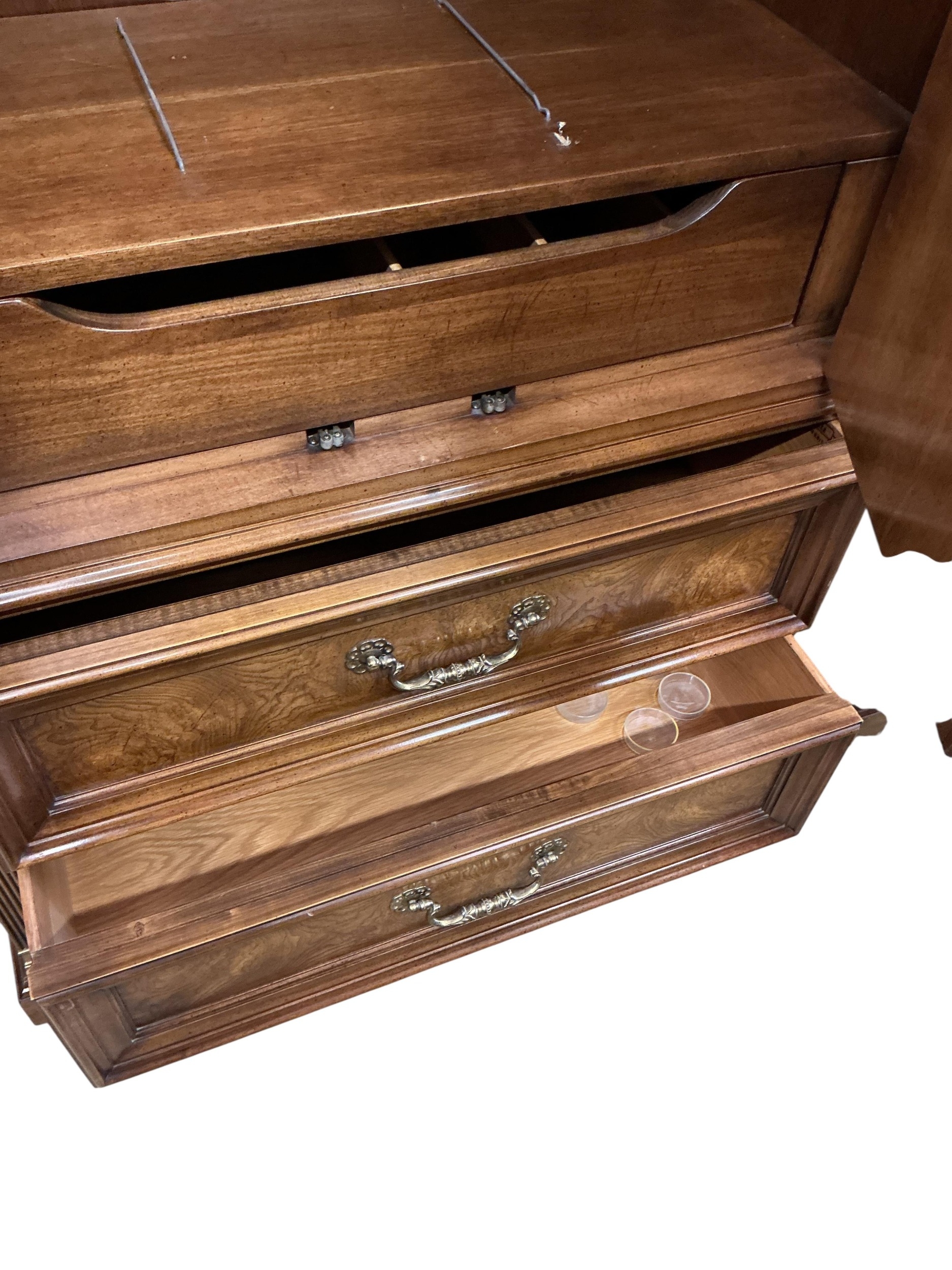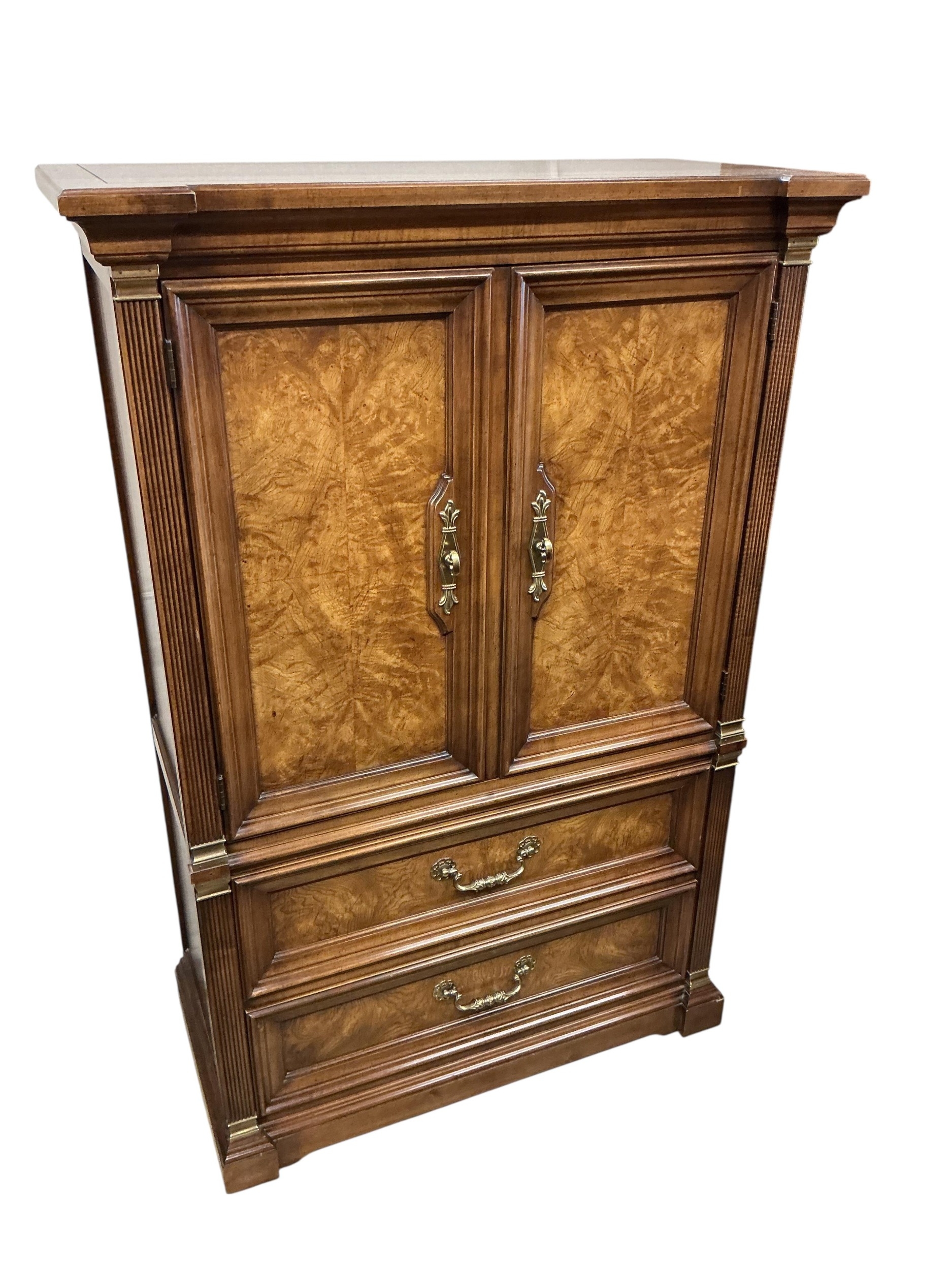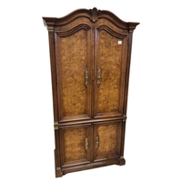 An American reproduction cedar and burr wood press cupboard, width 101cm, depth 50cm, height 154cm