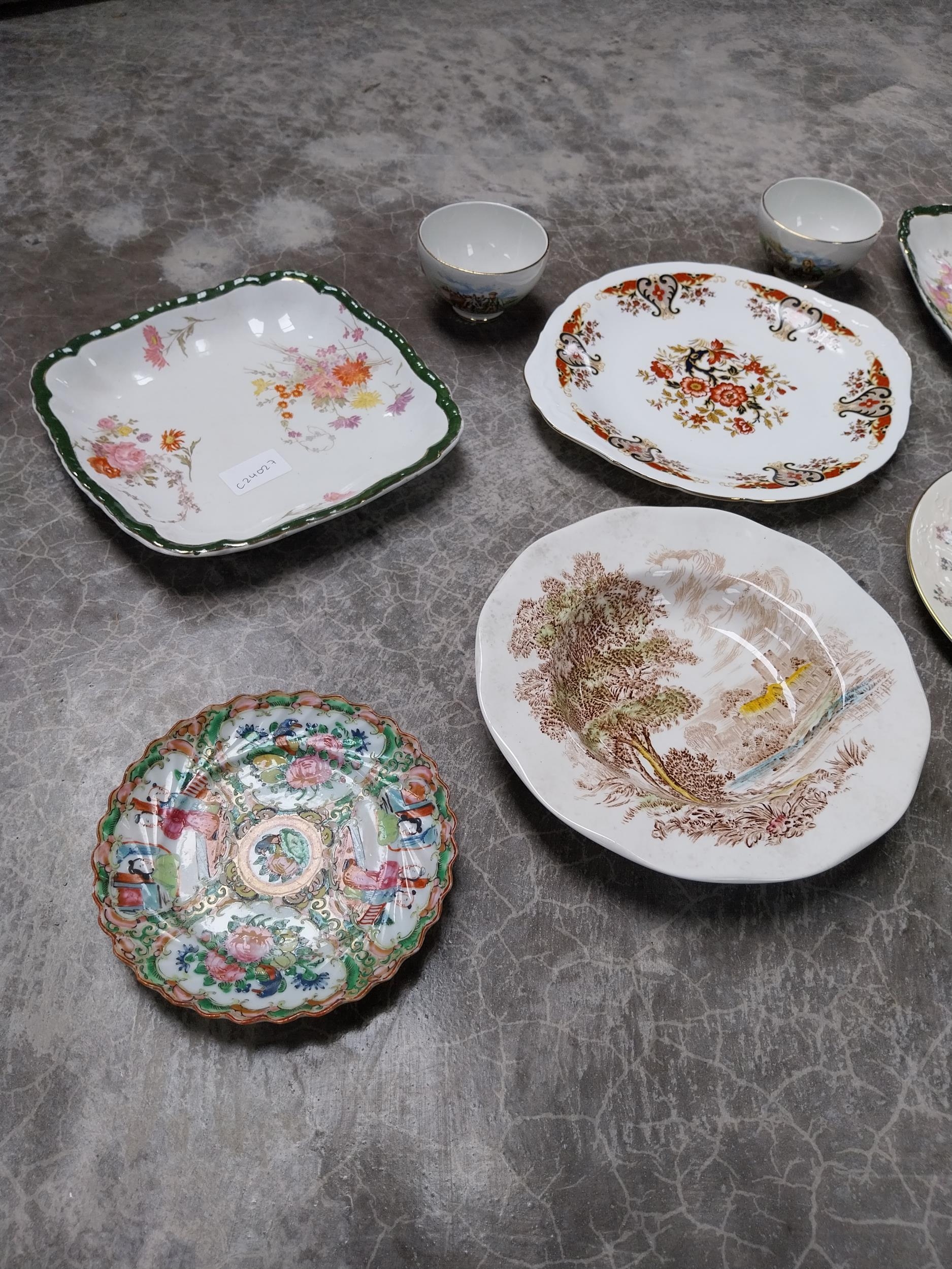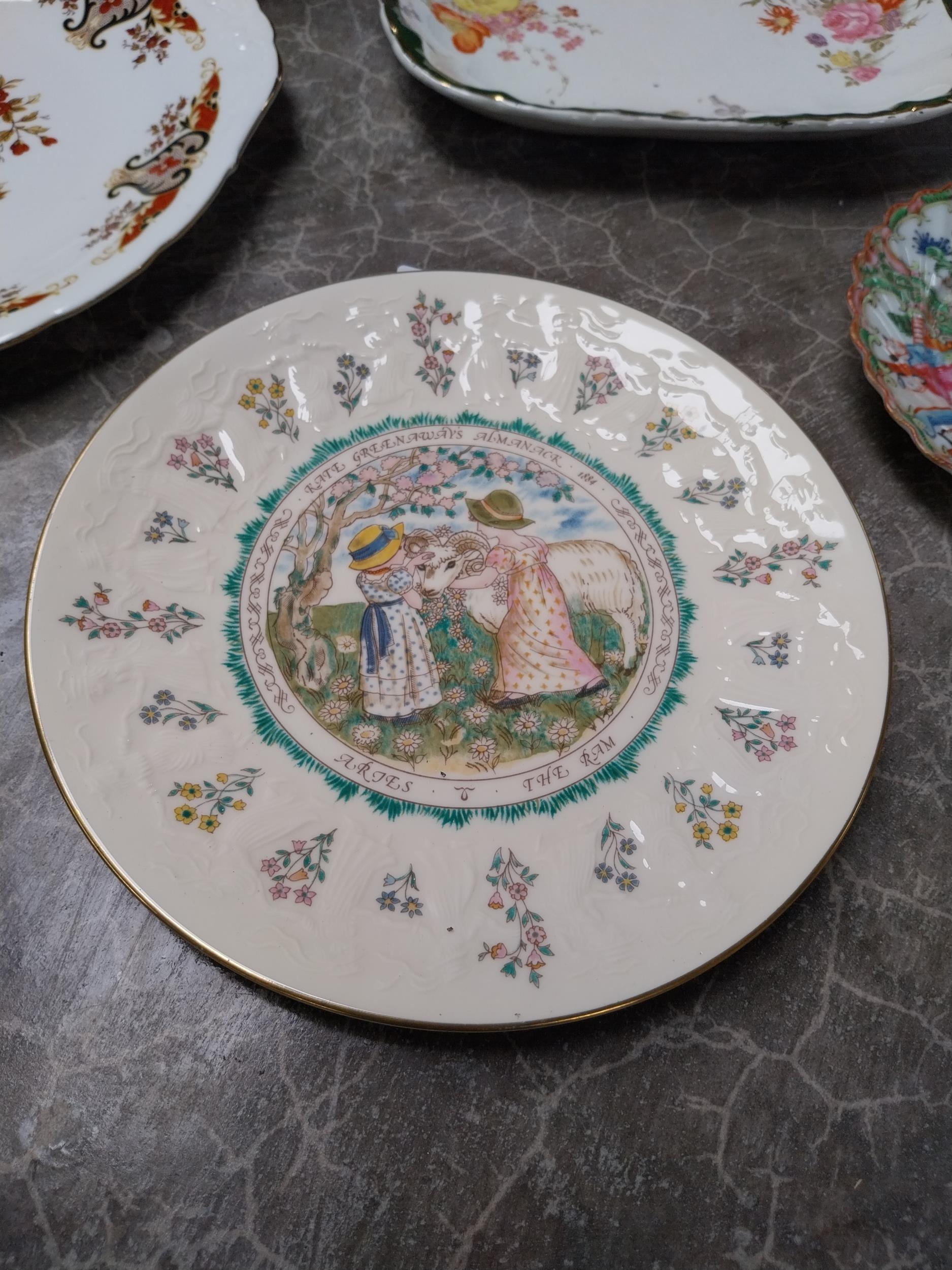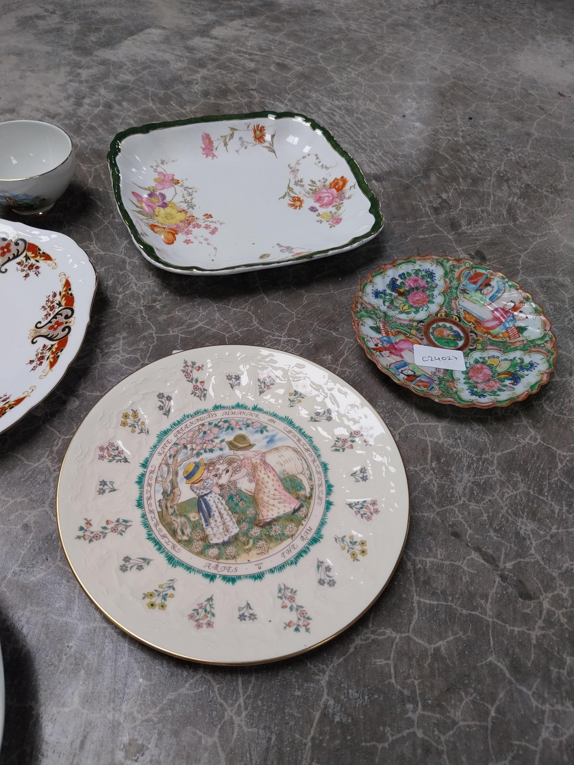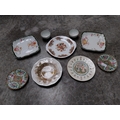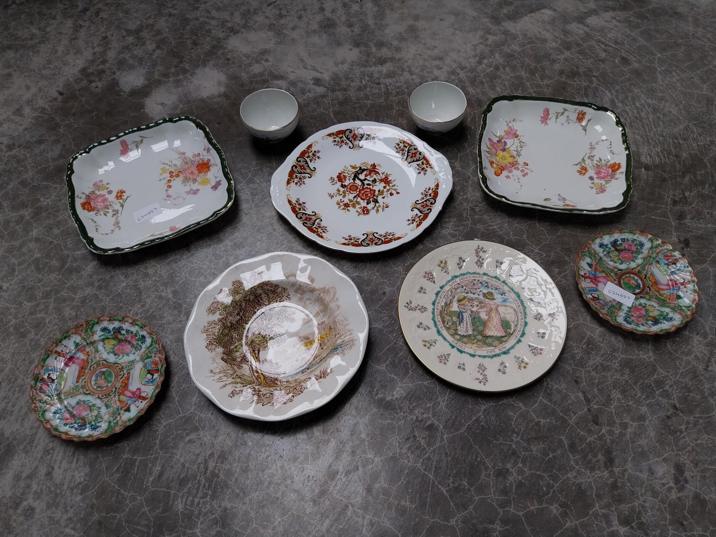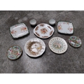 Seven ceramic plates and two small Arklow pottery bowls.