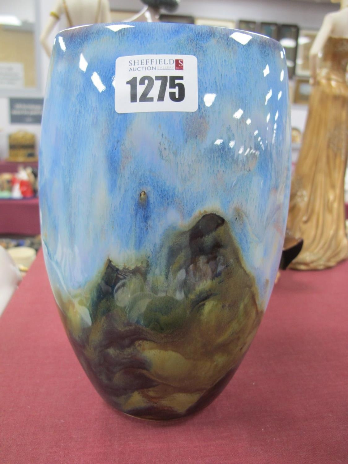 An Anita Harris Stoneware Trial Living Glaze Oval Vase, signed by Peter Harris, 19cm high.
