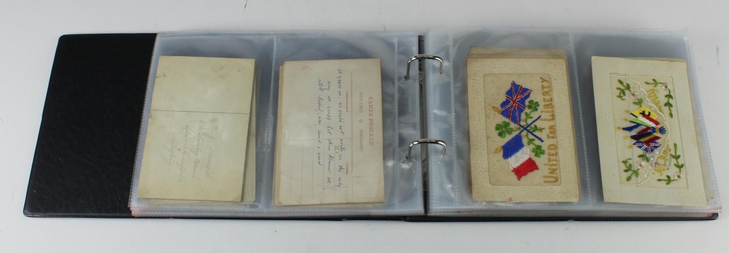 Silk postcards - WW1 and sentimental noted - in a small album (approx 58)