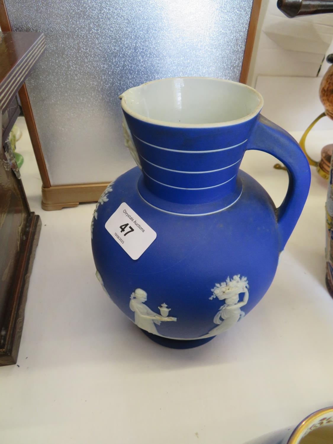 Wedgwood dark blue Jasperware jug - ht. 8 ins