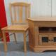Oak Corner Television Stand with pair glazed doors, open hutch & Pair Beech Side Chairs with wooden seats & strap backs (3)