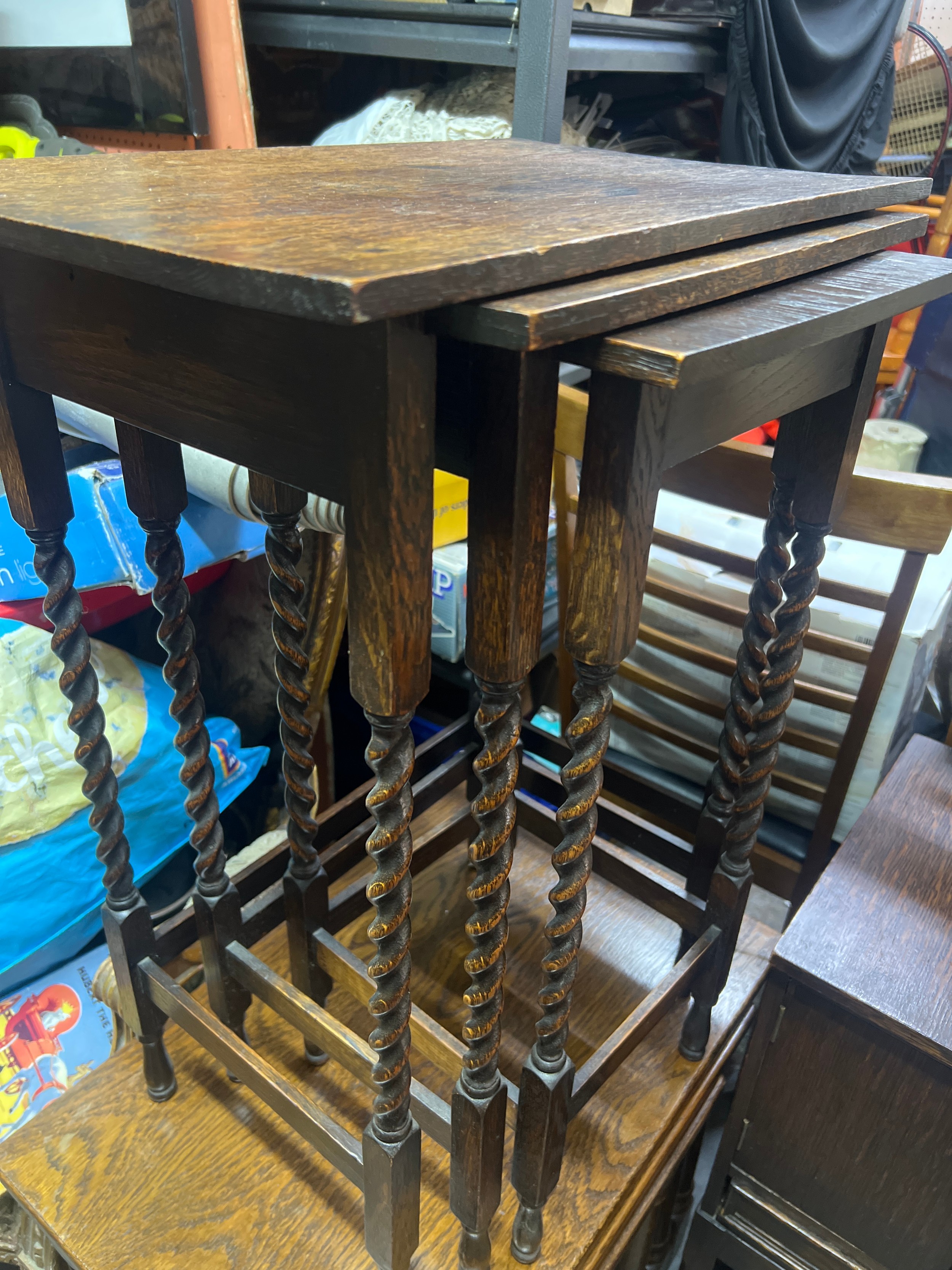 antique oak barley twist nest of tables