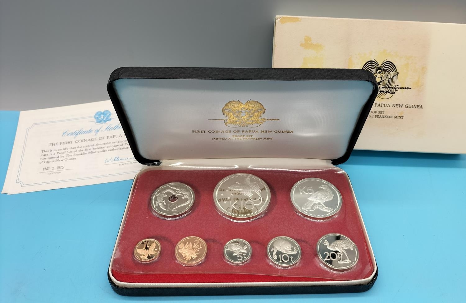 1975 Low Mintage The First Coinage of Papua New Guinea with Paperwork. K10 and K5 are Sterling Silver.