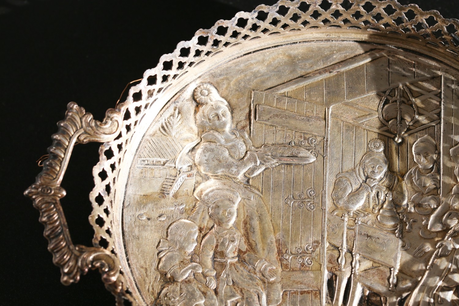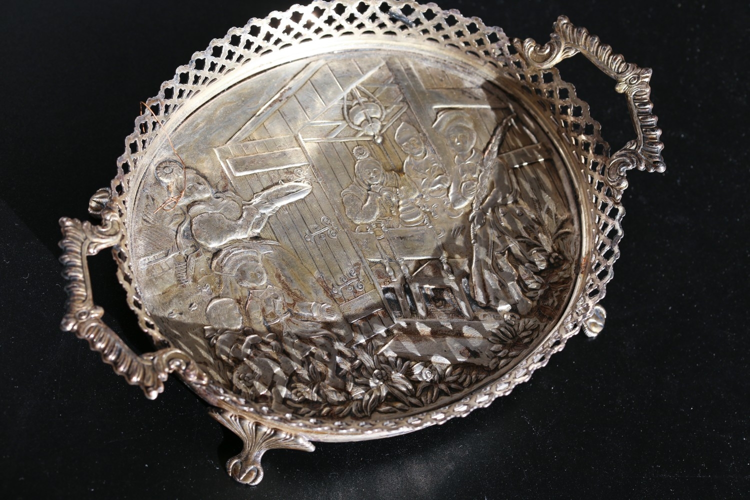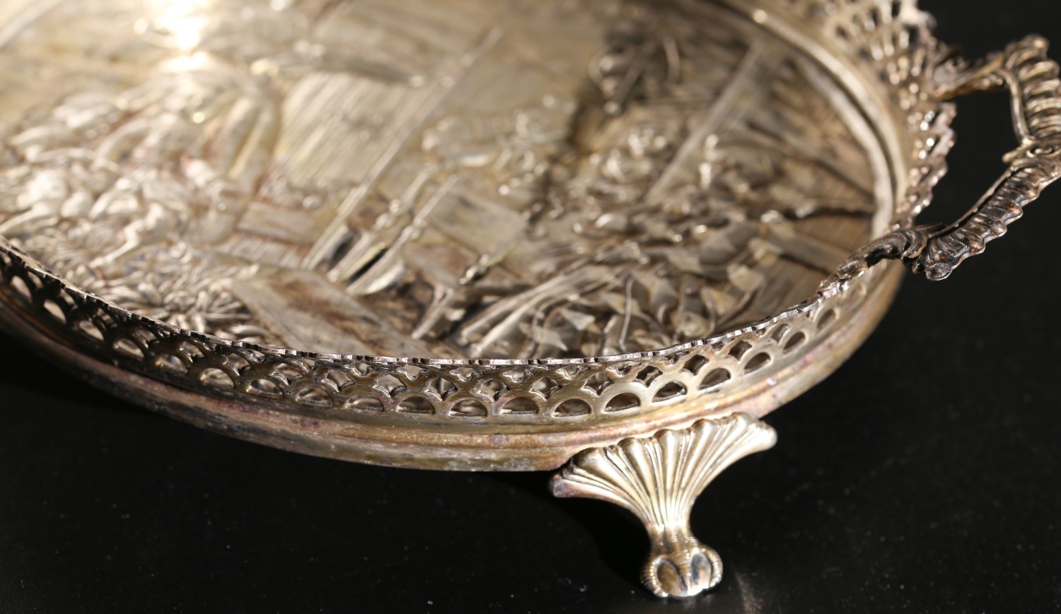Silver Serving Tray Oval Form Side Carry Handles Approximately 10 Inches Wide