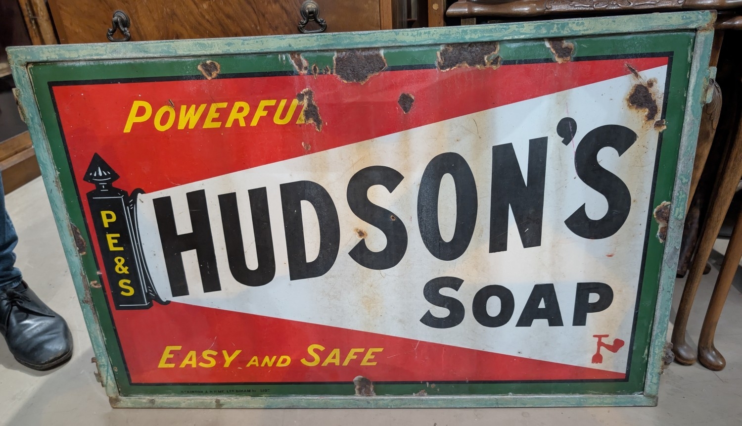 A cast Iron enamel Advertising sign for Hudson's Soap in metal frame 50x80cm