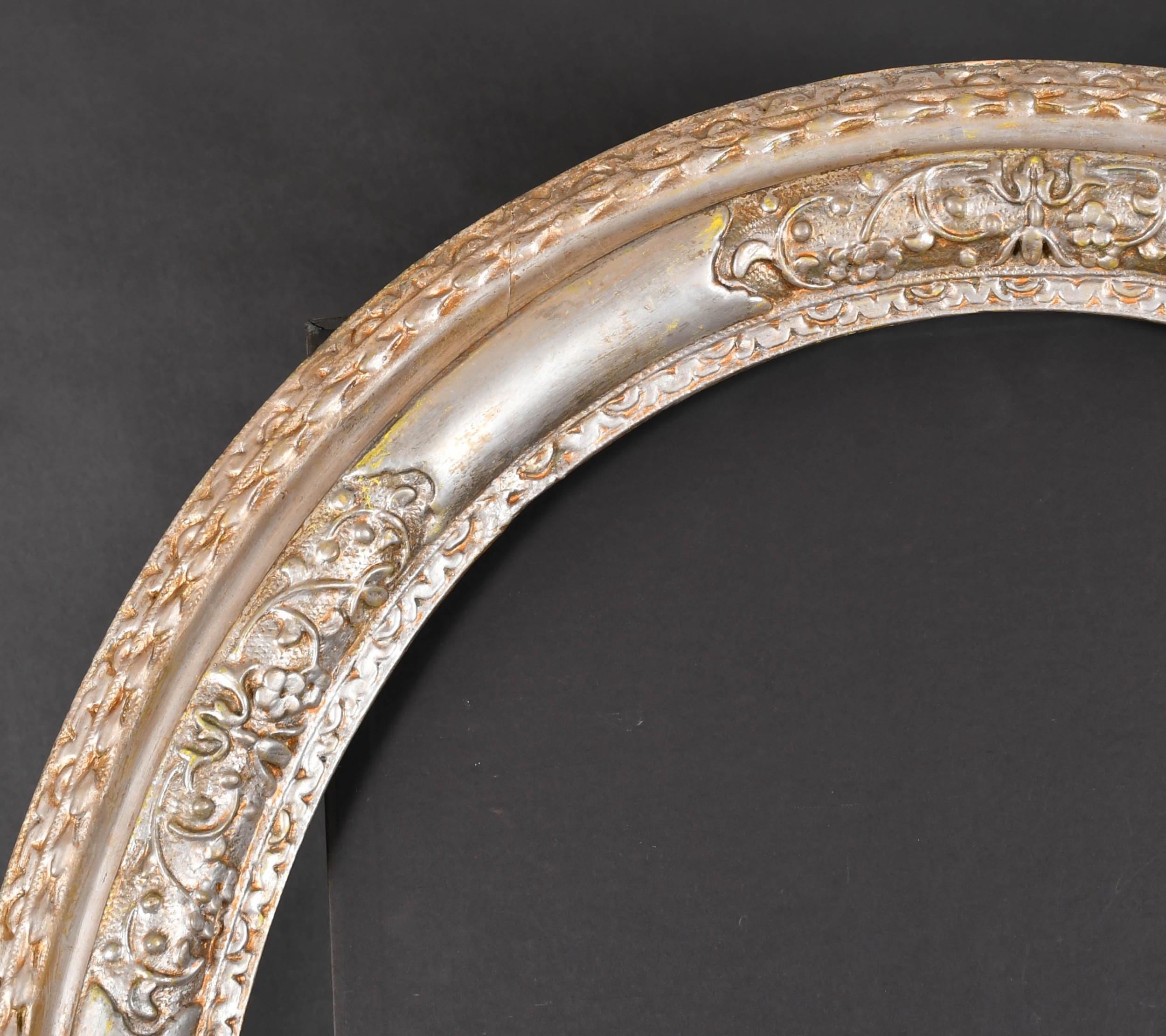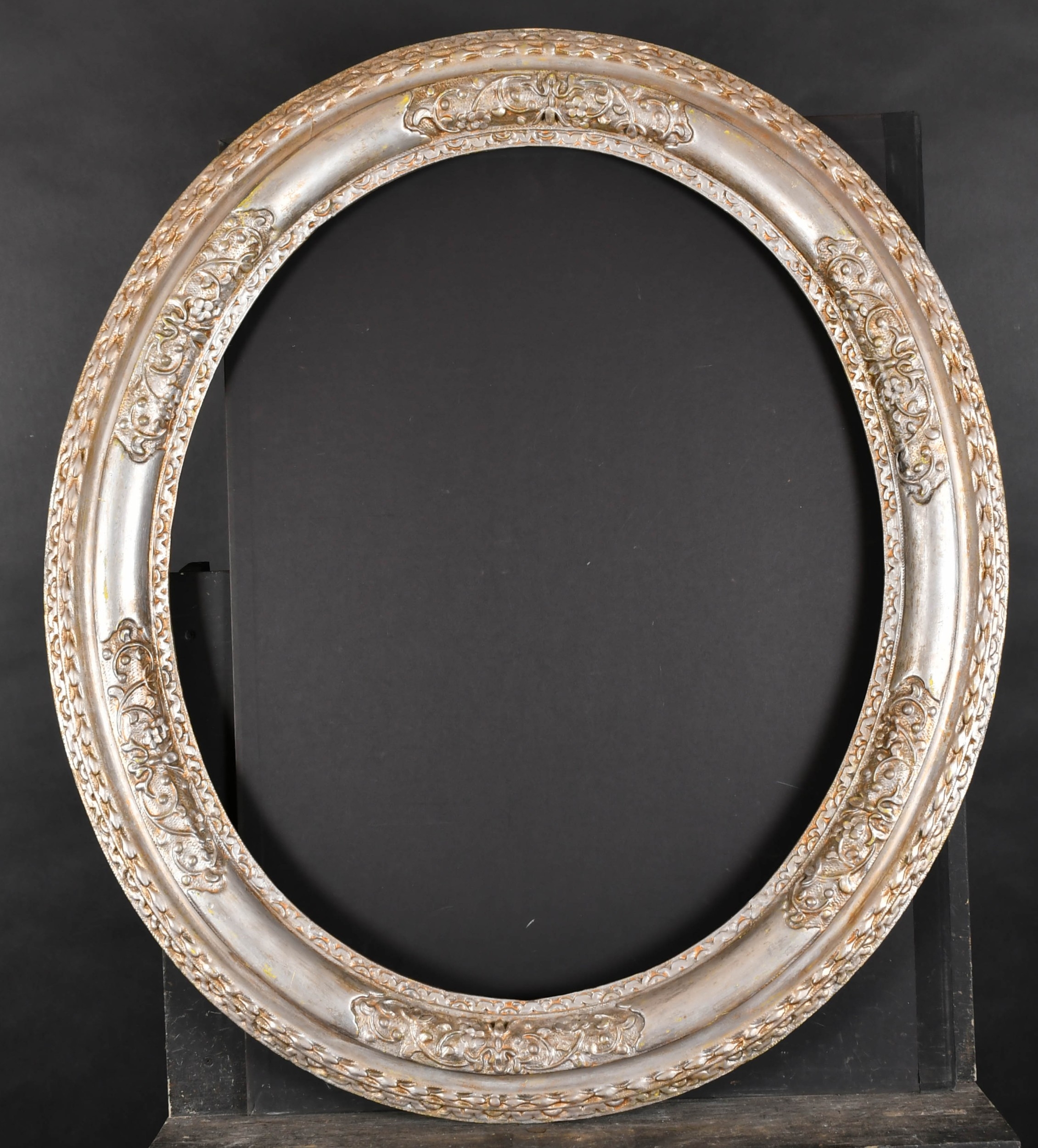 Late 18th Century English School. A Silver and Painted Carved Wood Frame, with Lely panels, Oval rebate 30" x 25" (76.2 x 63.5cm)