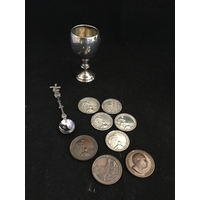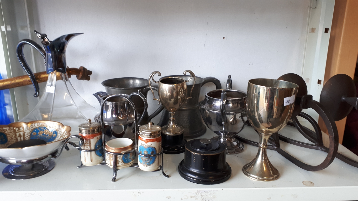 A mixed lot of silver plate, Noritake and EPNS cruet, claret jug, flatware etc -