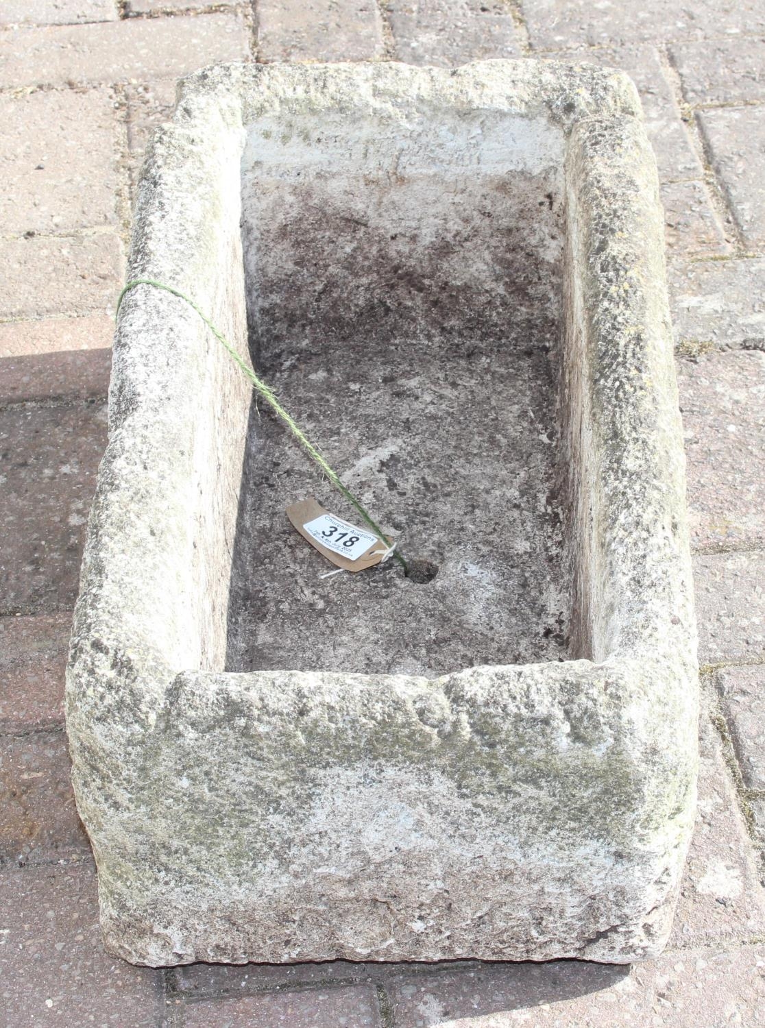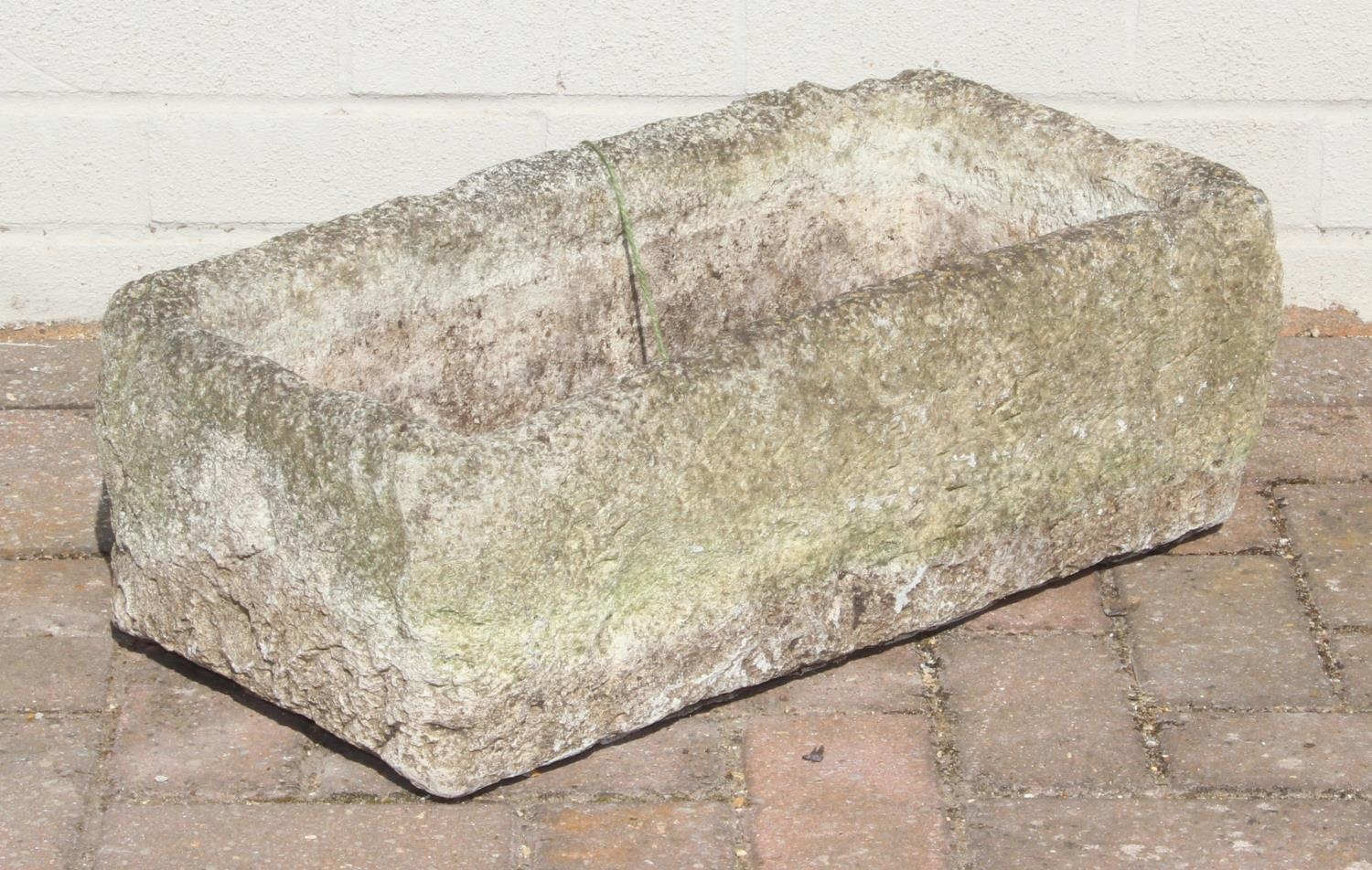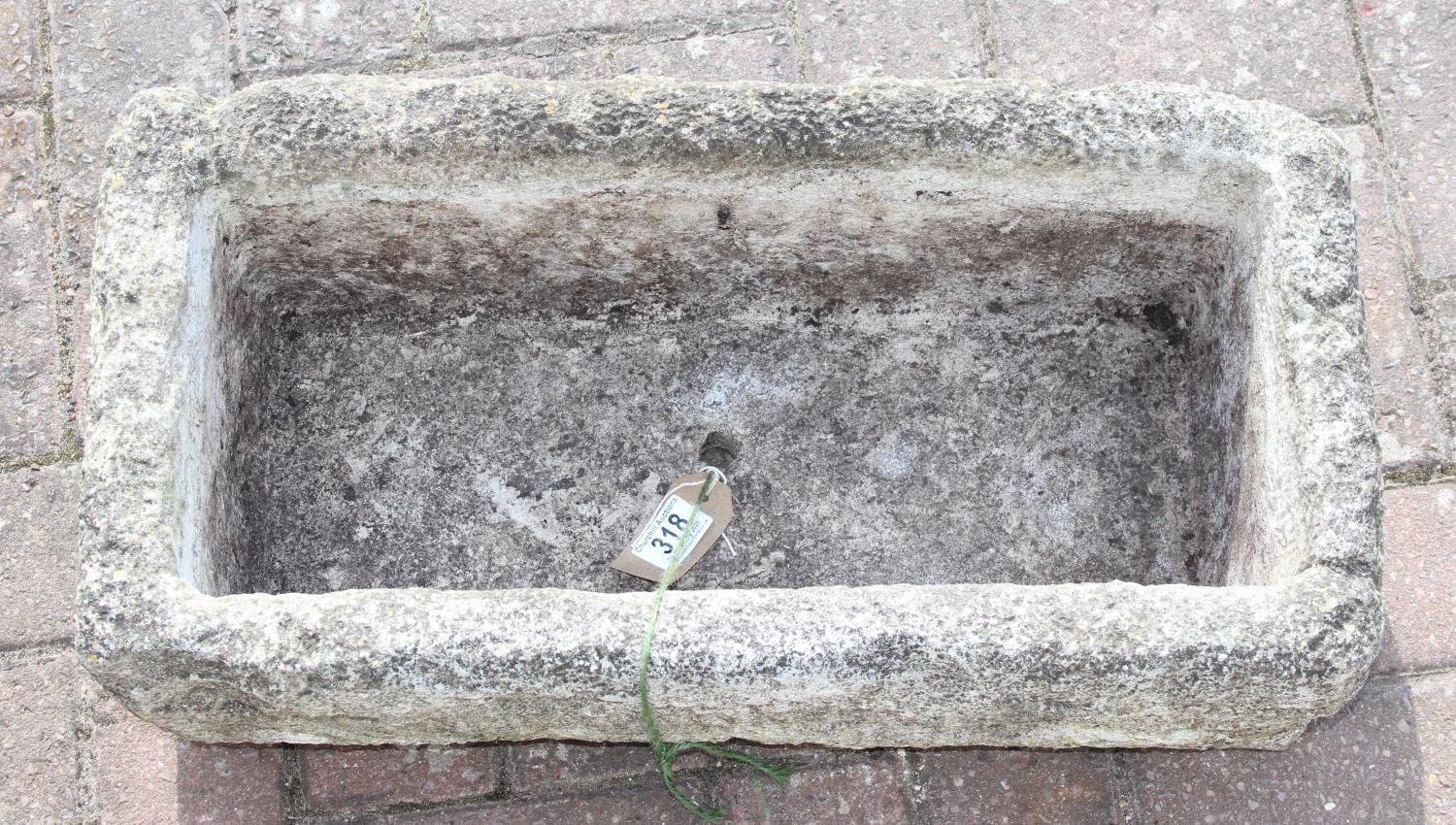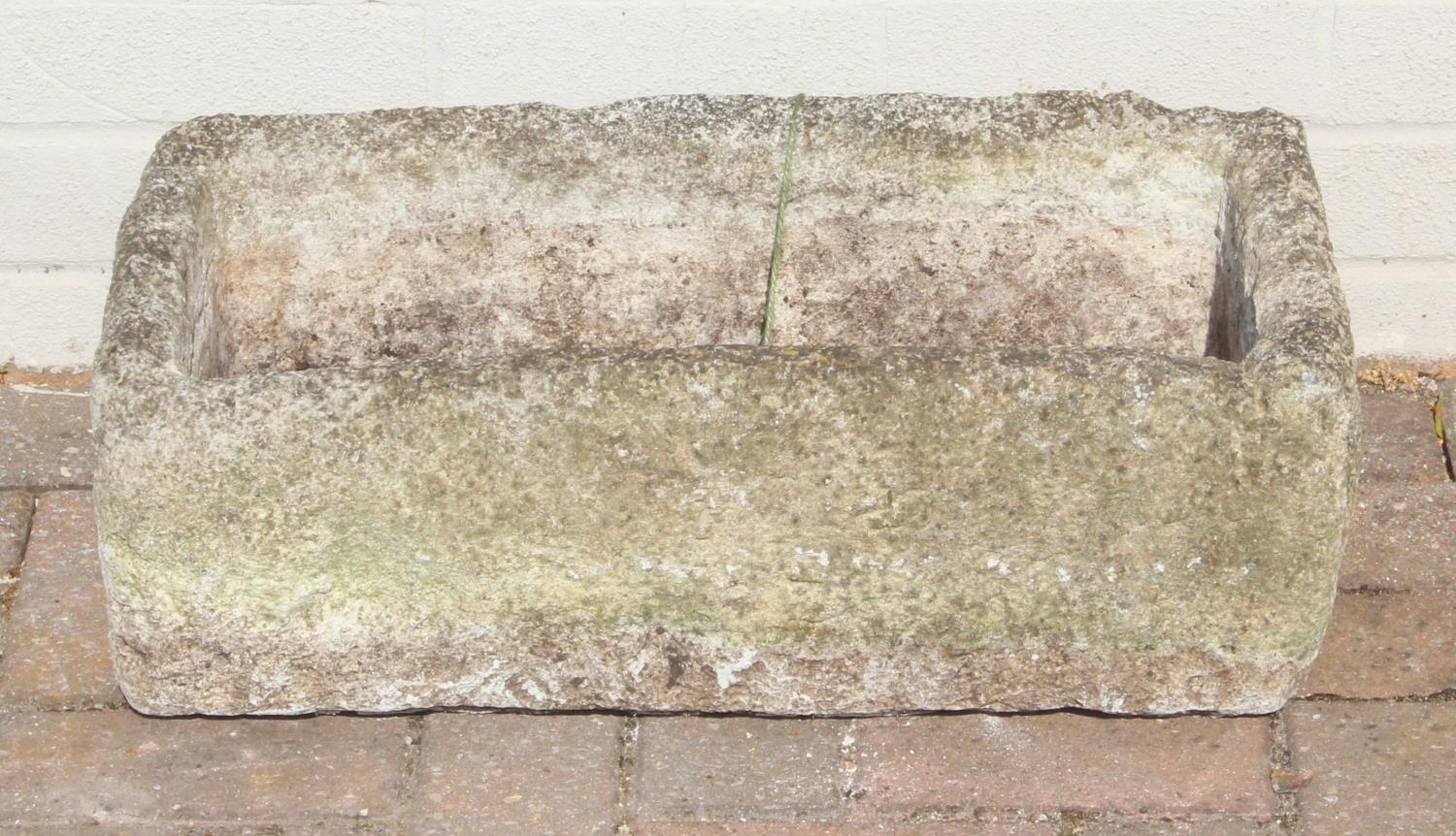 An antique carved stone garden trough or planter, likely 19th century, 57cm x 30cm x 19cm