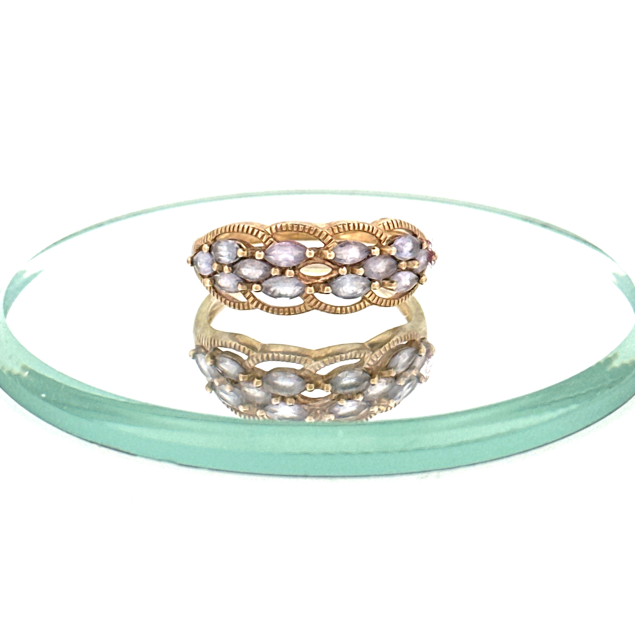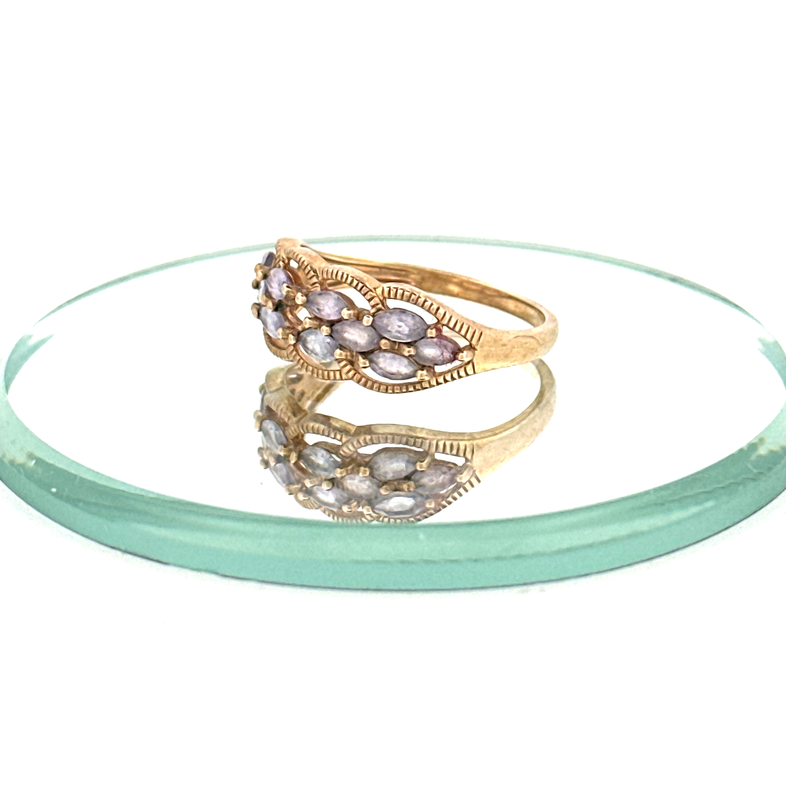 9 Carat Gold Ring set with small Purple Stones, size Q - 2.26g