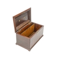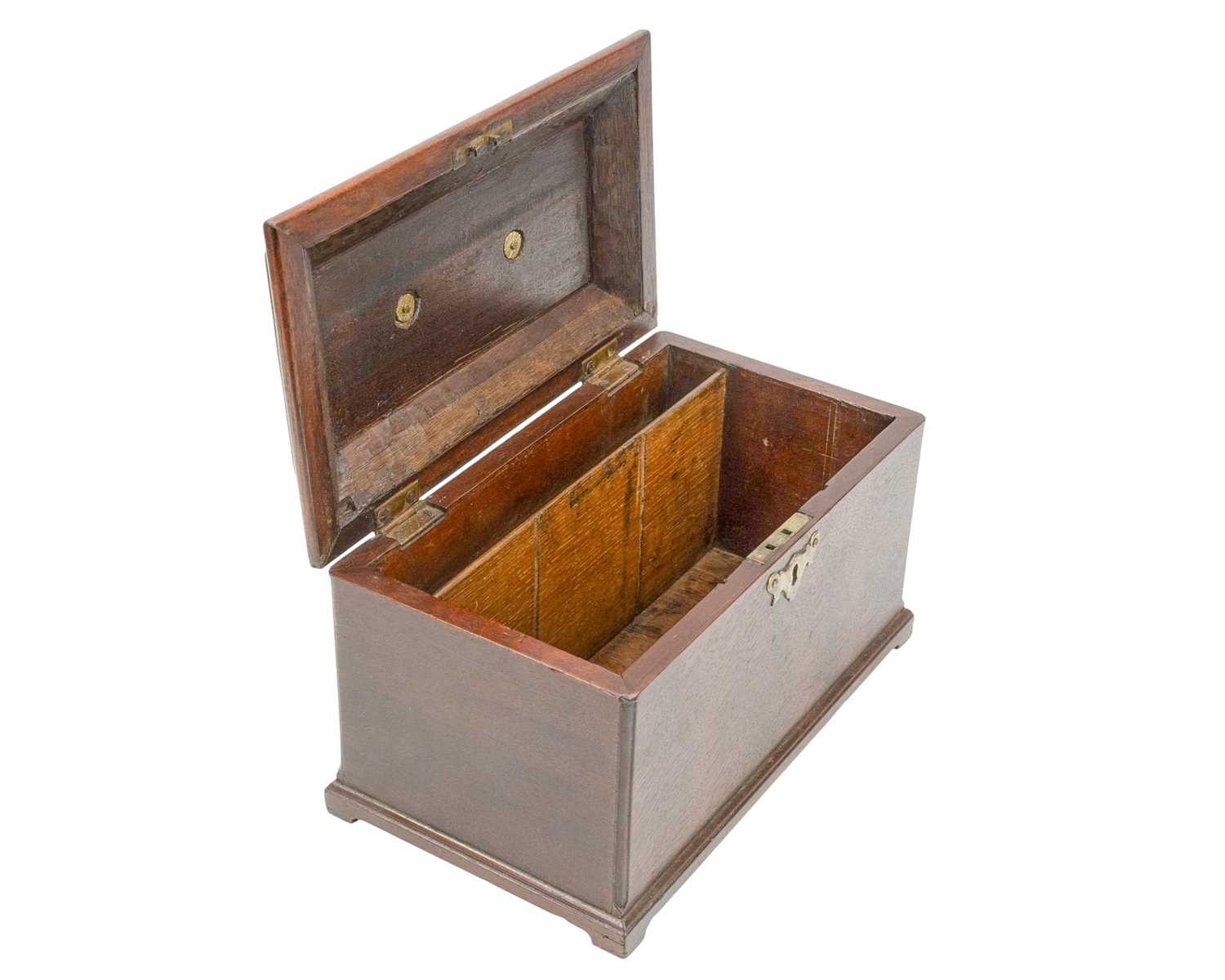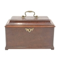 A George III mahogany tea caddy. With a moulded top and raised on bracket feet, the interior originally with two divisions, height 18cm.
