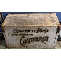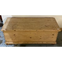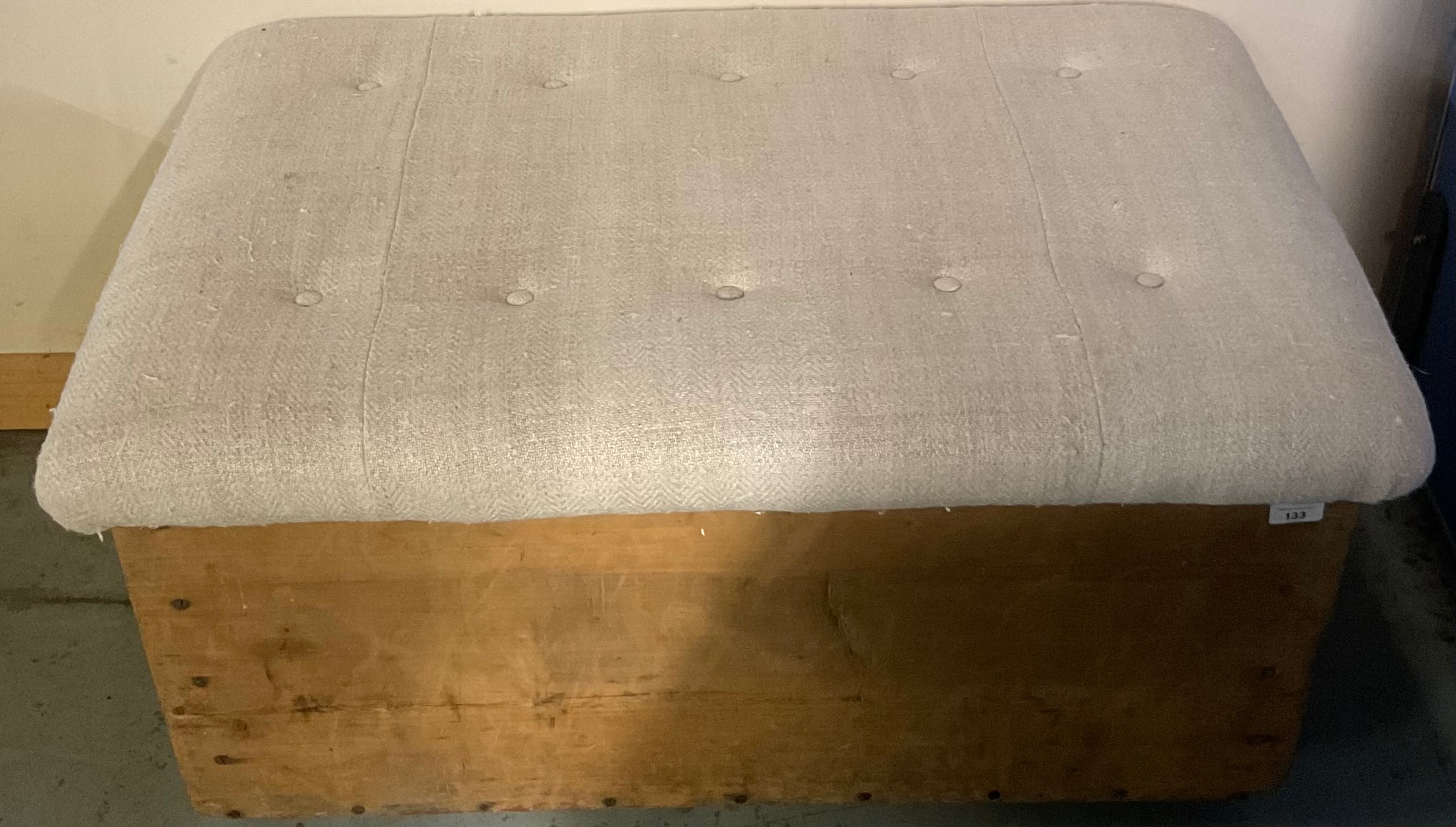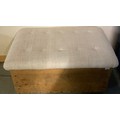 19th century pine blanket box with upholstered top. W99cm