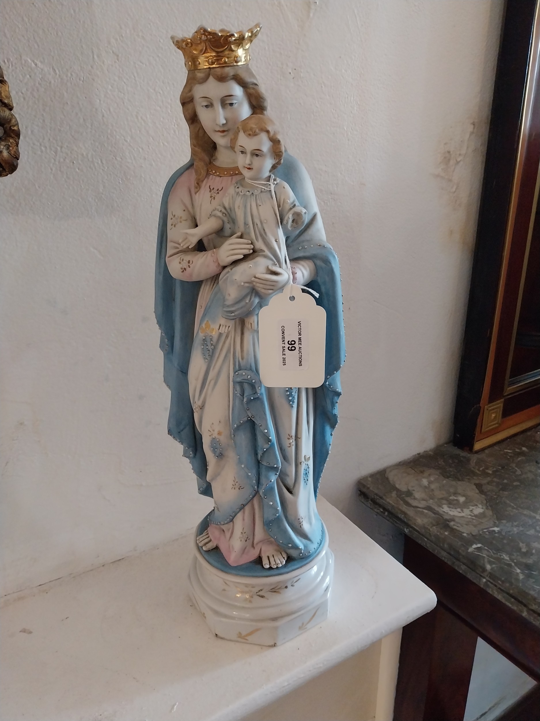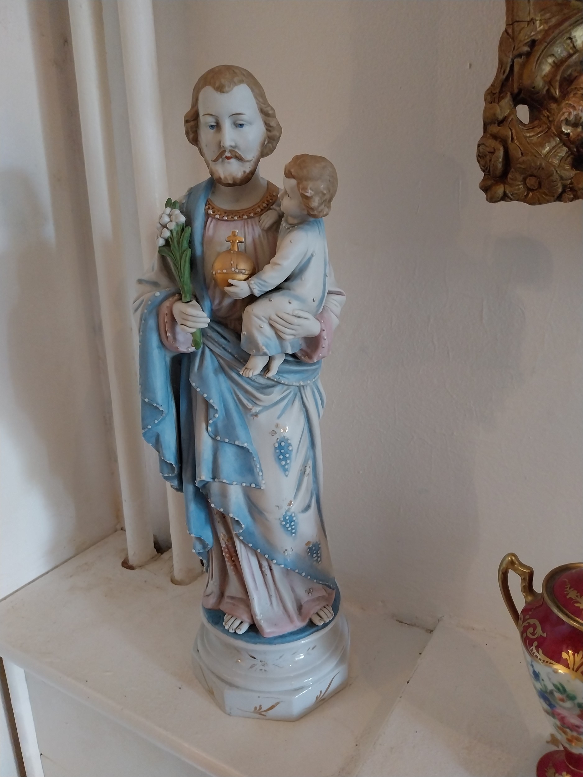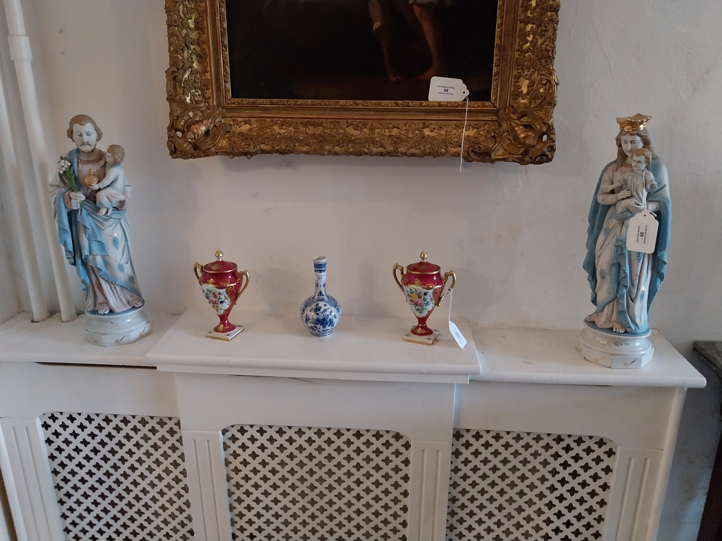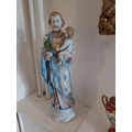 Two early 20th. C. handpainted ceramic Religious figures. { 45cm H X 17cm W X 13cm D }.