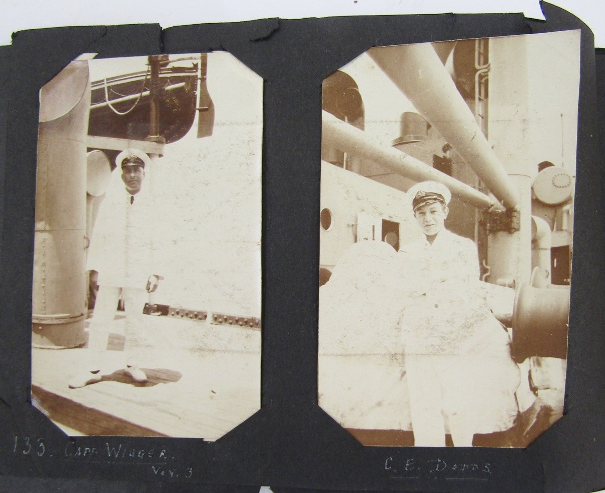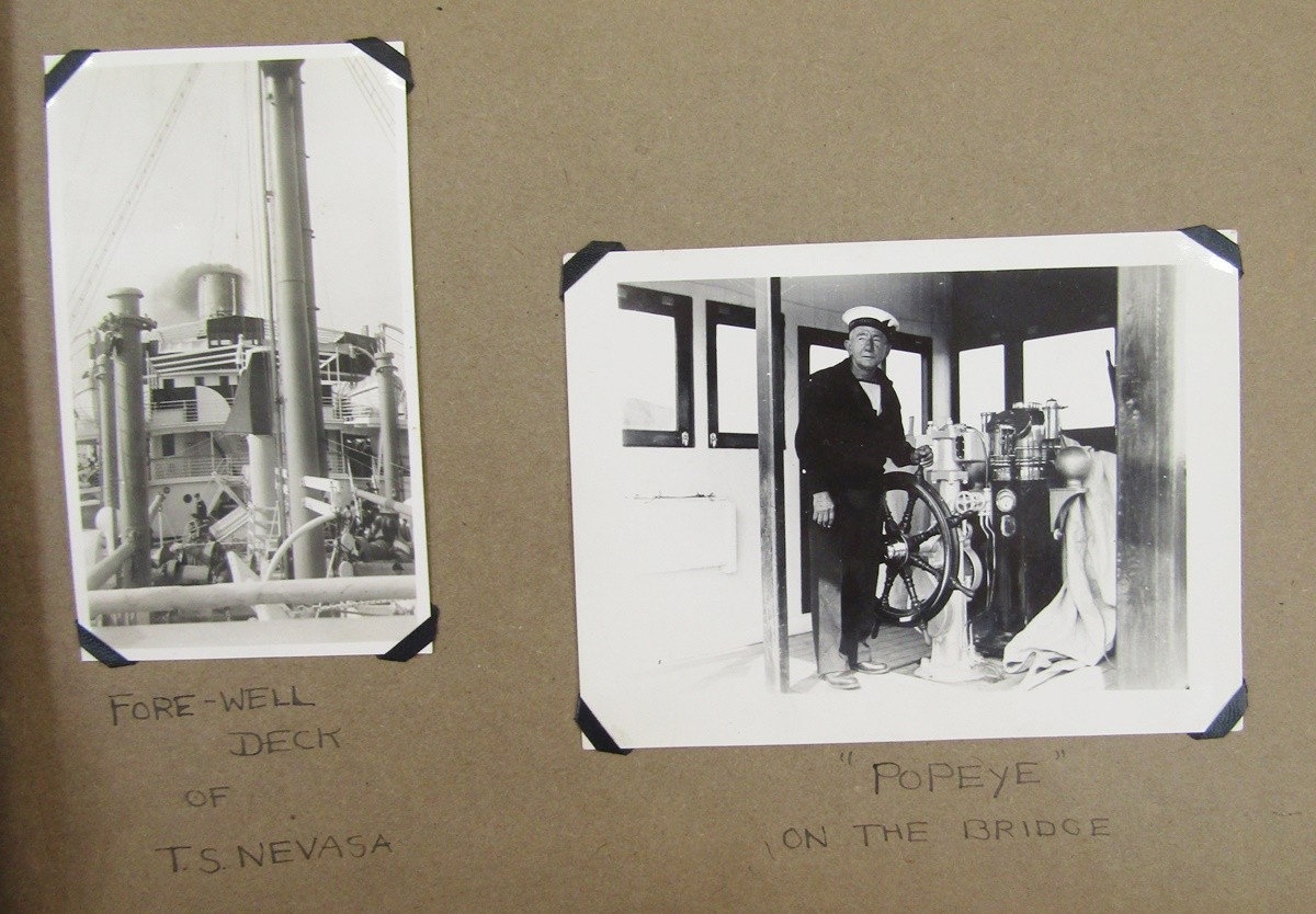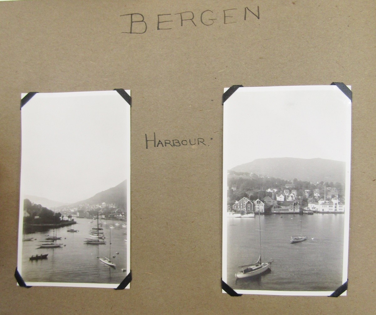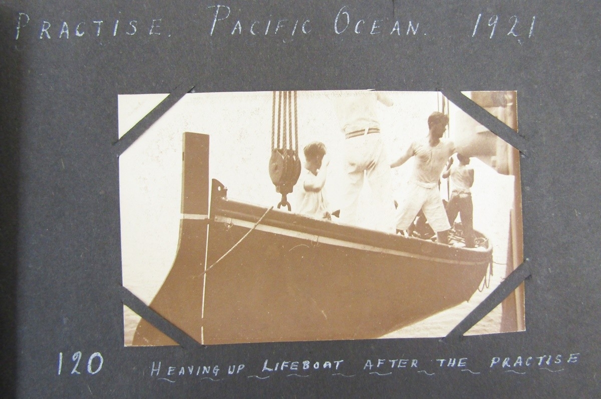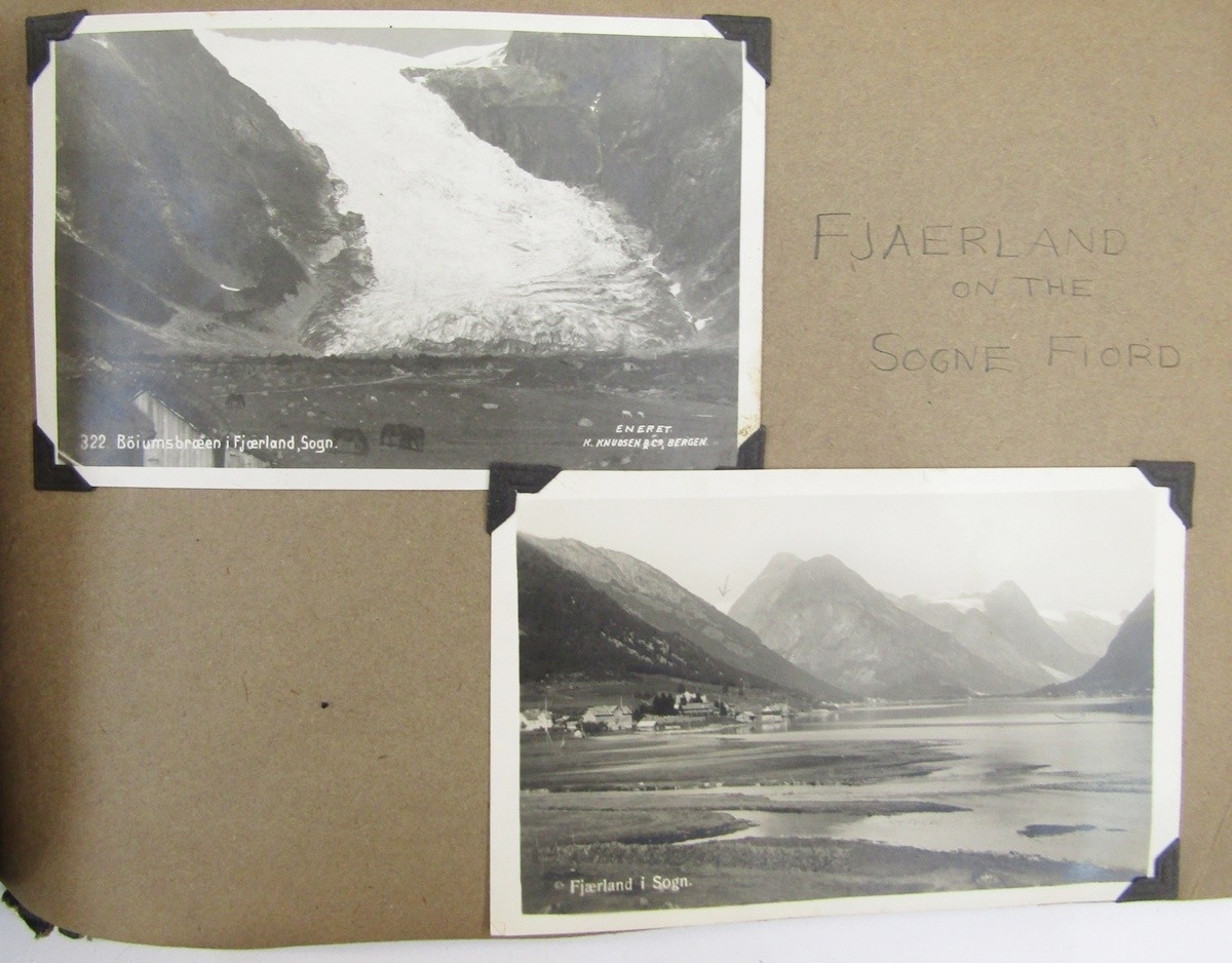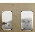 Four albums of early 20th century and later photographs and postcards including 1920's photographs of seamen at sea including heaving up lifeboat after practice, Pacific Ocean 1921, an album of Norway dated 1937 including Bergen, photograph of Constantinople and others (4 albums)