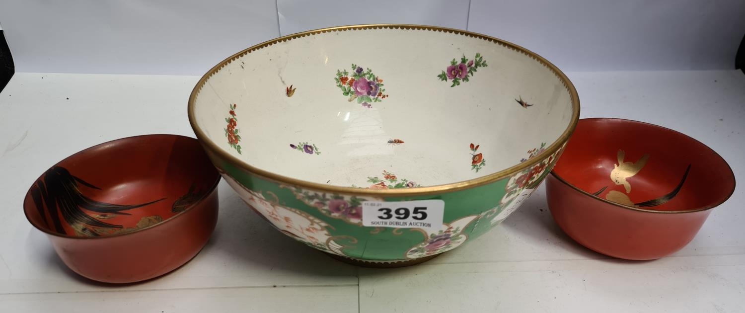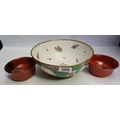 Hand painted Chinese bowl with assorted birds on the side and 2 x dipping bowls - no markings