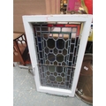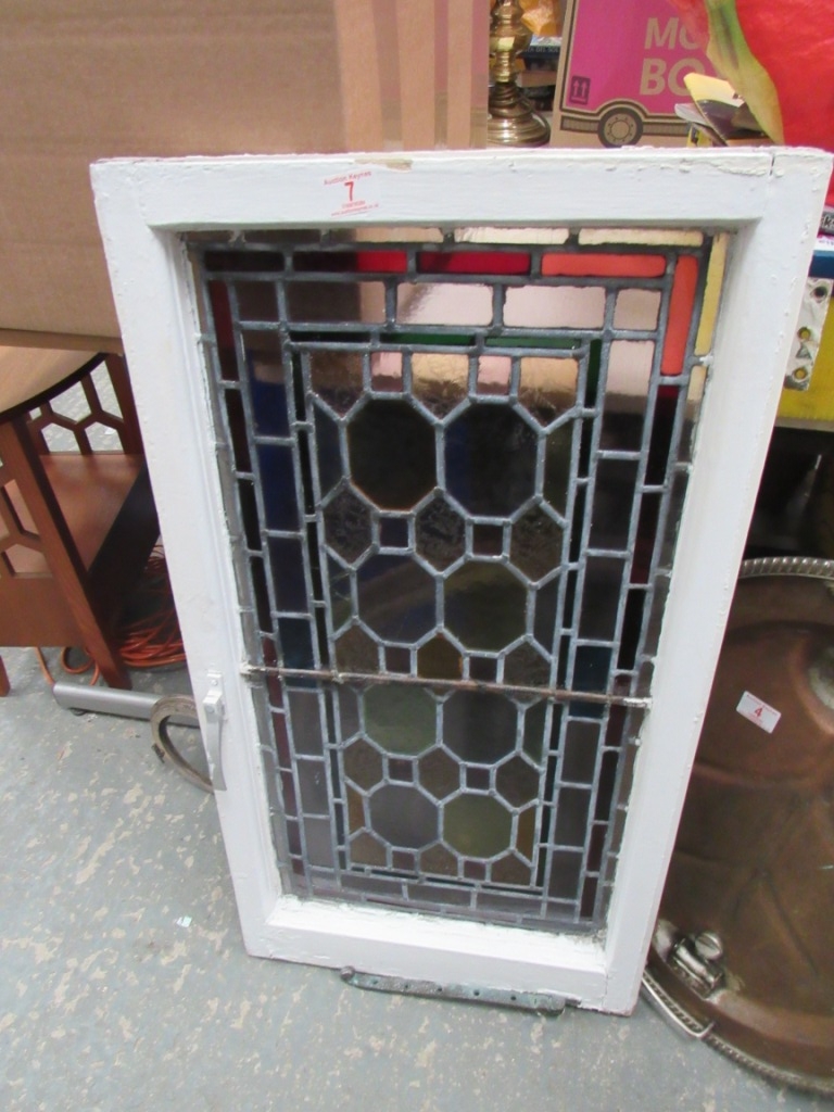 Leaded antique stained glass framed window with catch