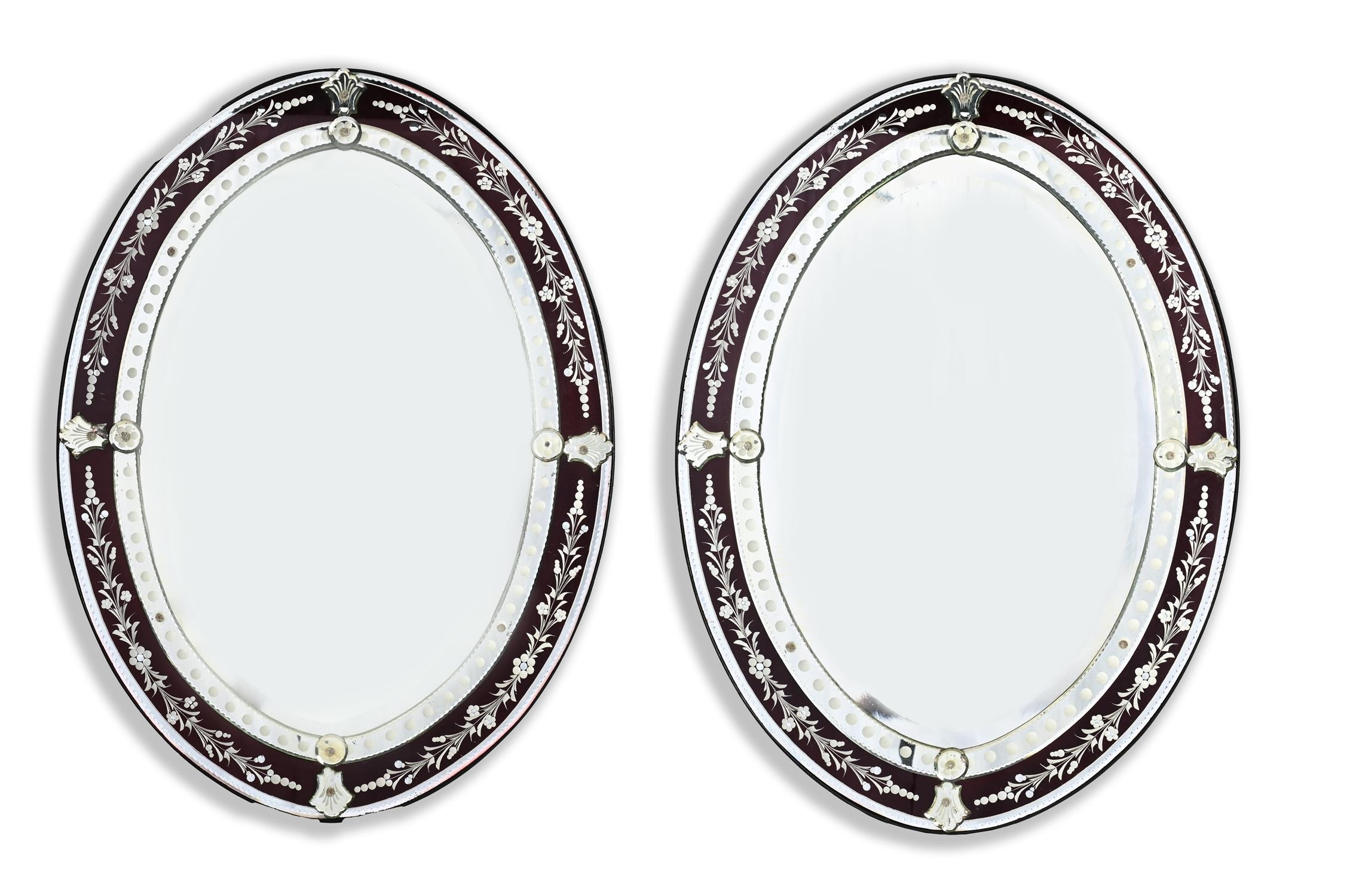 A PAIR OF 'VENETIAN' ETCHED GLASS WALL MIRRORSOF RECENT MANUFACTUREeach 106cm high, 75cm wide, 7cm protuberance