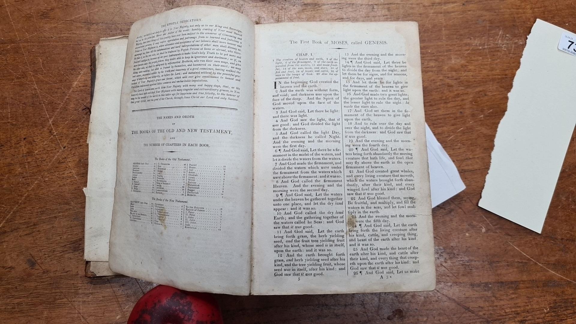A spectacular antique early 19th century King James Holy Bible. With sticker reading 'Bound by William Ford, 69 Wood Street Cheapside'.